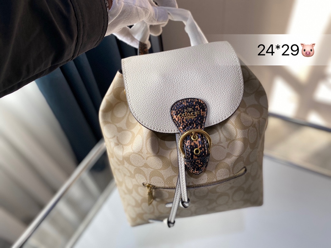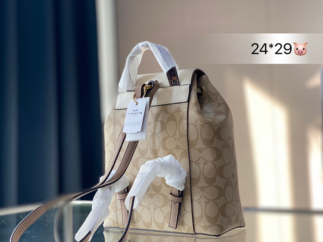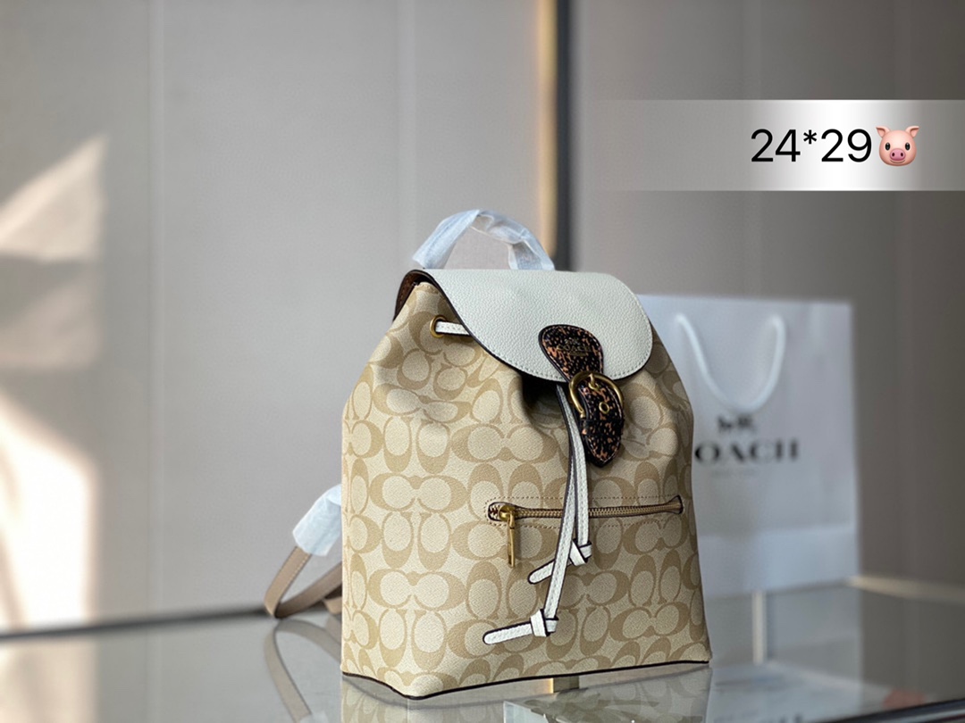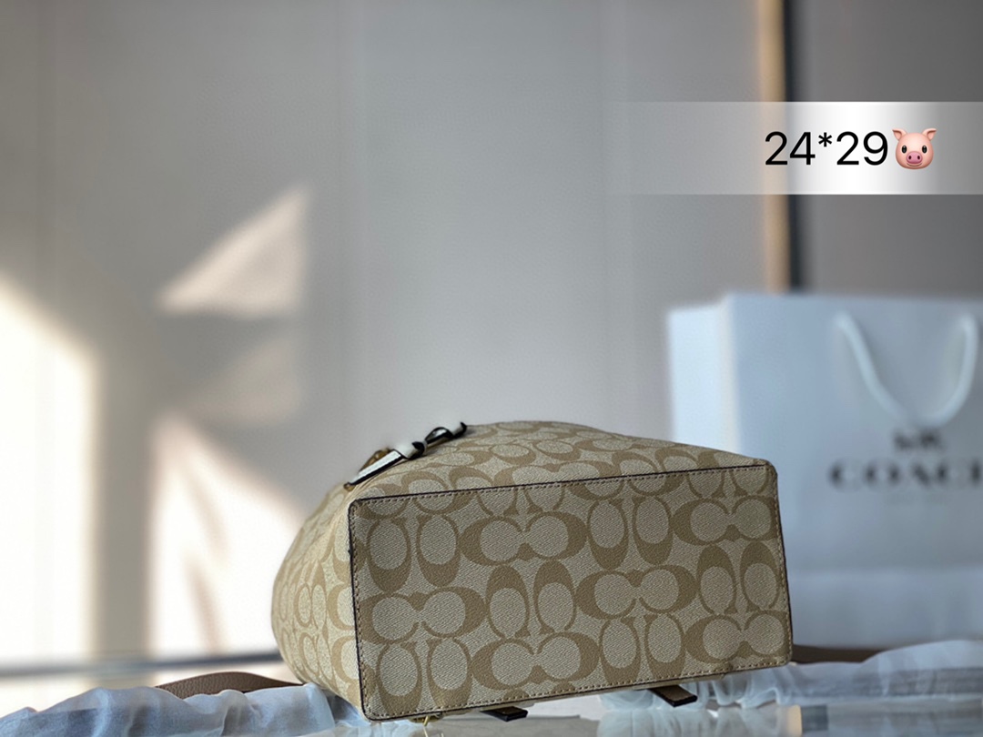 J5 Coach 蔻驰 经典 抽绳双肩包出货 与正品无差 真的好看绝了顶级品质 进口原单面料 超级耐磨 超级实用的款式 内衬带logo. 原版电镀五金带logo 这个包包的容量也很大 满足你出行的所有需求 上班族最爱的包包夏日女孩必备的都可以装下 真的是很nice 喜欢的抓紧自留啦 尺寸 24 29