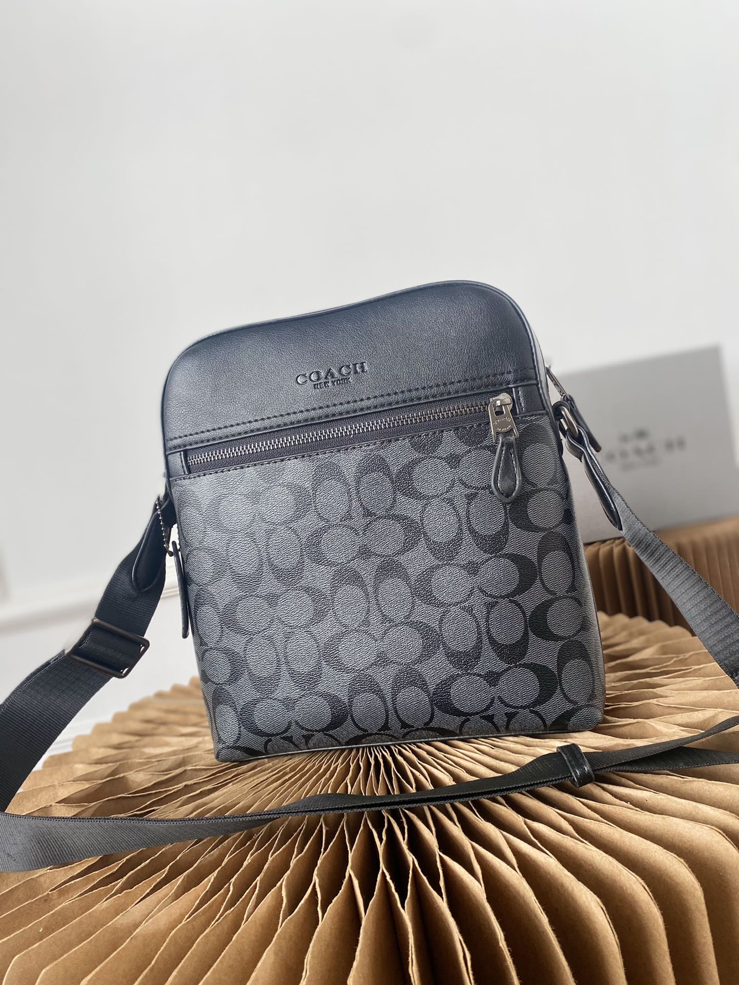 J5 Coach 蔻驰 Charles 单肩斜挎包 经典Logo搭配原厂工艺材质 休闲百搭 采用精湛镶嵌细工,实物拍摄 原版面料 配送小票 防尘袋 27 x 25 cm。