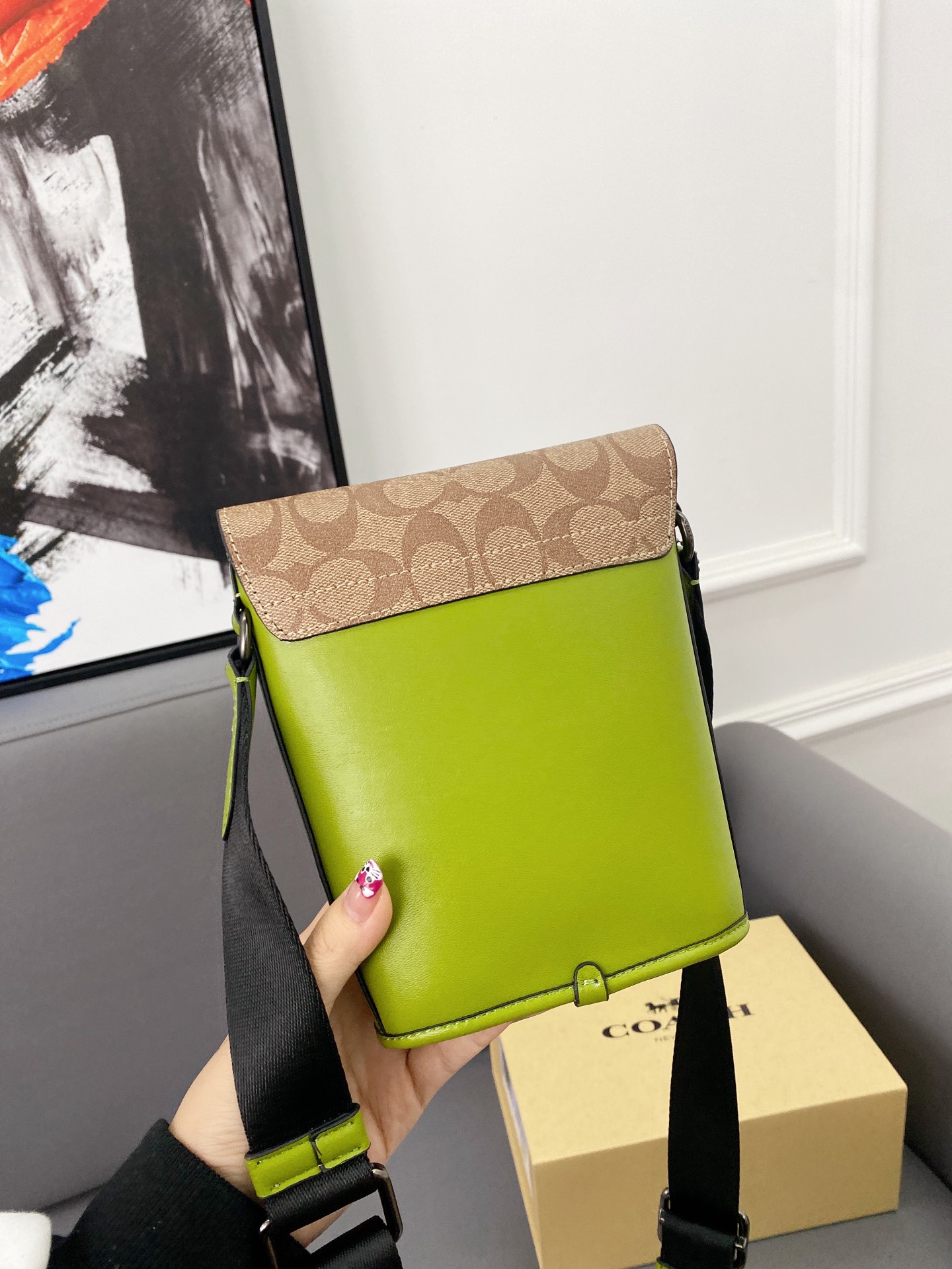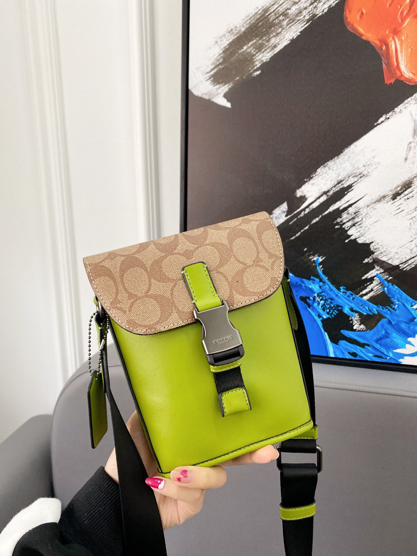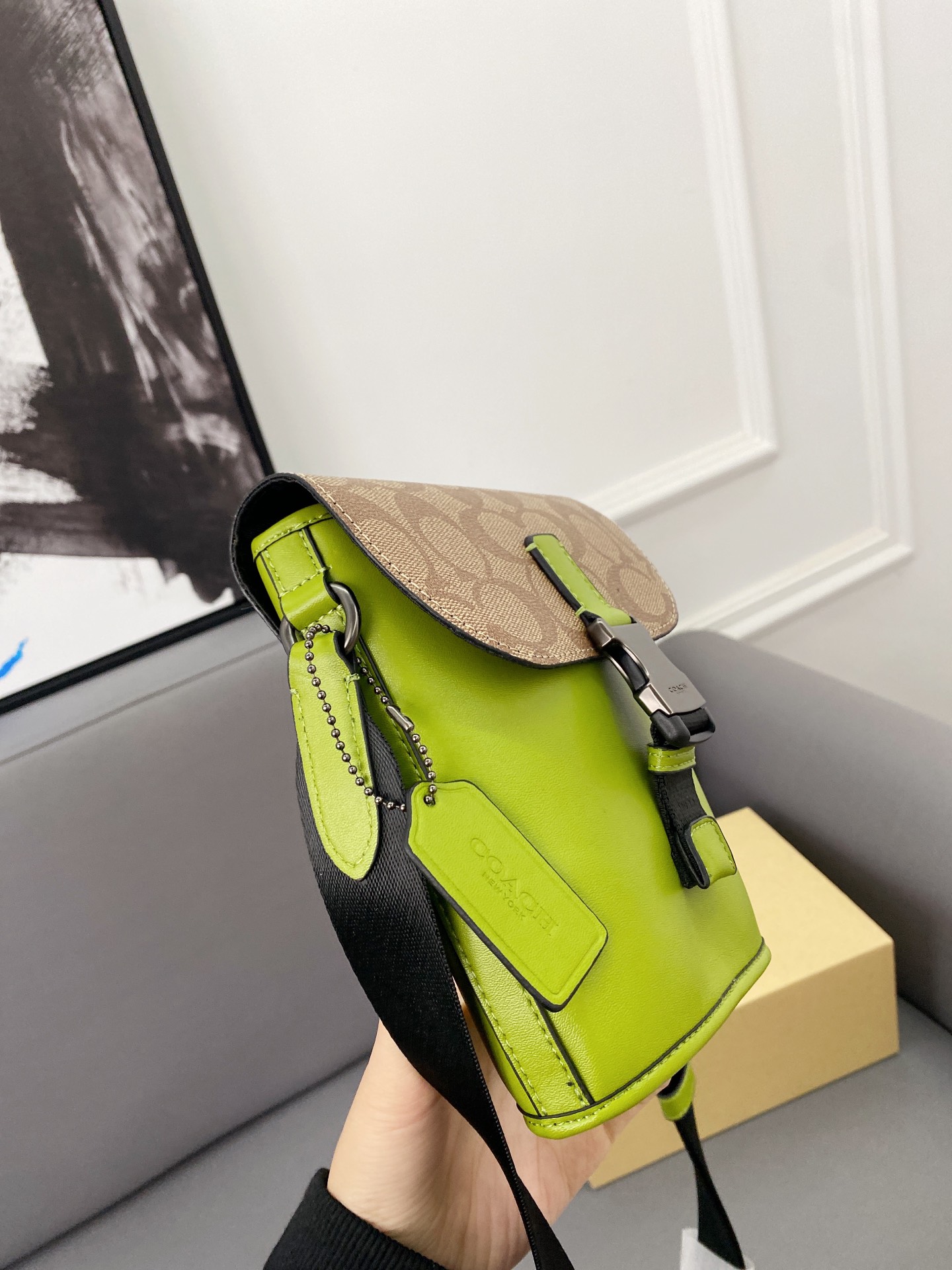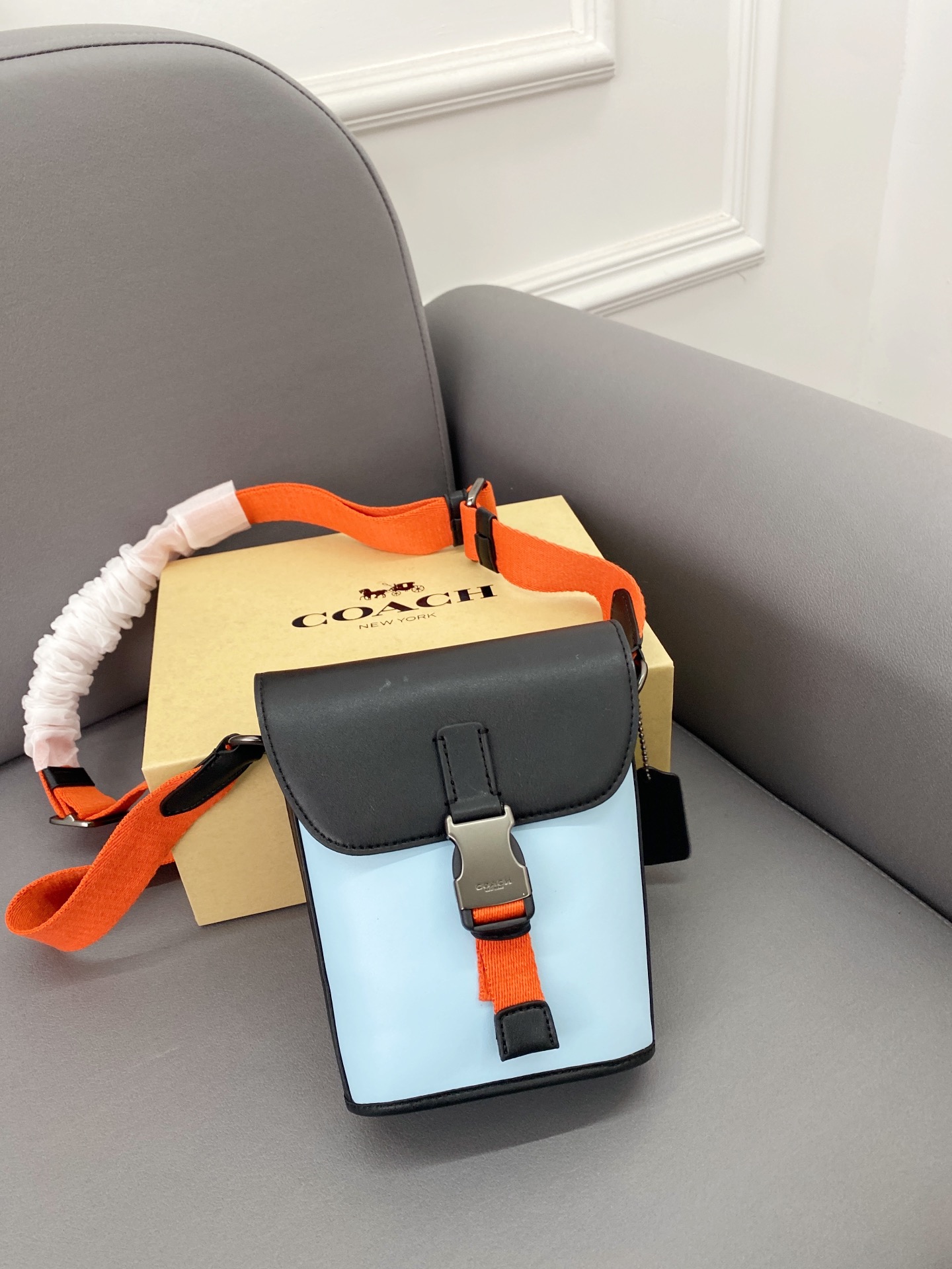 J5 Coach 蔻驰 Track薯条包 斜挎手机包 单肩包 经典Logo搭配原厂工艺材质 休闲百搭 采用精湛镶嵌细工,实物拍摄 原厂原版面料 配送小票 防尘袋 折叠礼盒 13 x 18 cm。