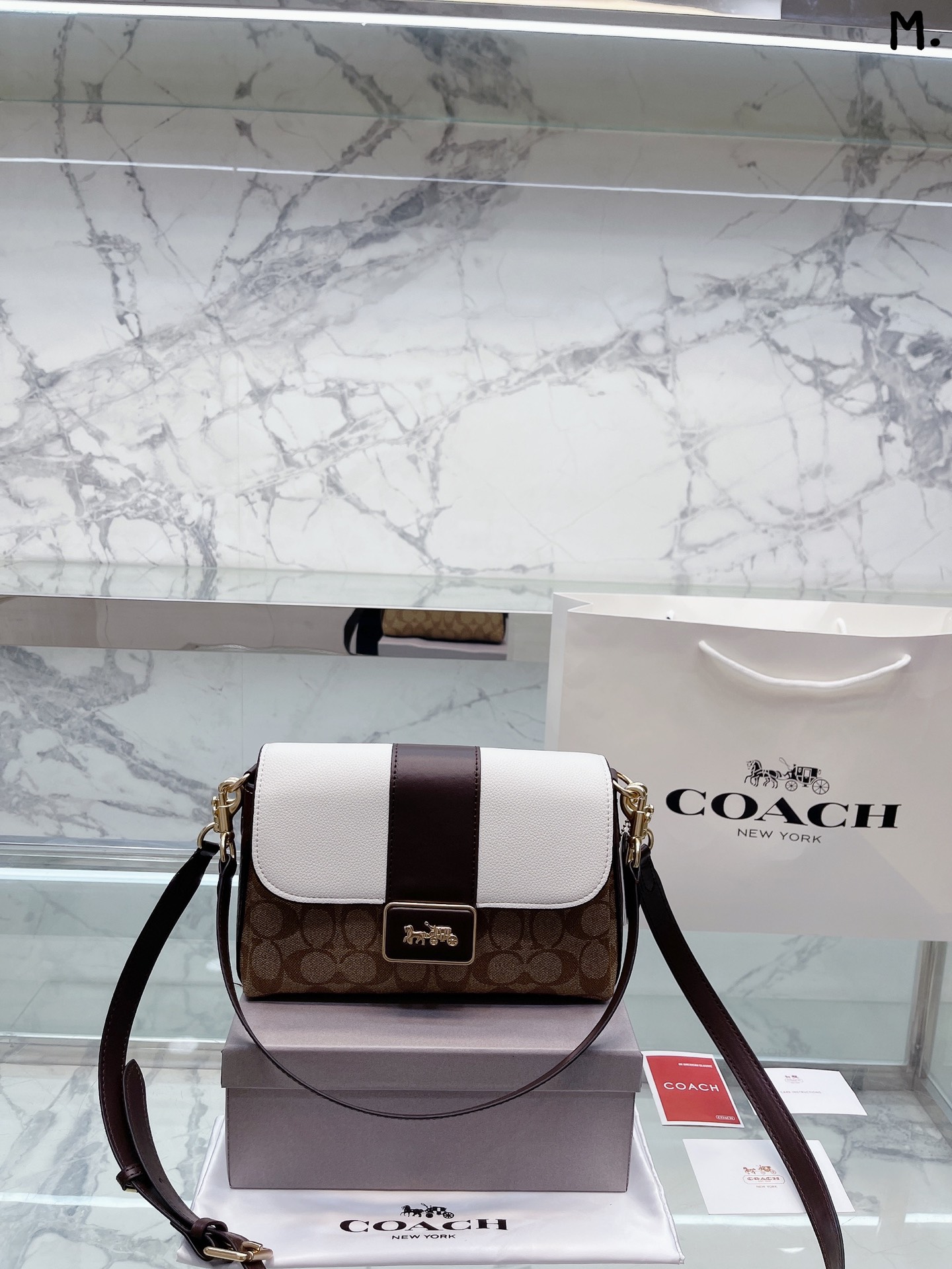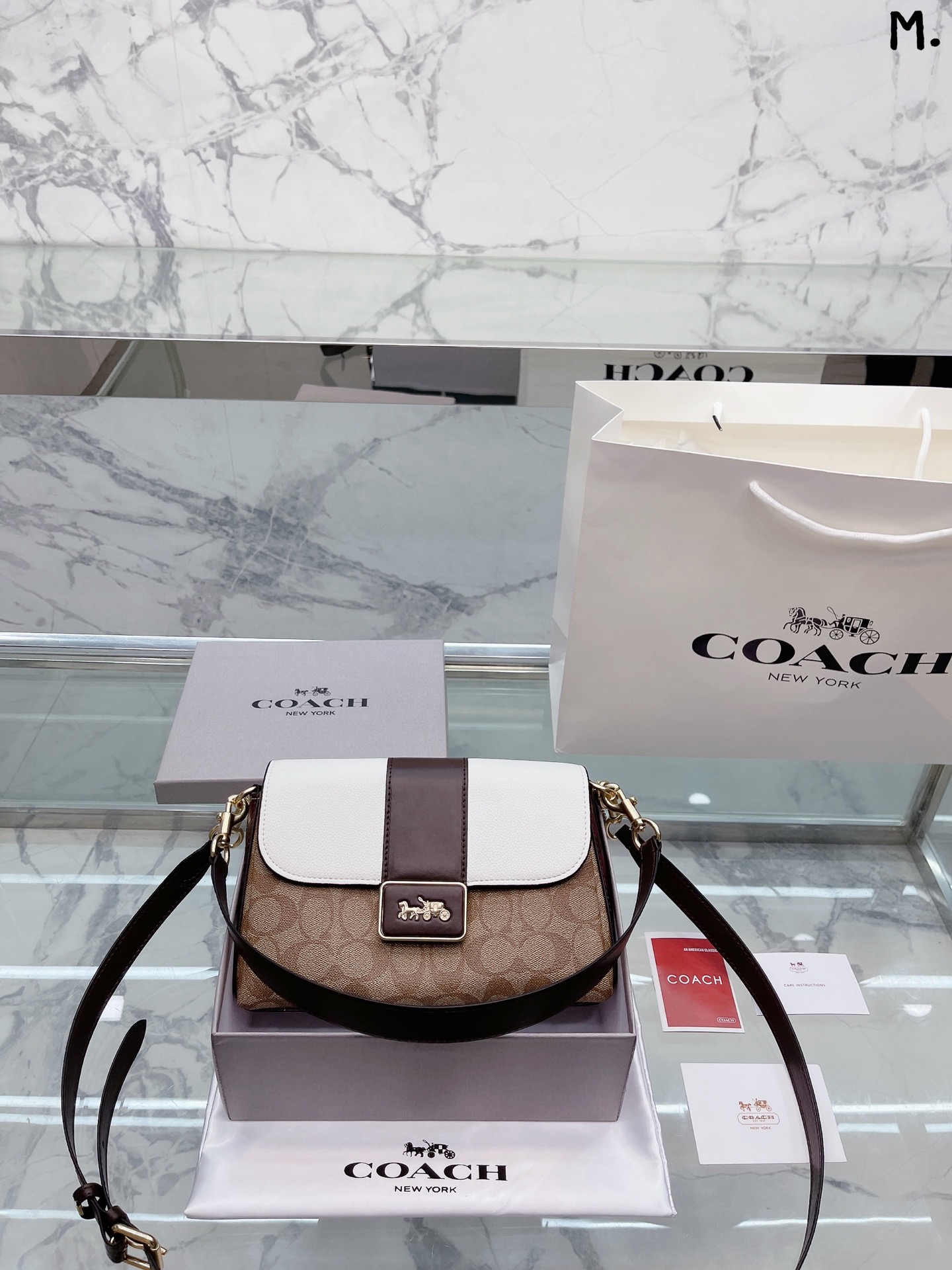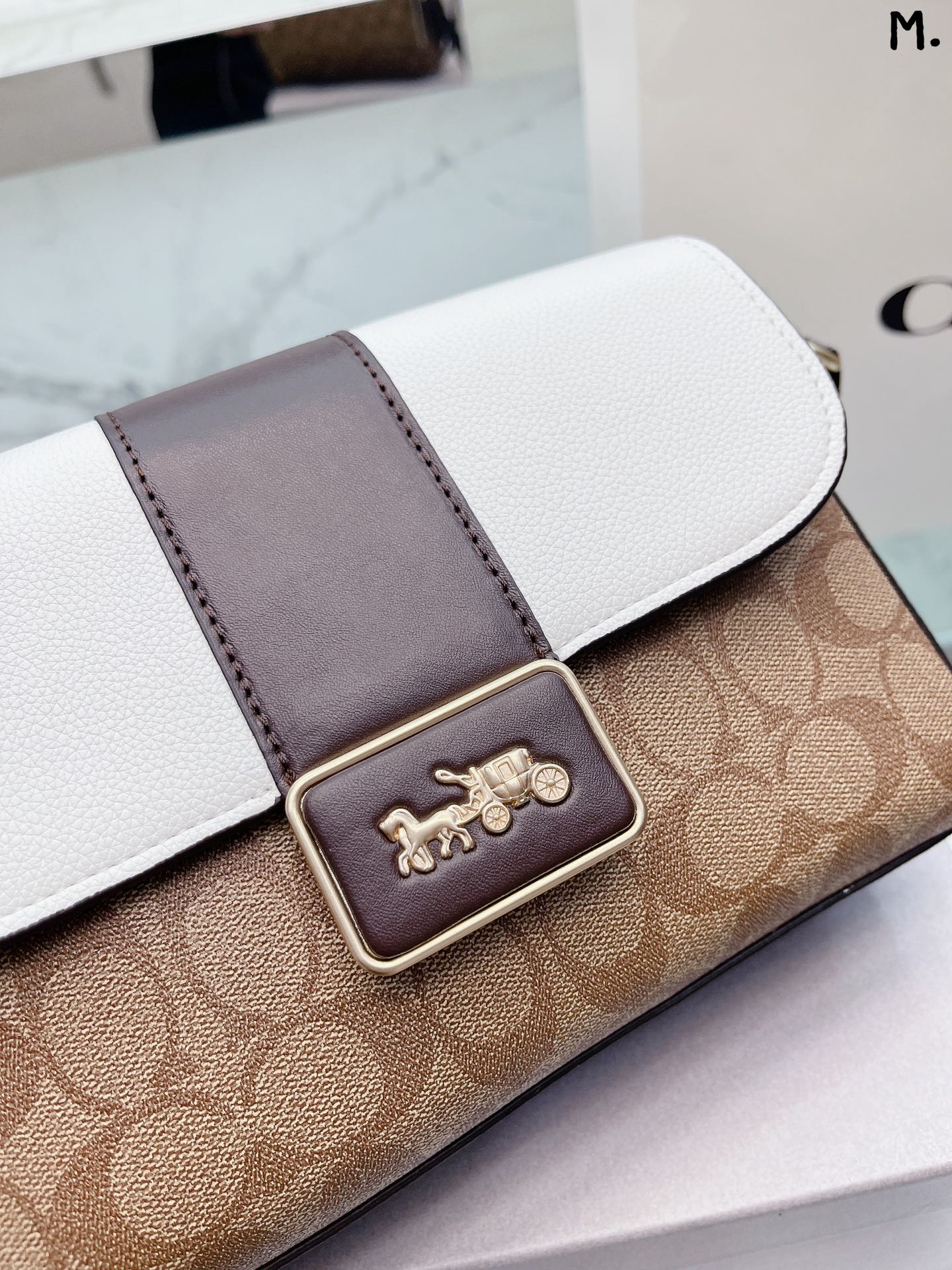 K0 9月 Grace Shoulder bag Coach 蔻驰 9月 Grace Family Gatv 吴谨言同款包包 两个肩带 也可作为斜挎包 &象牙白色撞色拼接好看哟 尺寸24 18cm