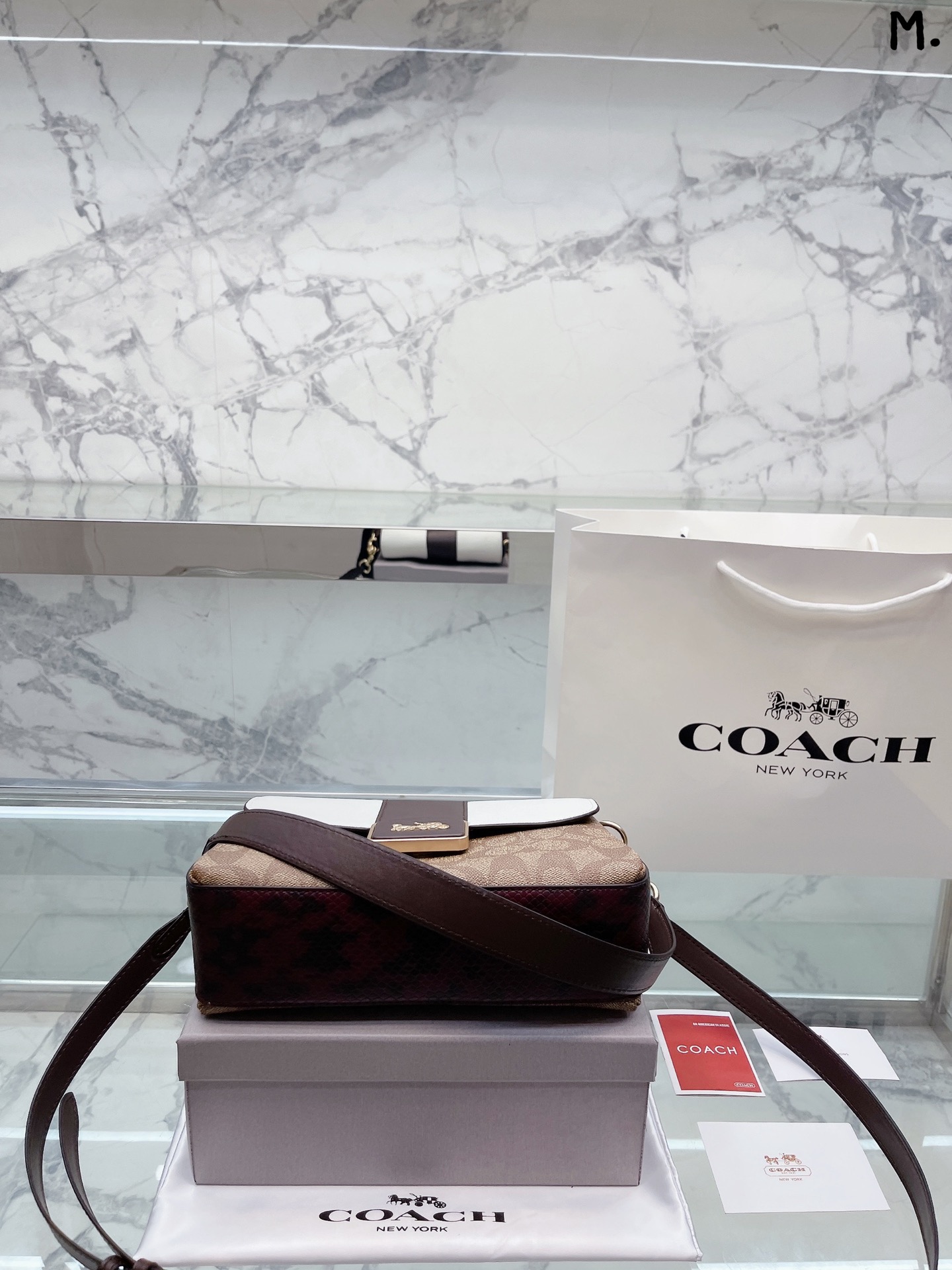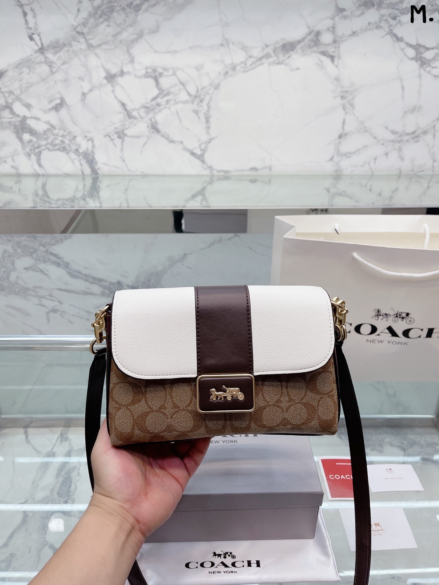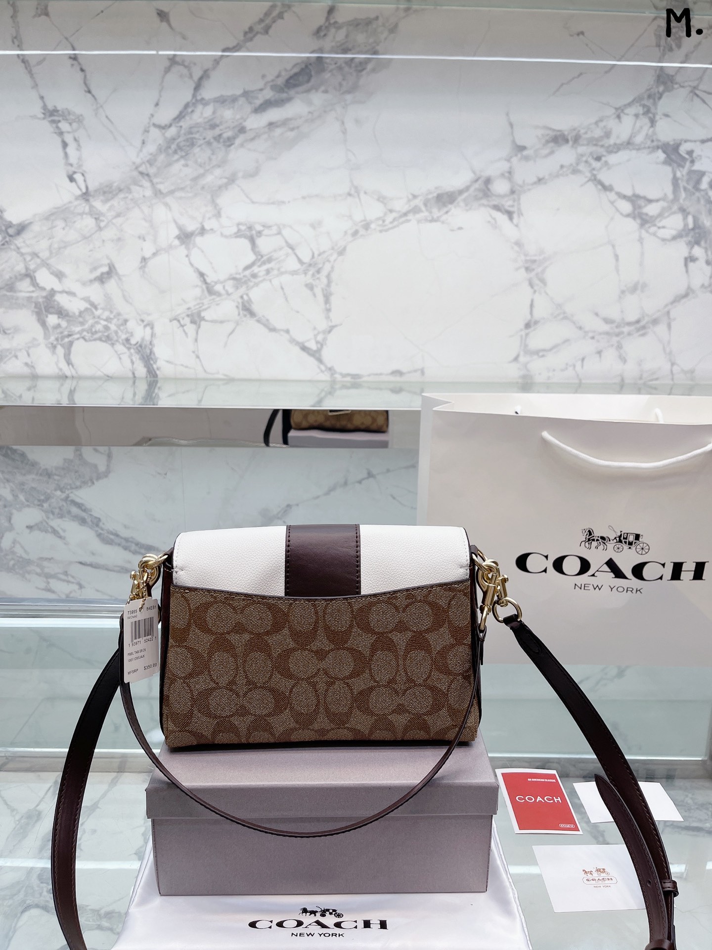 K0 9月 Grace Shoulder bag Coach 蔻驰 9月 Grace Family Gatv 吴谨言同款包包 两个肩带 也可作为斜挎包 &象牙白色撞色拼接好看哟 尺寸24 18cm