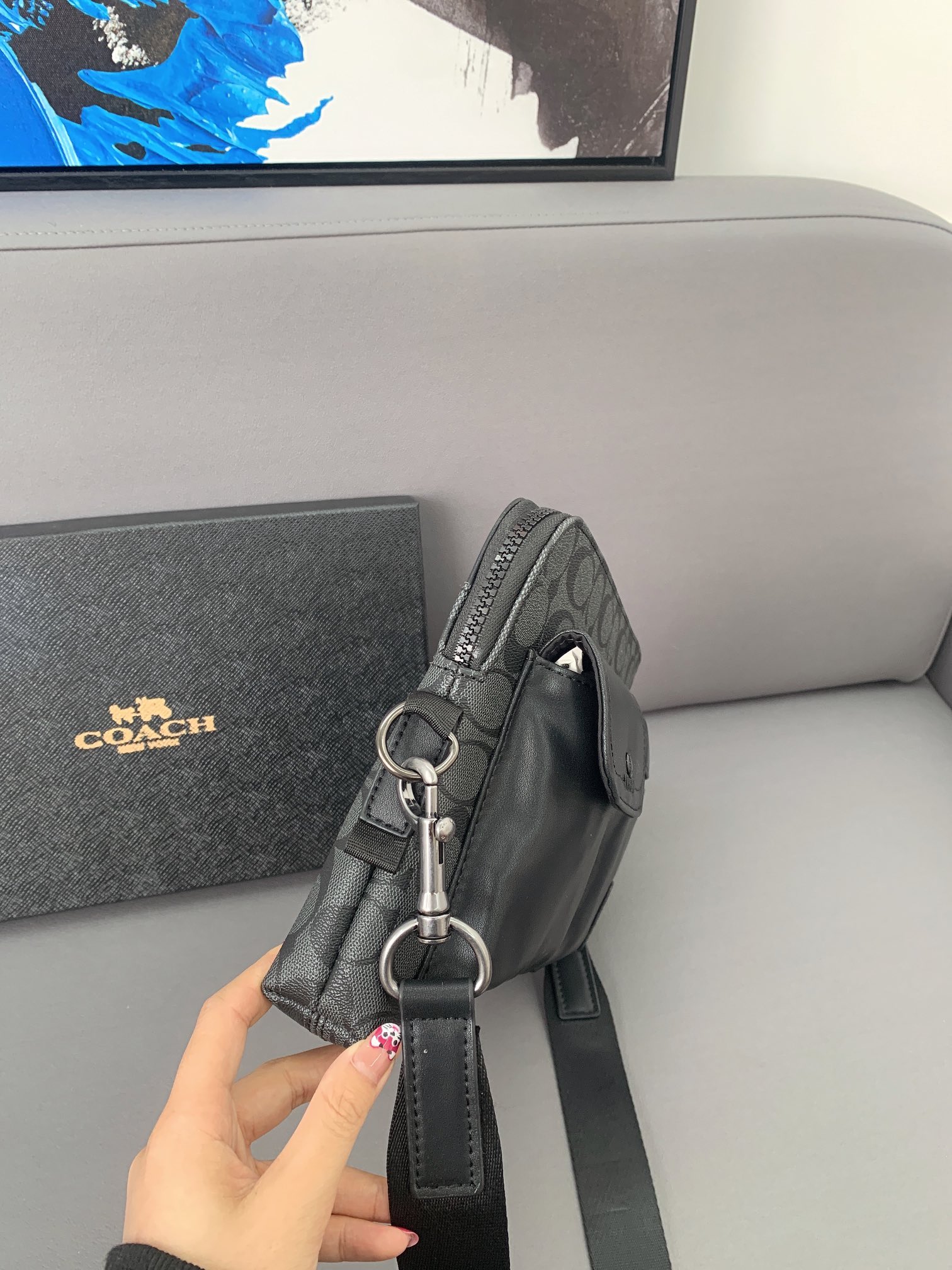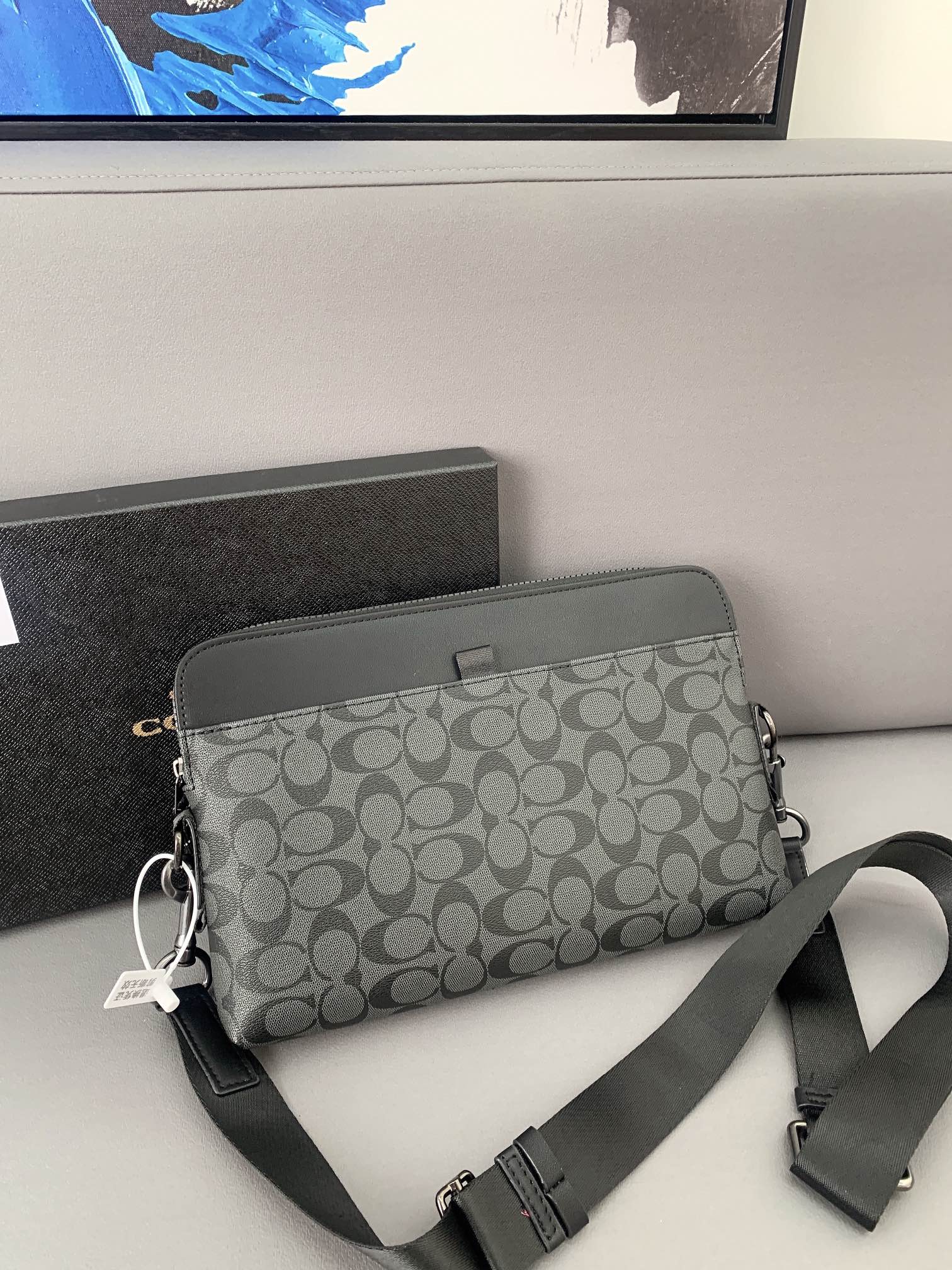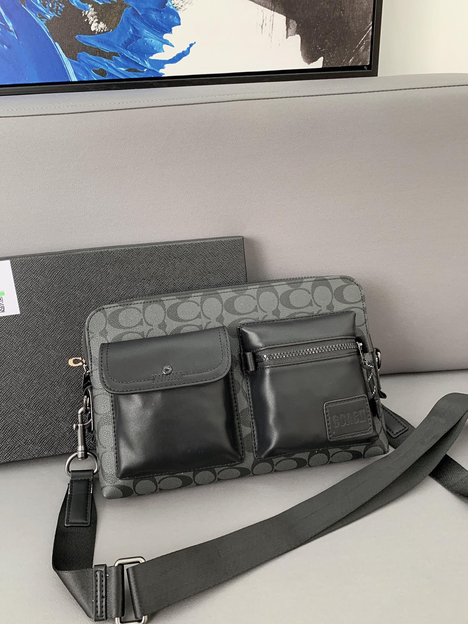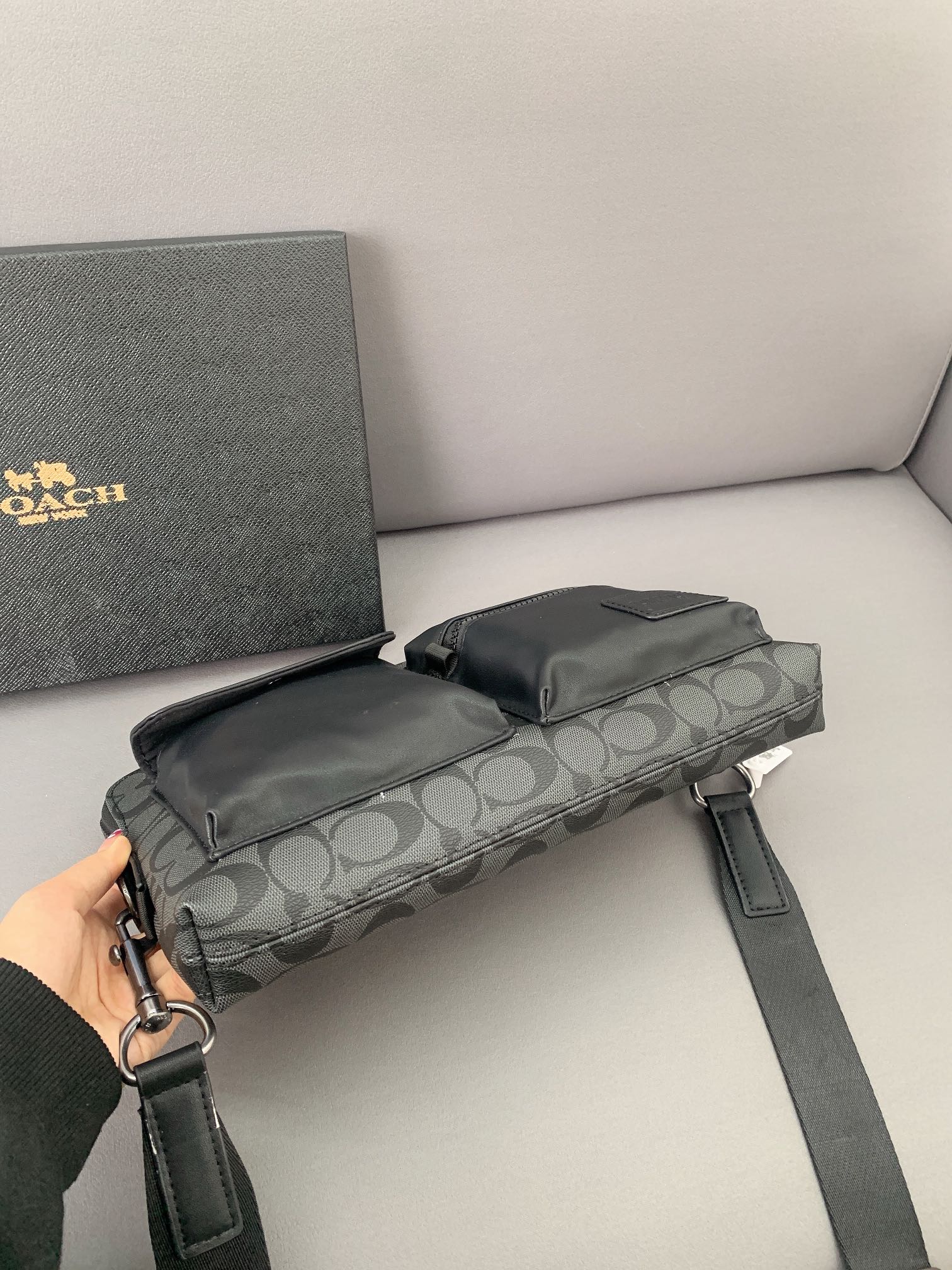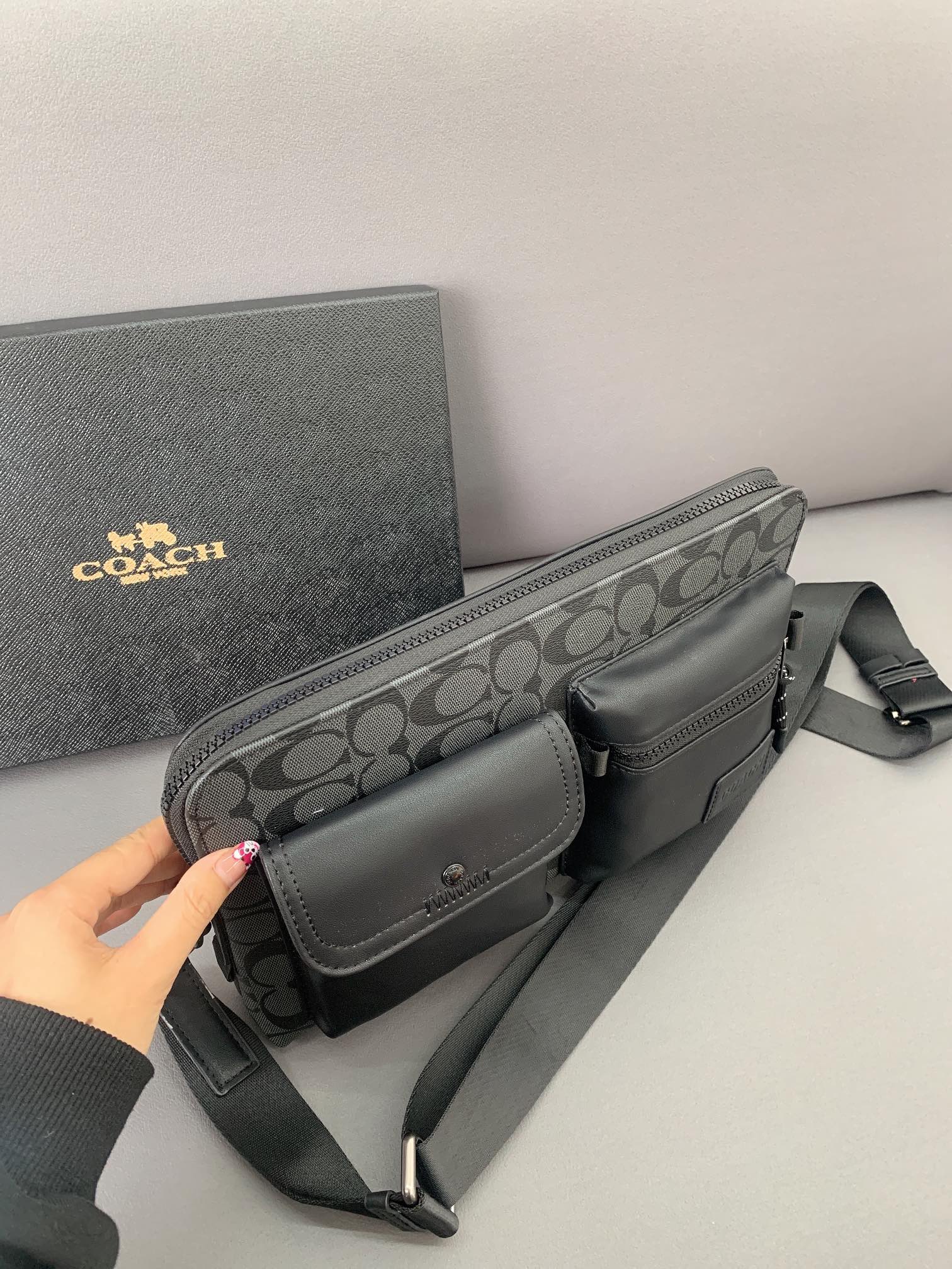 K0 Coach 蔻驰 印花标志邮差包 手拿包 斜挎包 经典Logo搭配原厂工艺材质 休闲百搭 采用精湛镶嵌细工,实物拍摄 原厂原版面料 配送小票 礼盒防尘袋 30 x 22 cm。