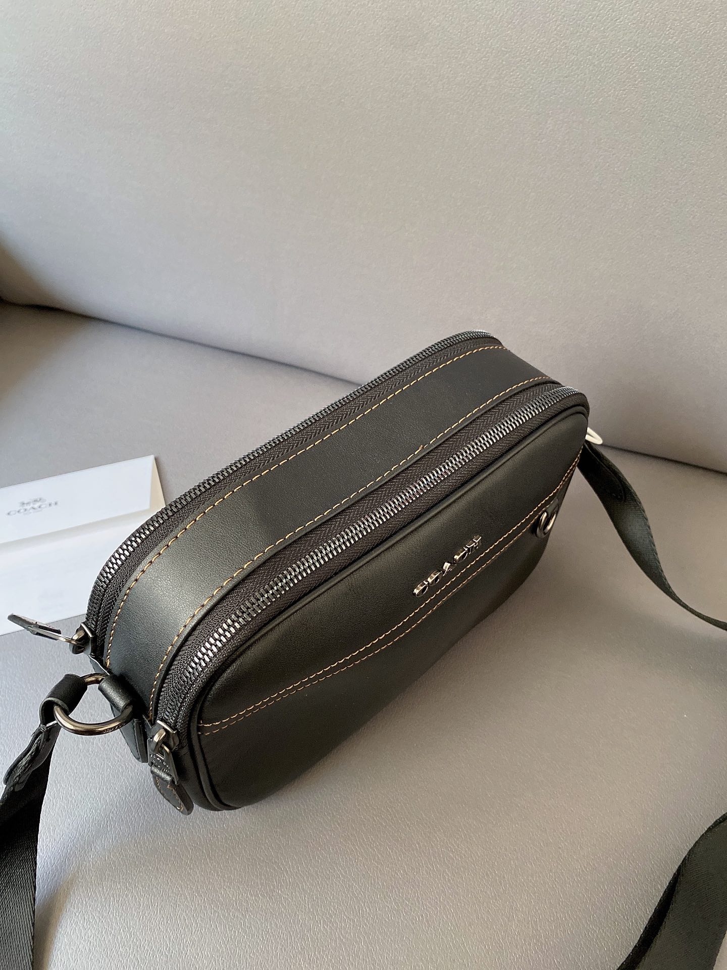 K0 Coach 蔻驰 双拉链牛皮相机包 Graham升级版单肩包 男士斜挎包 经典Logo搭配原厂工艺材质 休闲百搭斜挎包 采用精湛镶嵌细工,实物拍摄 原厂原版面料 配送小票防尘袋 礼盒 15 x 23 cm。