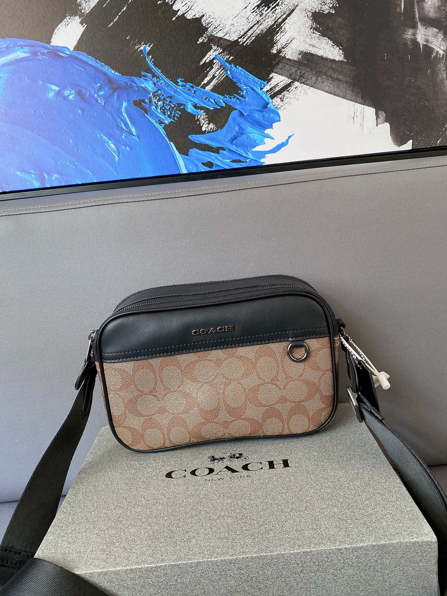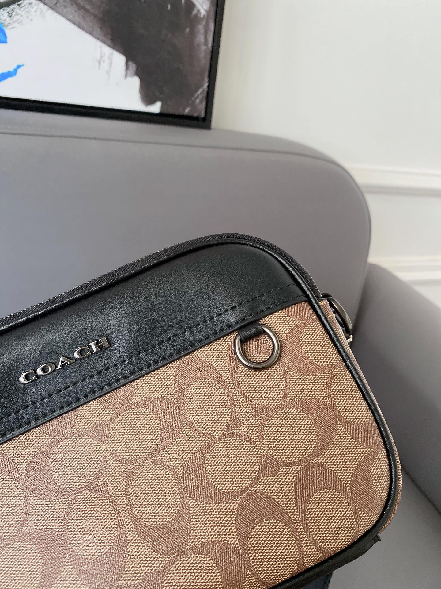 K0 Coach 蔻驰 双拉链相机包 Graham升级版单肩包 男士斜挎包 经典Logo搭配原厂工艺材质 休闲百搭斜挎包 采用精湛镶嵌细工,实物拍摄 原厂原版面料 配送小票防尘袋 折叠礼盒 15 x 23 cm。