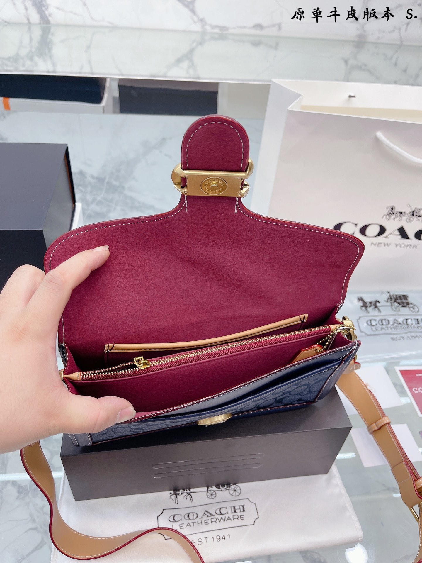 K5 牛皮版本 Coach 家酒神包Tabby手提包单肩斜挎包。让小姐姐第一眼看到就会爱上它。被誉为平价版小酒神包的 Coach 蔻驰 Tabby,复古又百搭,很受欢迎啊。五金扣厚实,整体精致小巧,还特别能装。每个包配一长一短两天可卸肩带,内部结构分层合理,中间一个带拉链的隔层小袋,把包分成三格,简直完美尺寸:25*15*7.5cm。这个尺寸觉得刚刚好合适,手提单肩斜挎都没有问题的礼盒包装