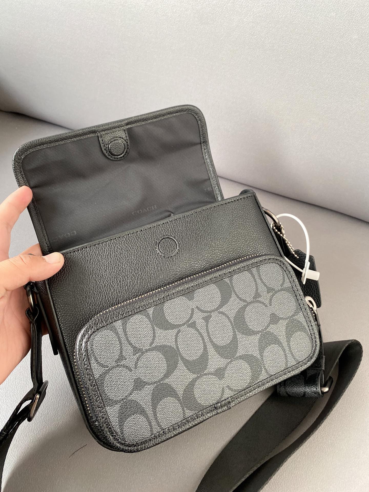K5 Coach 蔻驰 Sullivan 印花翻盖邮差包 斜挎包 男女通用单肩包 经典百搭 采用精湛镶嵌细工,实物拍摄 原厂原版面料 配送小票折叠礼盒 20 x 18 cm。