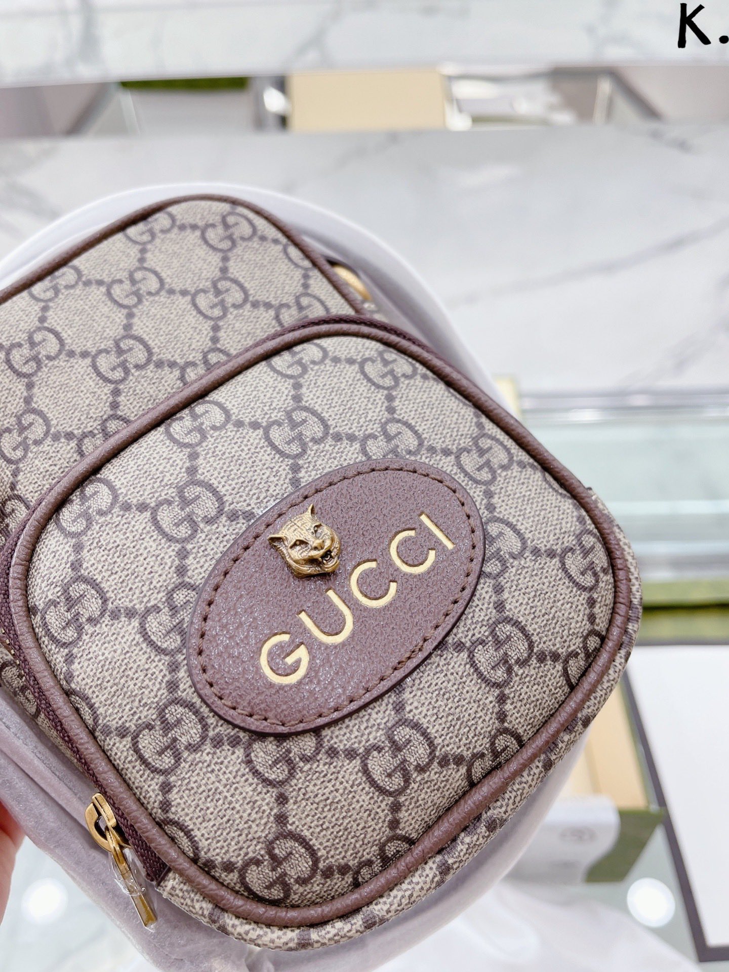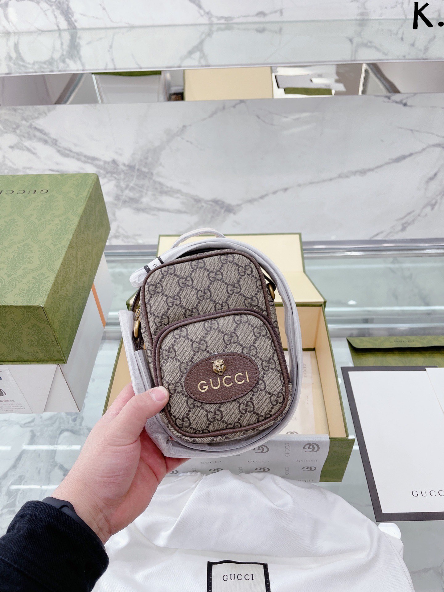 升级款 牛皮 原版牛皮 原单顶级版 |Gucci O虎头手机包 最新系列,链条包,配原版乌木色牛皮~这个款复古韵味特别浓,对版链条,原版内里上身效果也超赞,主要以精致特别的五金来提升整体质感。size:13 18cm