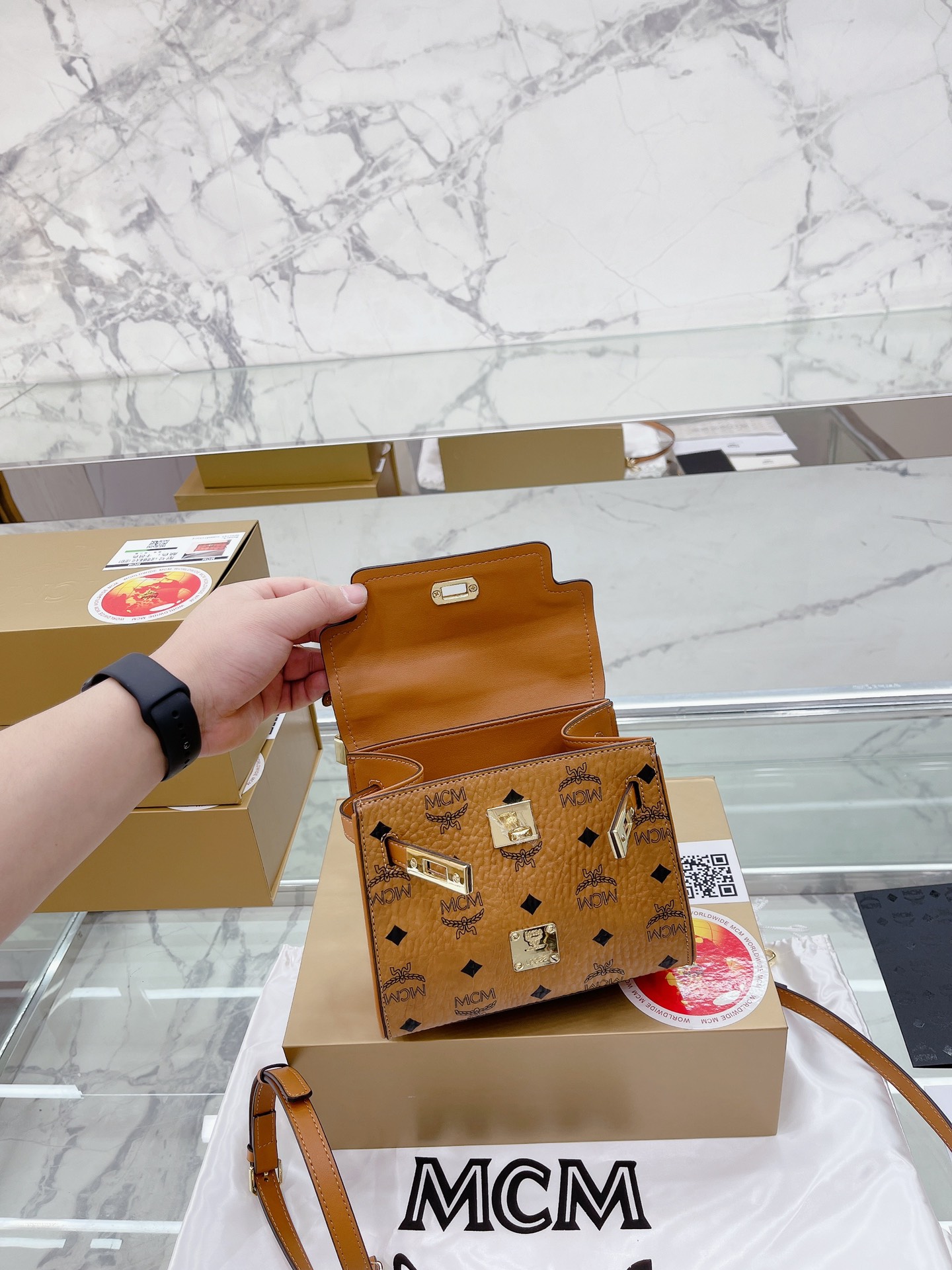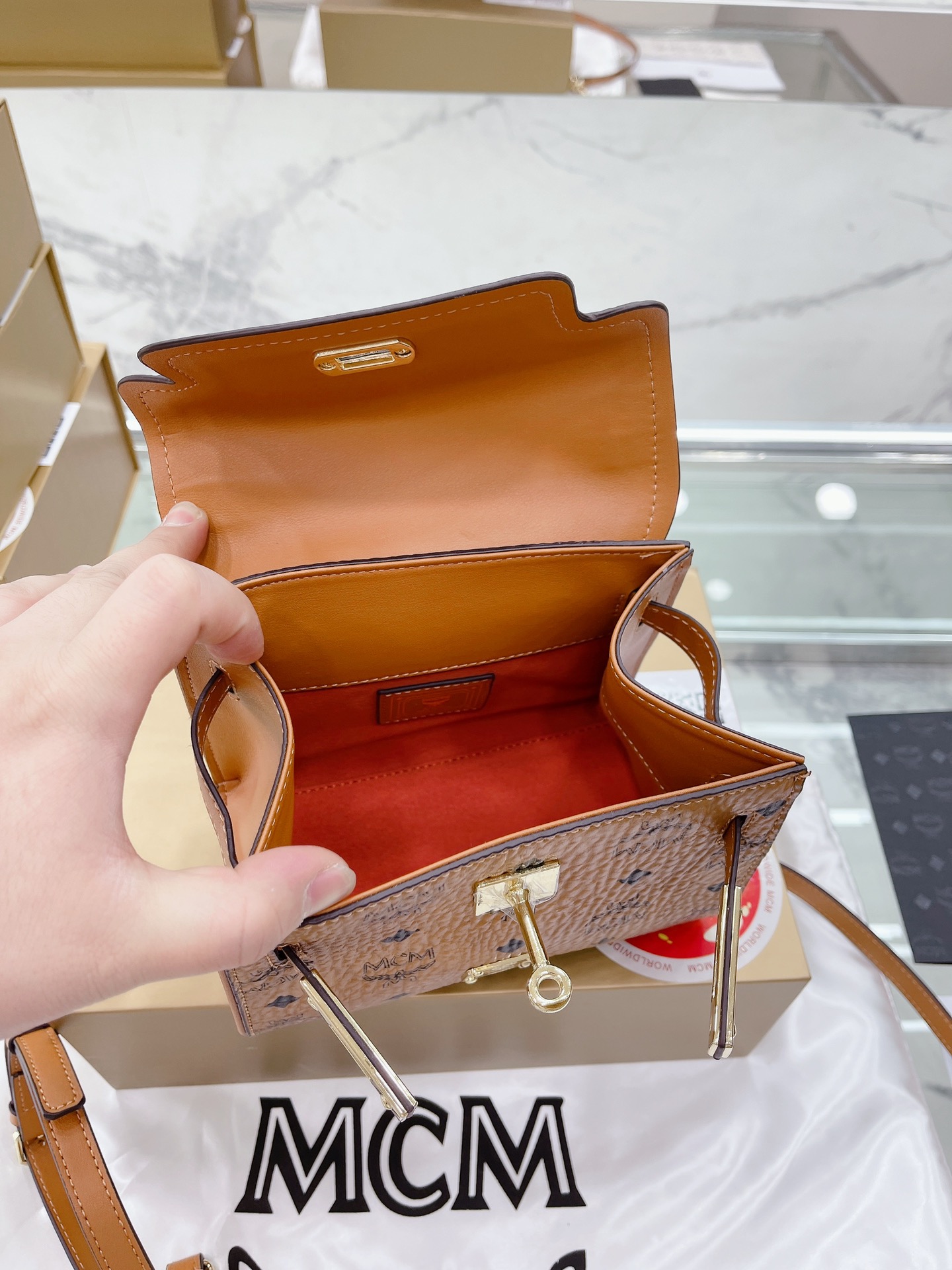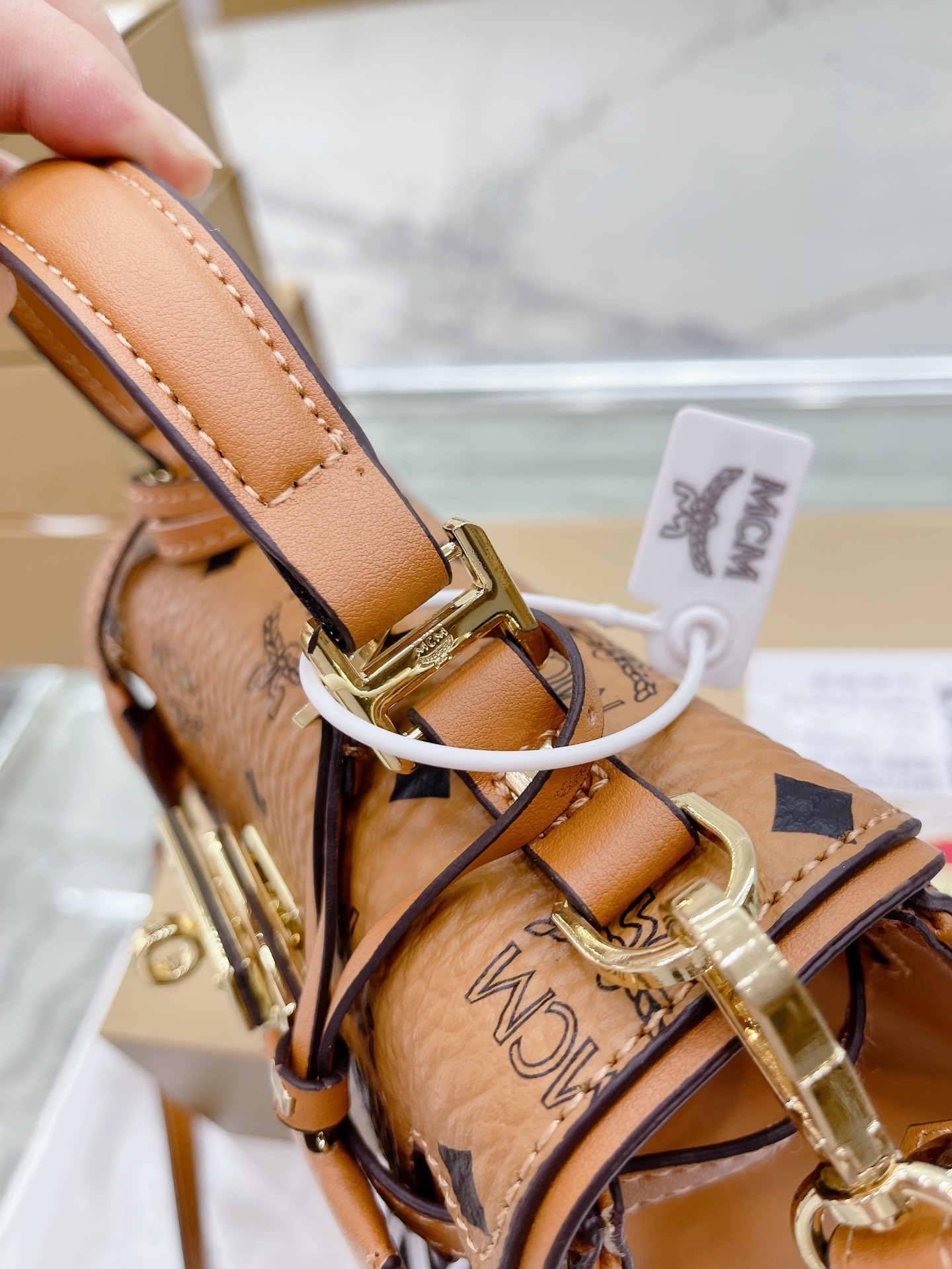 原单品质 “牛皮版本 折叠礼盒包装” Mcm凯莉单肩斜挎手提包 百搭王 包包看起来小小的 但实际空间很大 平时出去玩 日常的气垫 口红 钱包 钥匙纸巾耳机 统统都没有问题越背越爱吖 这个颜色也刚刚好,搭配什么都很Nice 真的太太太喜欢了哈~ 而且性价比什么都很高哦 春夏秋冬都好搭配 好看 推荐 尺寸18 15cm