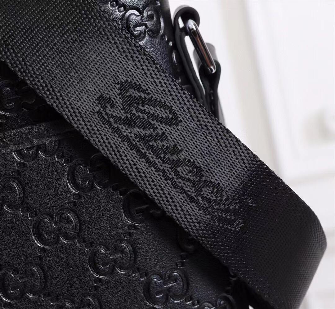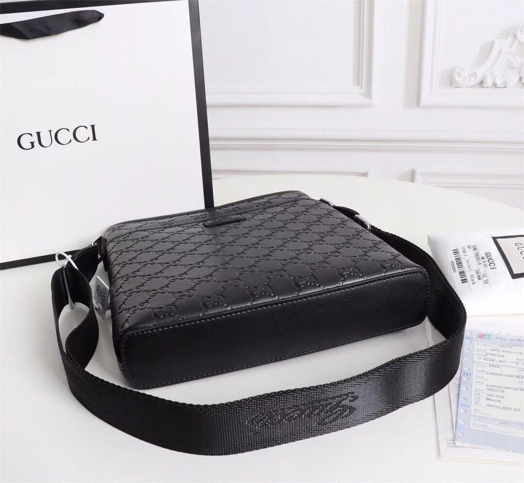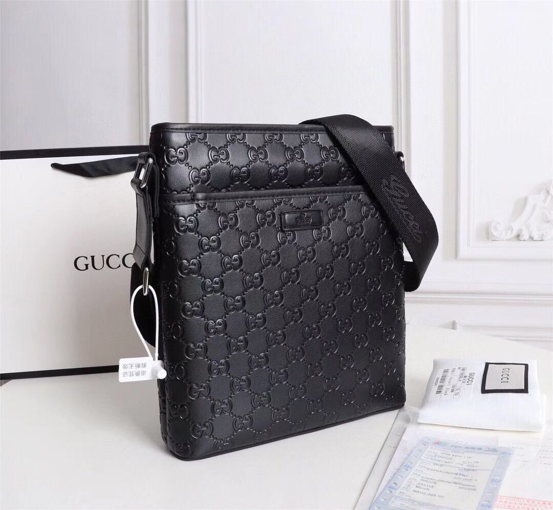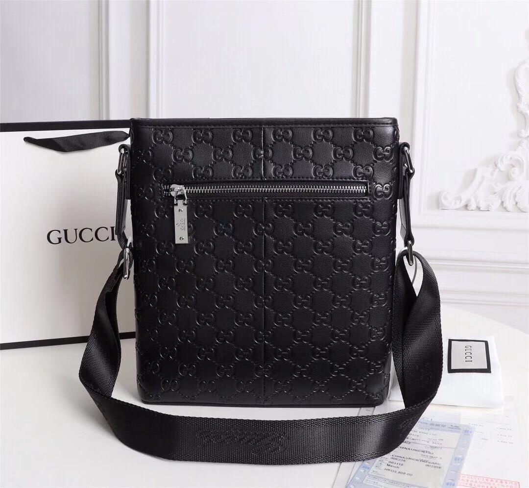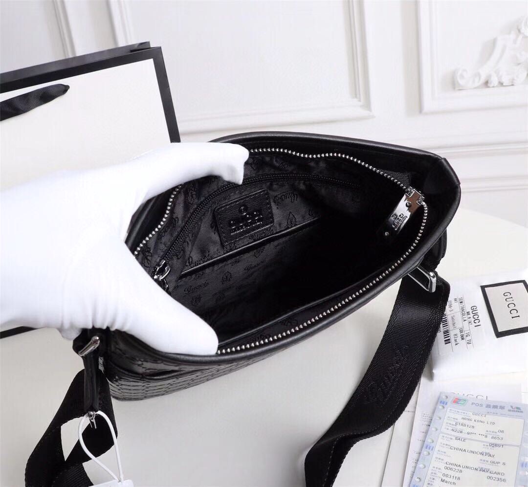 型号:0186-3~斜挎包黑色 古奇 Gucci GUCCI男士休闲系列挺阔流畅大方的楦型设计,以精湛缝线勾勒休闲的雅致情怀、描写男人自信的轮廓看似简约的一款、实际做工相当复杂、非常简单经典。规格:24x27x6cm