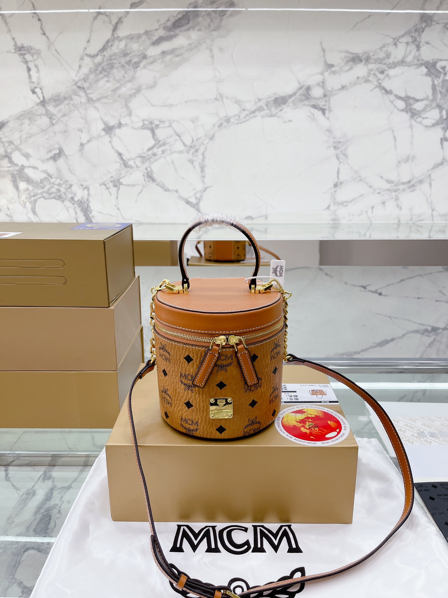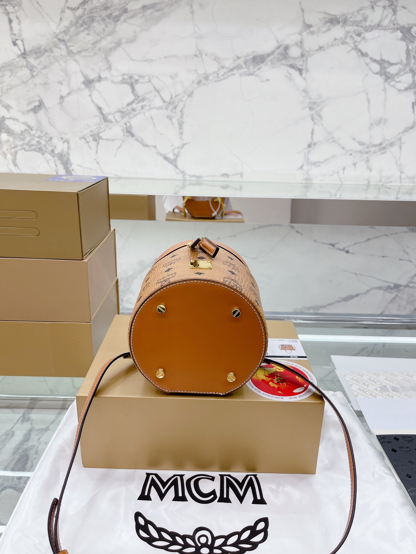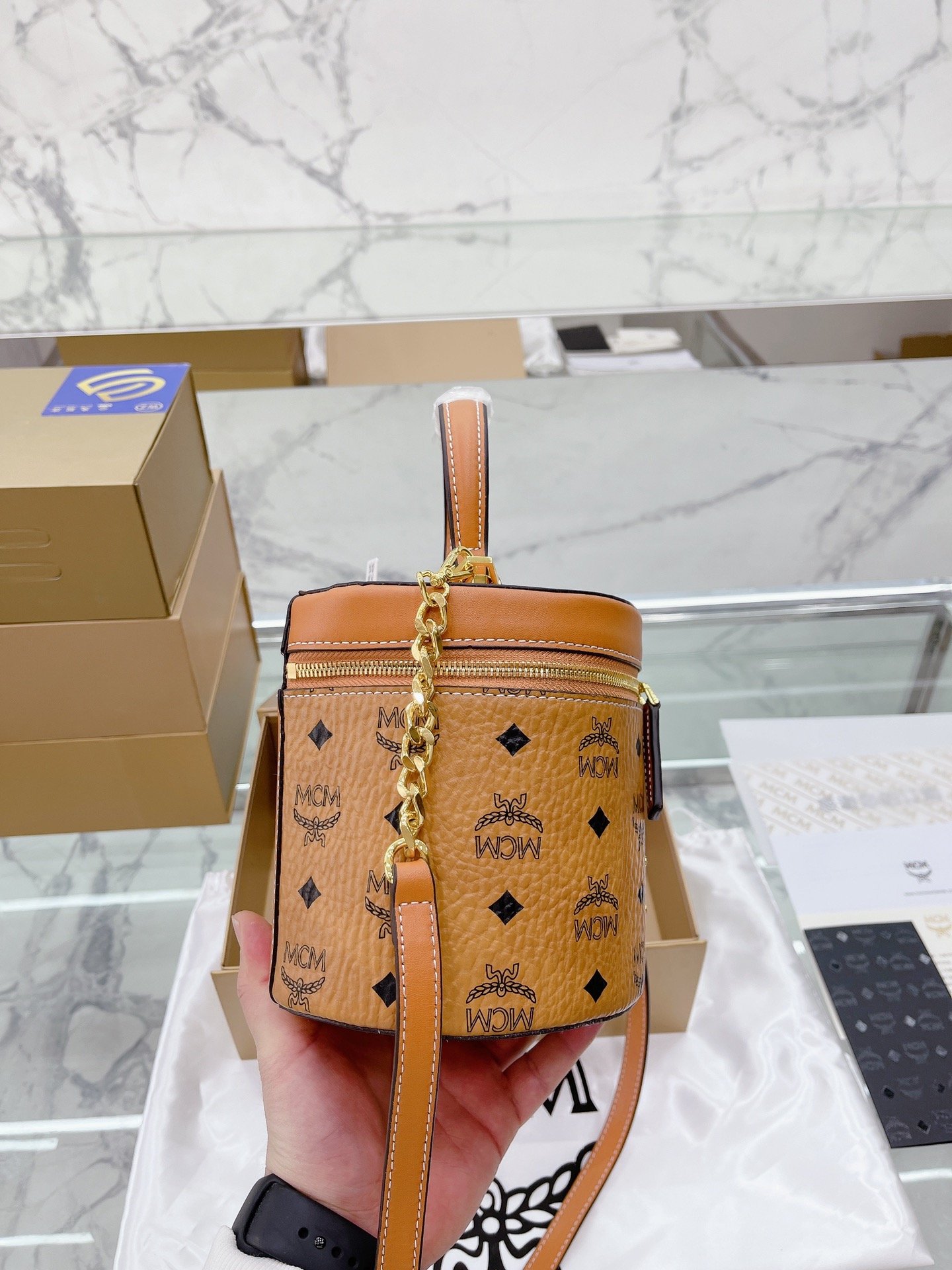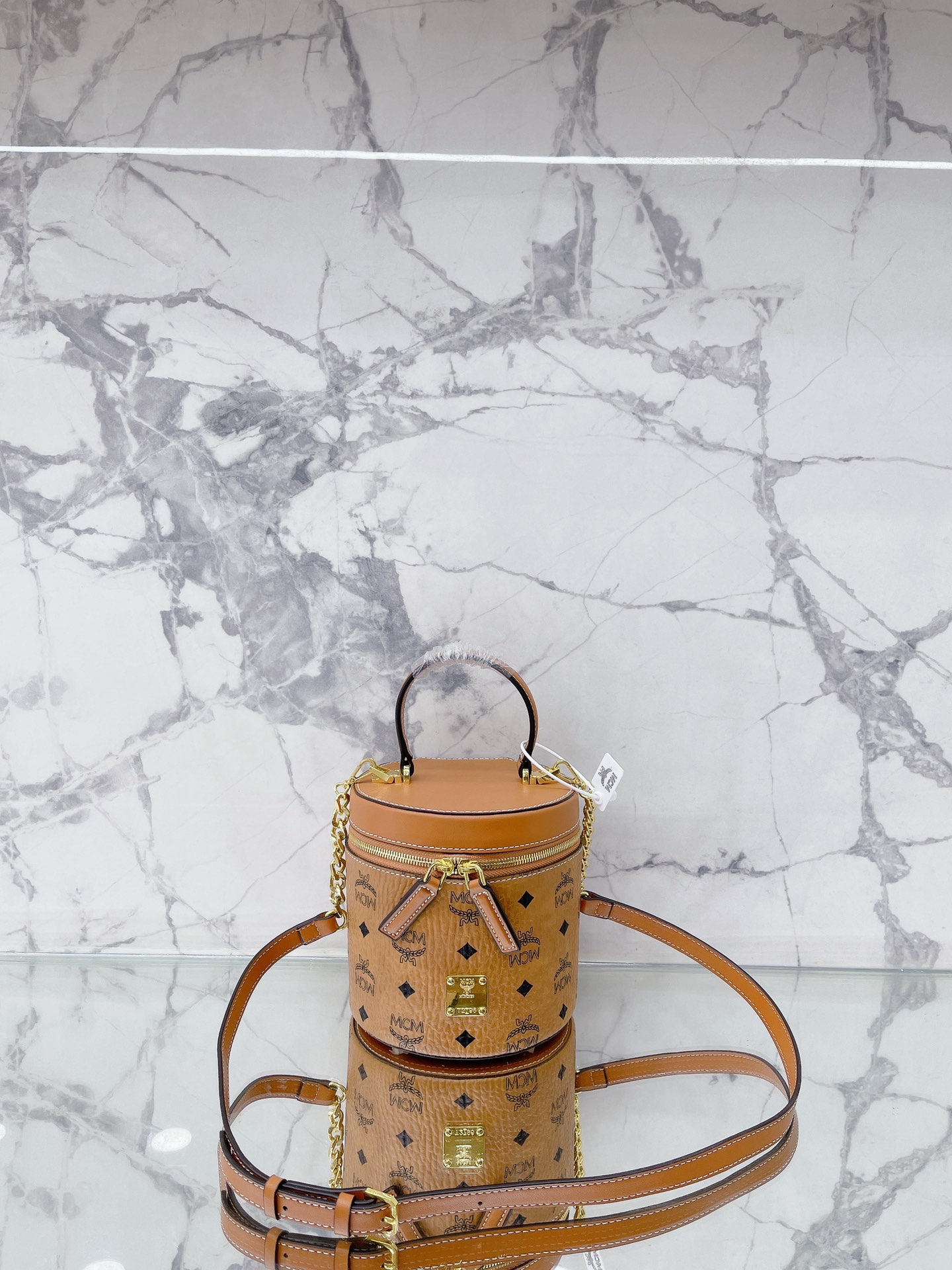 顶级原单 Mcm 原单茶金 CYLINDER笔筒包 这个颜色真的是太好看啦灰米粉的配色包包是经典外形与现代设计的完美结合,我们选用优质皮革,复刻开版,包身坚固耐用,空间充裕,可单肩斜挎可手提,内部有多个风琴式隔层,尺寸:1825cm礼盒