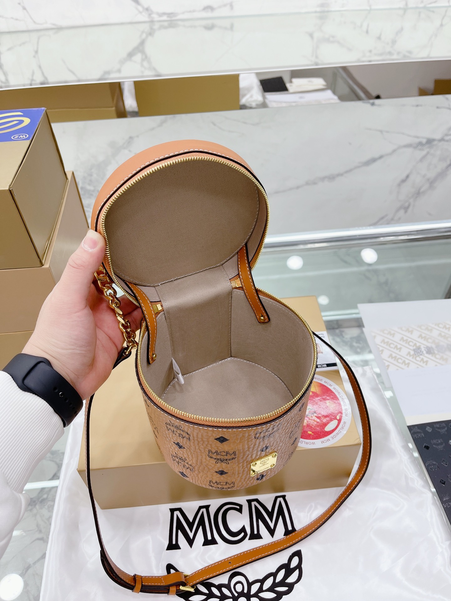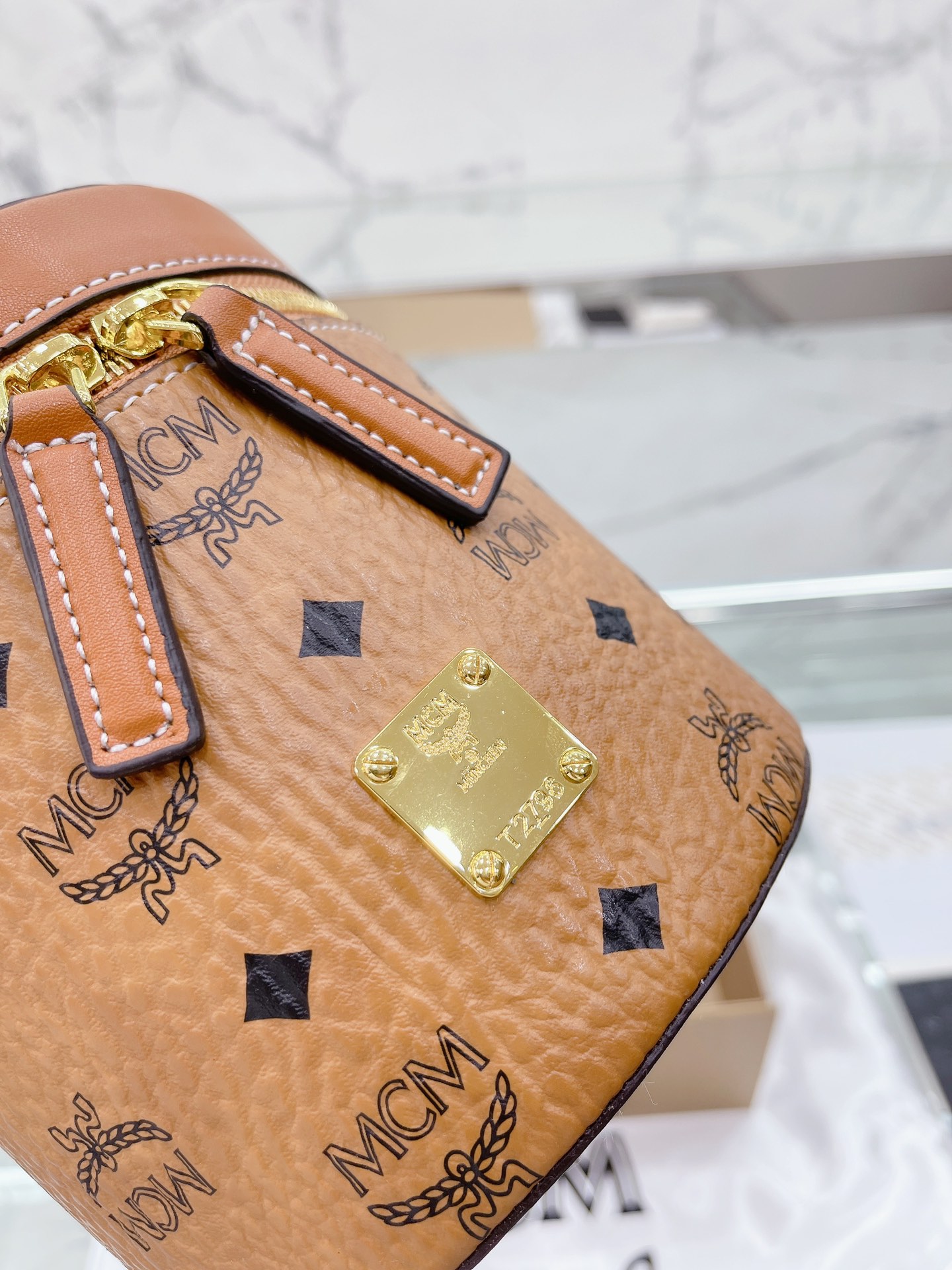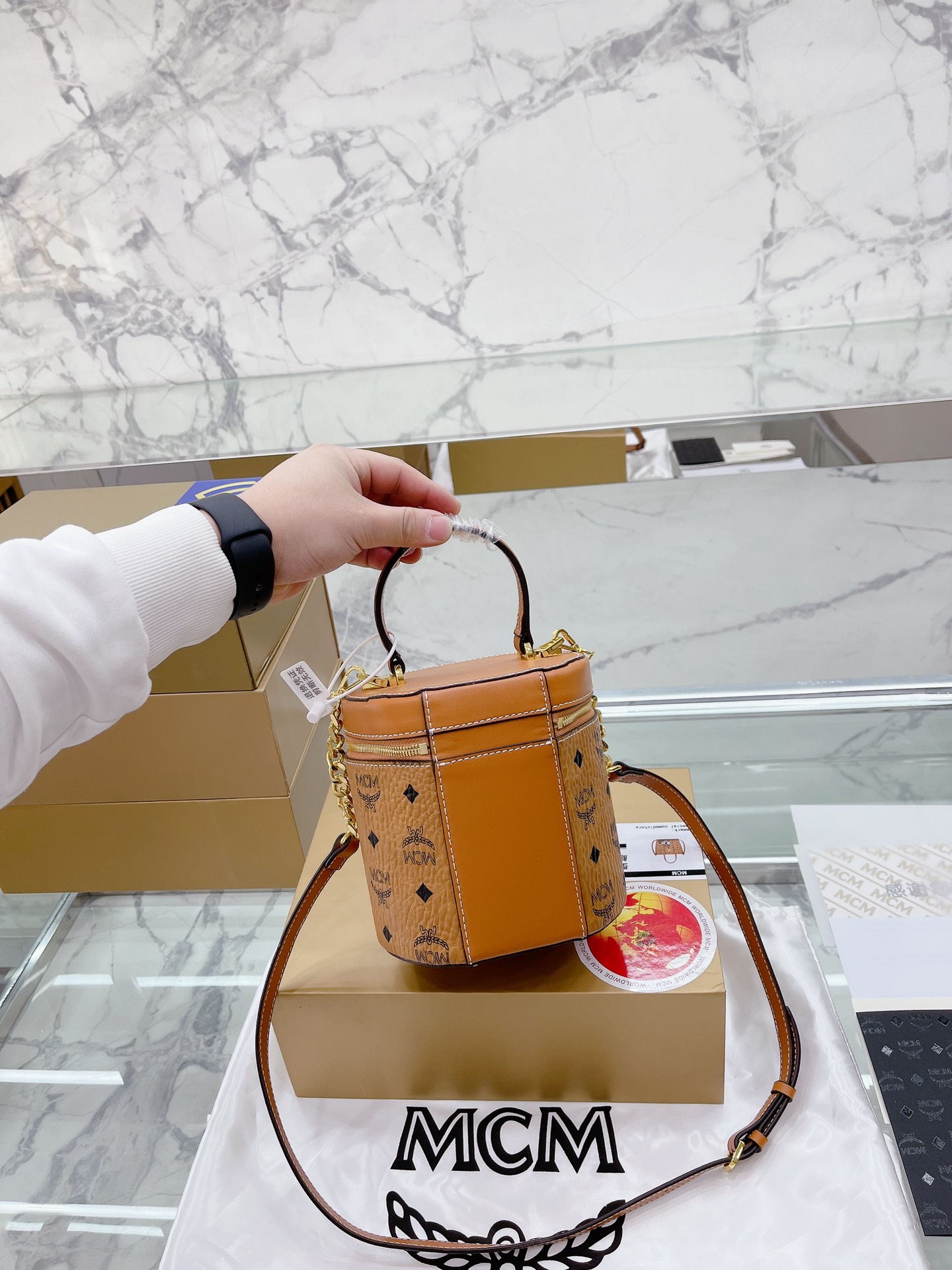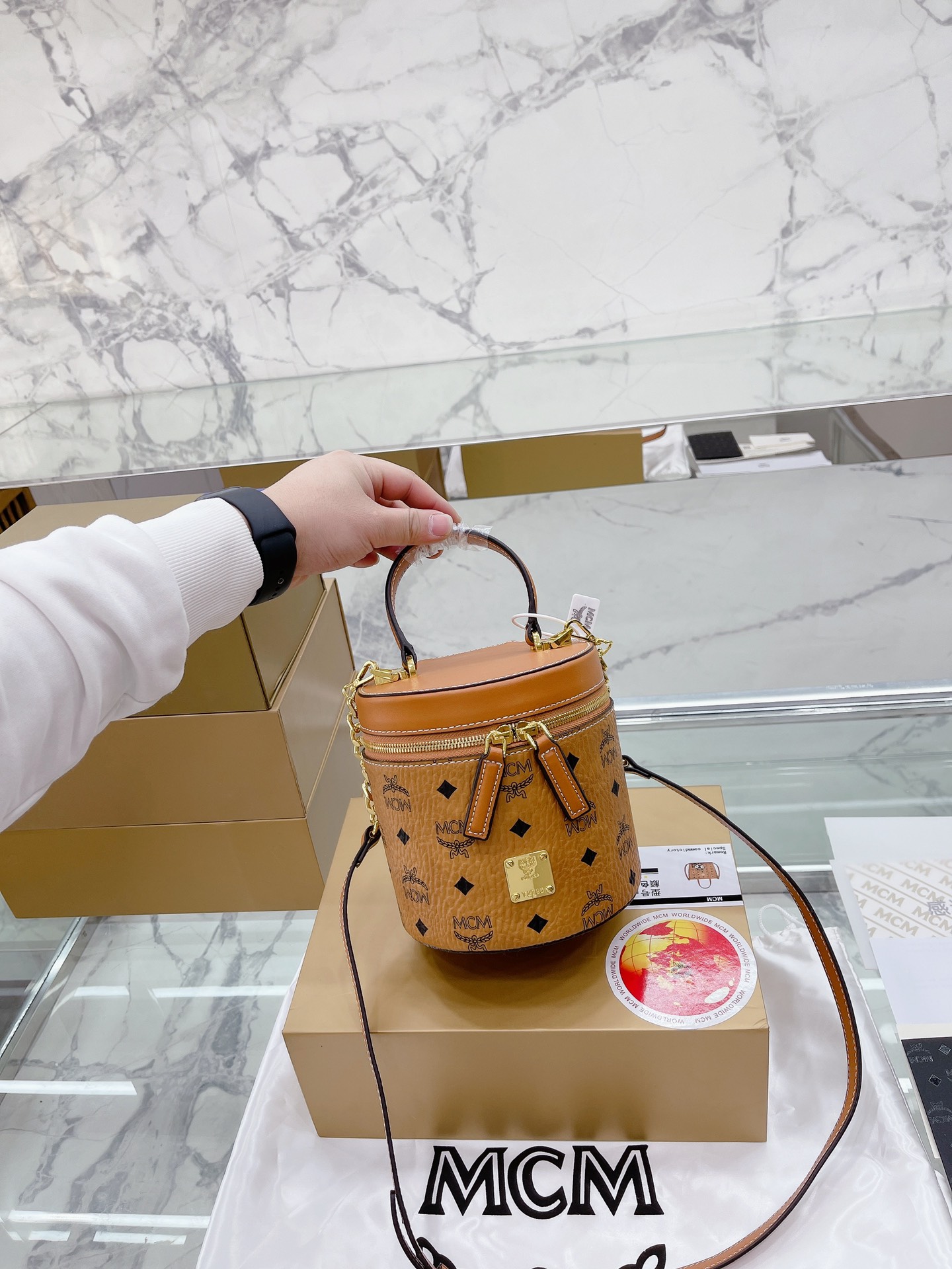 顶级原单 Mcm 原单茶金 CYLINDER笔筒包 这个颜色真的是太好看啦灰米粉的配色包包是经典外形与现代设计的完美结合,我们选用优质皮革,复刻开版,包身坚固耐用,空间充裕,可单肩斜挎可手提,内部有多个风琴式隔层,尺寸:1825cm礼盒