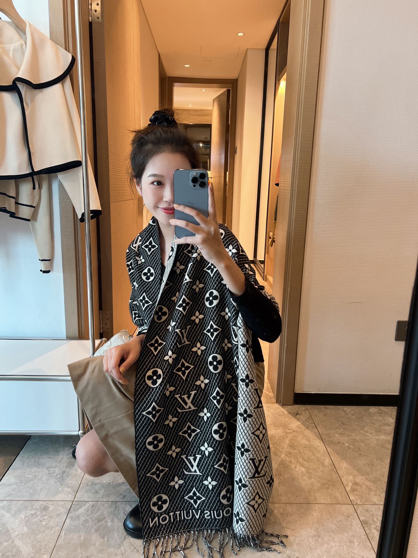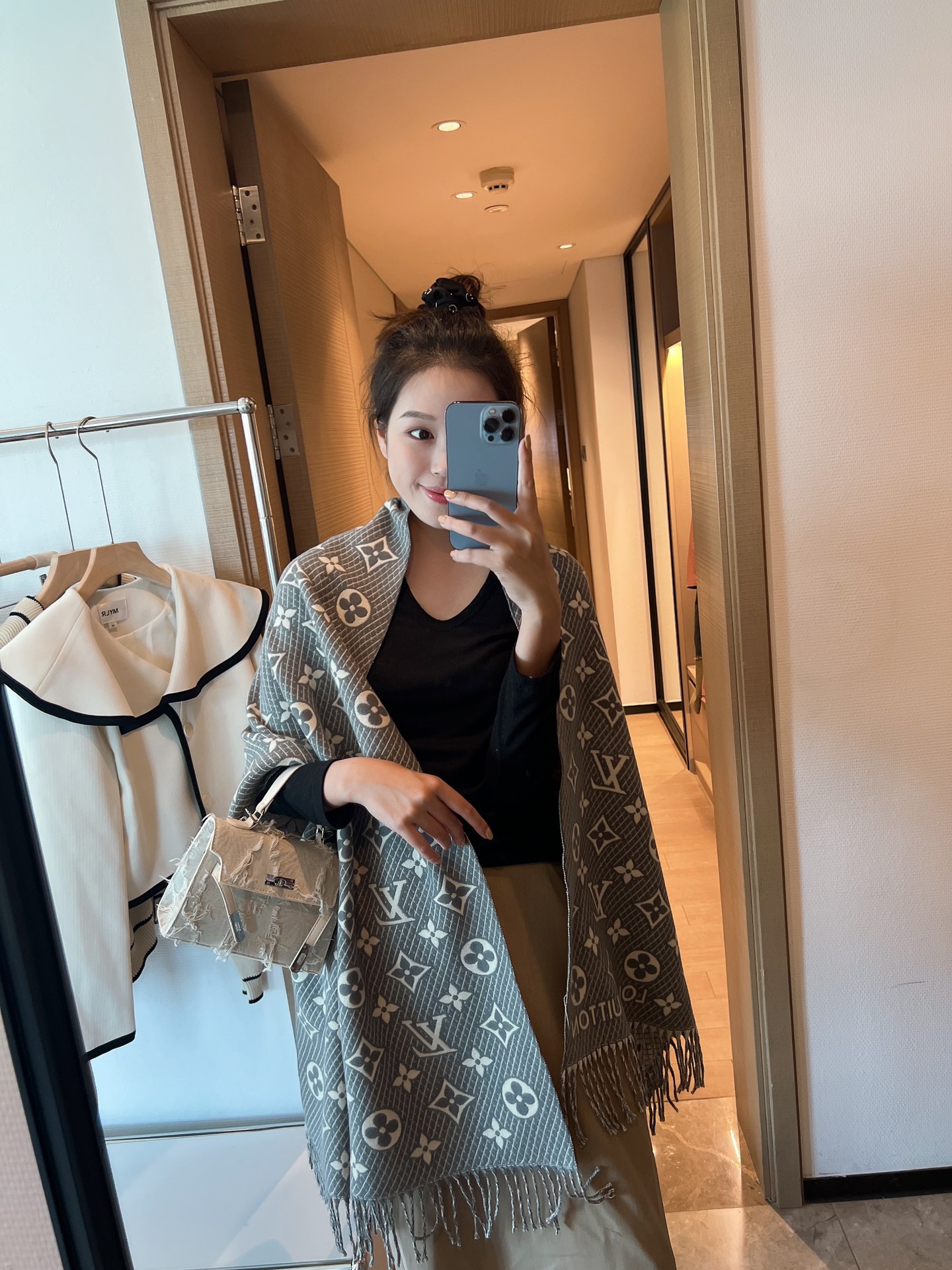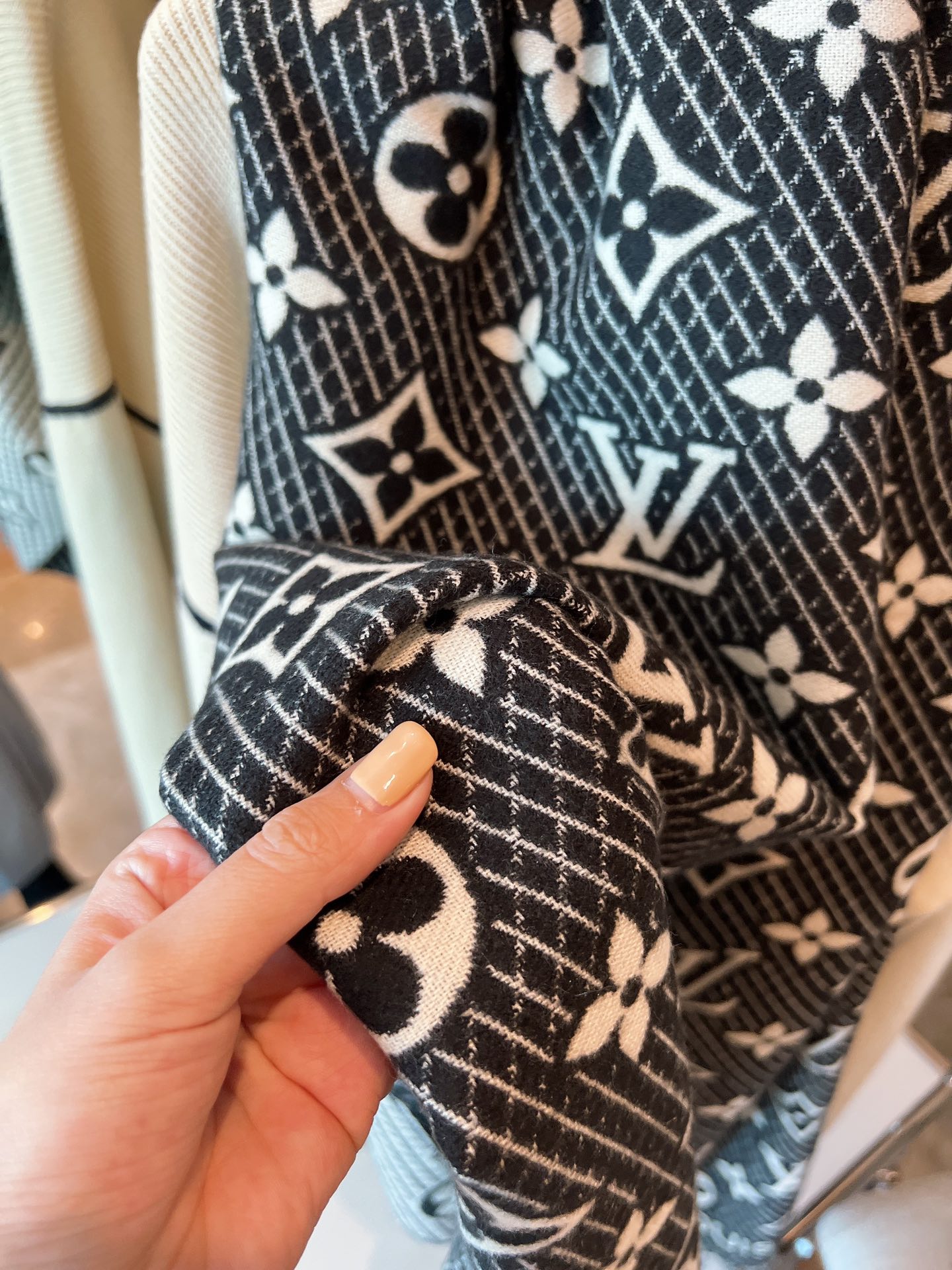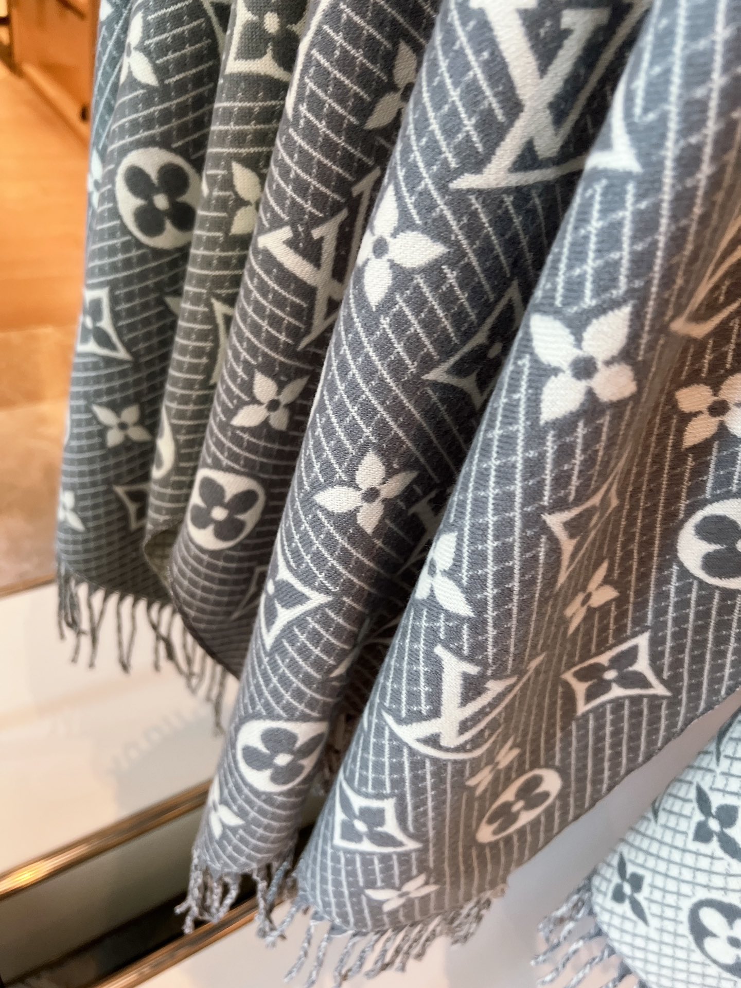 107 重磅流弊原单,一模一样 Louis Vuitton 路易威登 LV 专柜新色出口境外。专柜的最新限量双面桃粉色全部纱线进口客供 唯一一家给 Louis Vuitton 路易威登 LV 订制纱线的工厂供原料 如果不是能收点渠道牛逼货 我估计专柜都买不上这种限量版货色。太少了。售完无补因为国内没有这种订制的纱线 货品质极好,就一个色精工高密度字体无比清晰 面料为最顶级高原开司米尔羊毛真丝和专柜一样 手感柔软丝滑 奢华有质感这款披肩将真丝与羊毛相混搭,质地柔软而温暖,饰有同色调的Monogram图案。饰有Louis Vuitton 的字样,经典而永不过时。