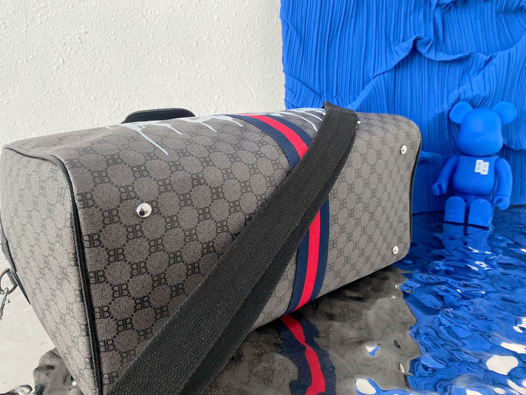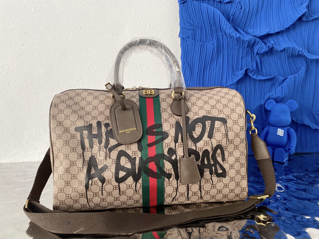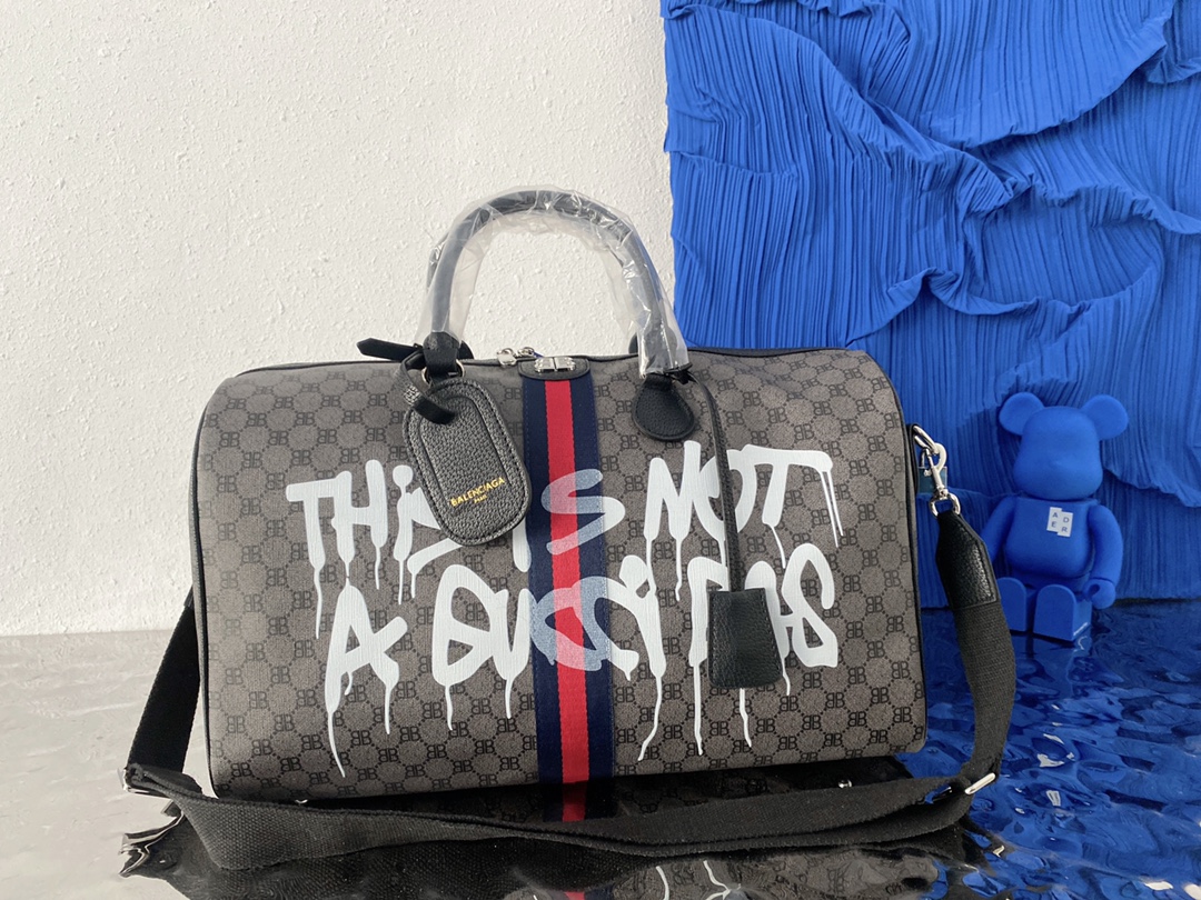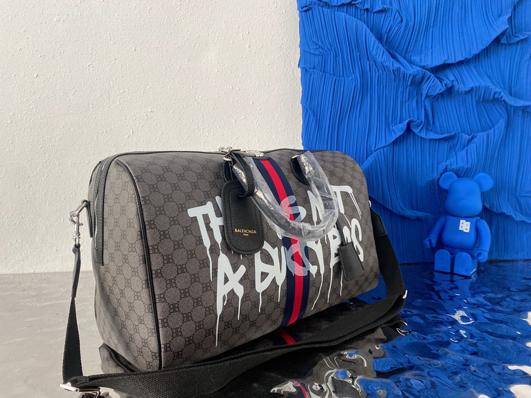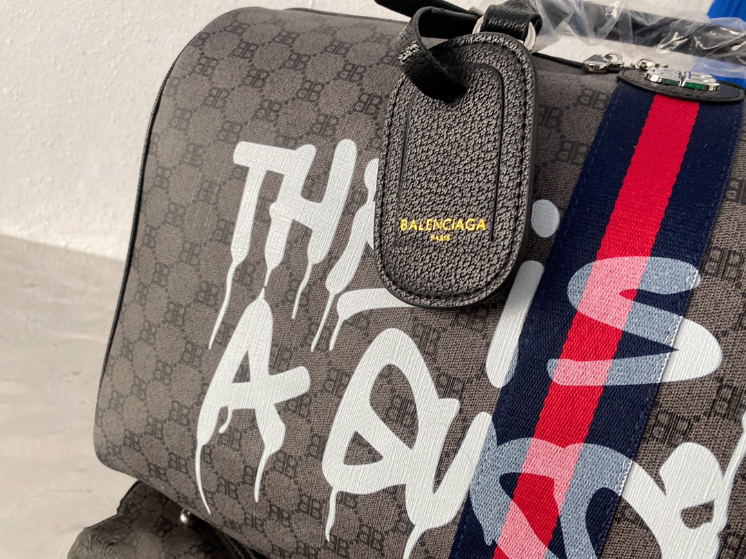 Balenciaga巴黎世家 X Gucci 古奇 Hacker涂鸦涂层世纪联名旅行袋 手提包袋 机场包 采用精湛镶嵌细工,经典百搭 实物拍摄 原厂原版面料 680124 配送小票防尘袋 28 x 46 cm。