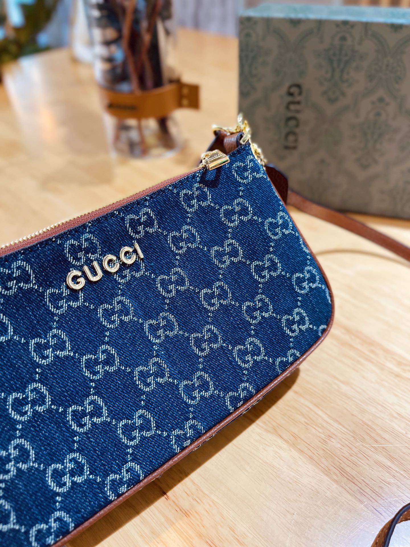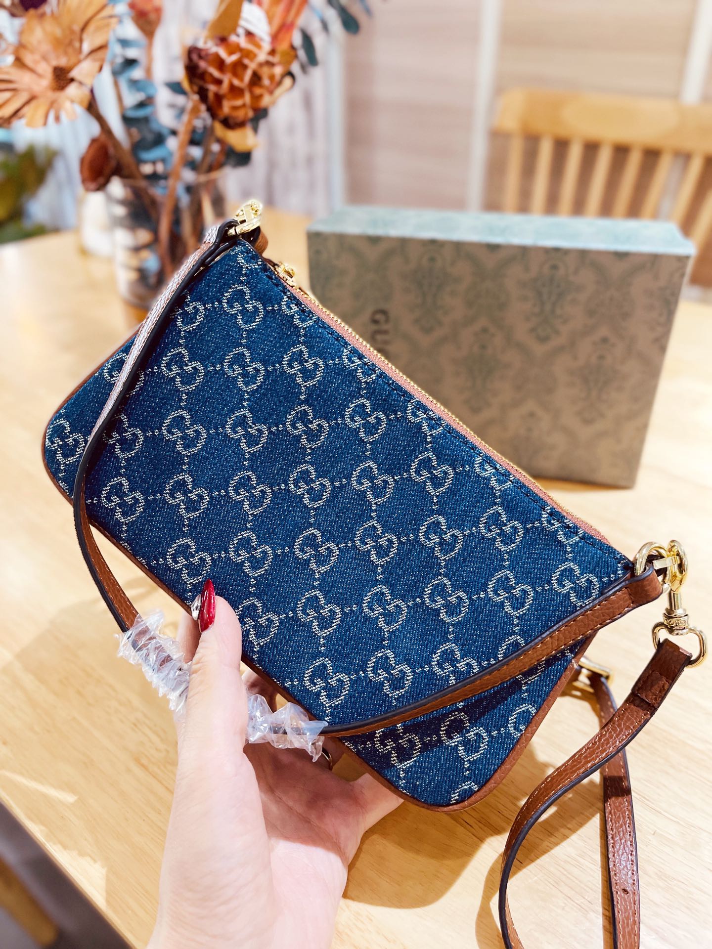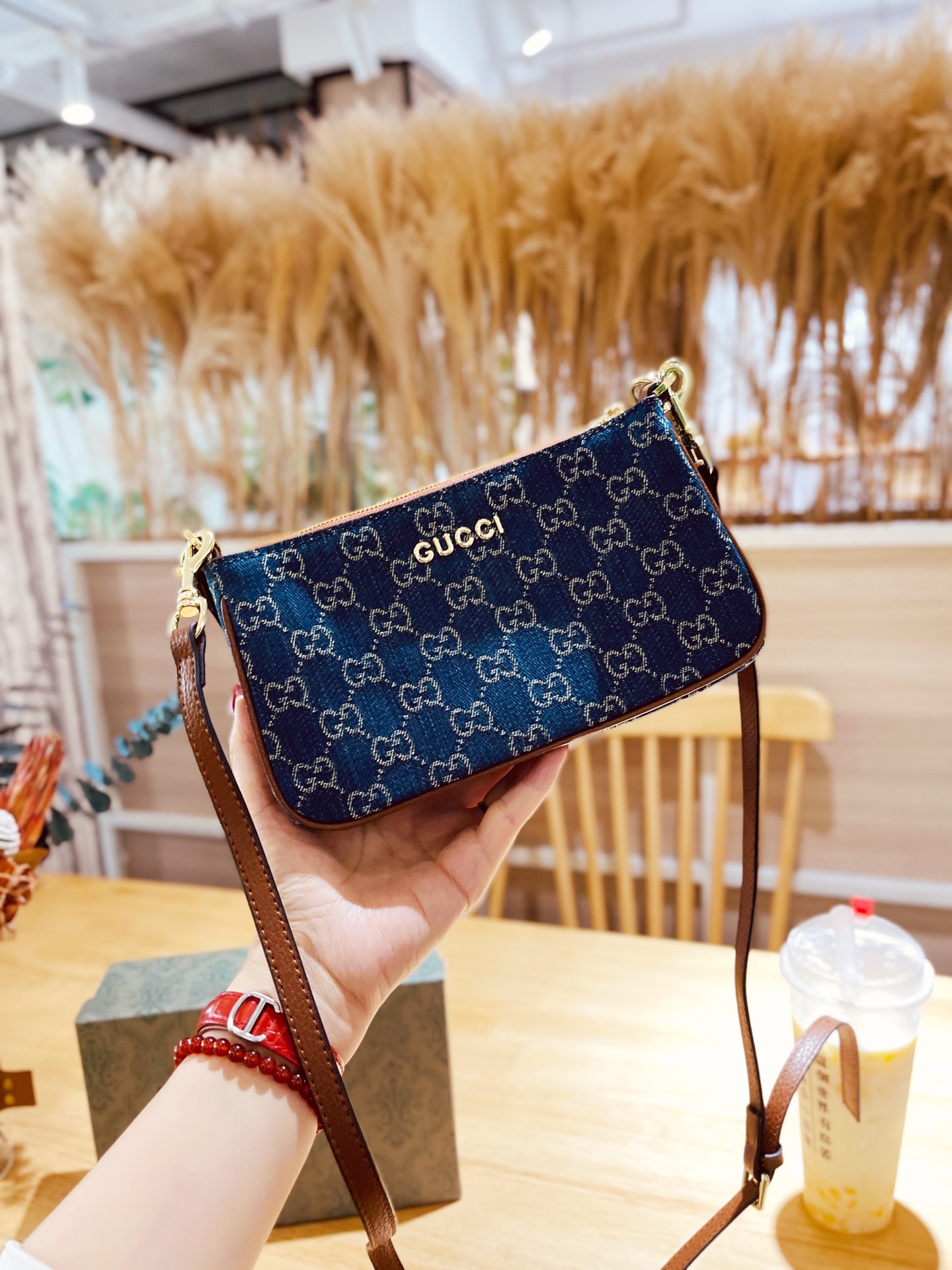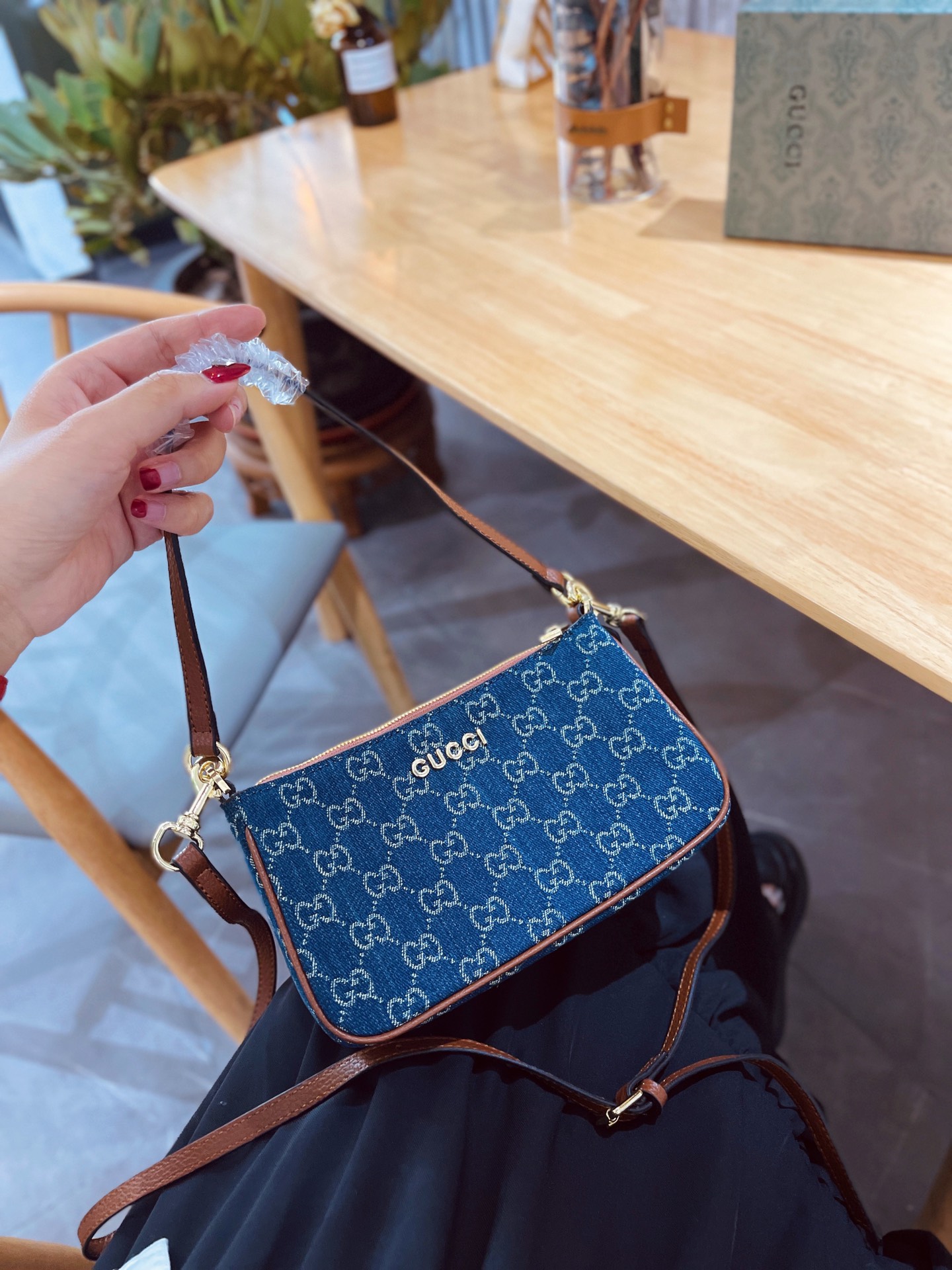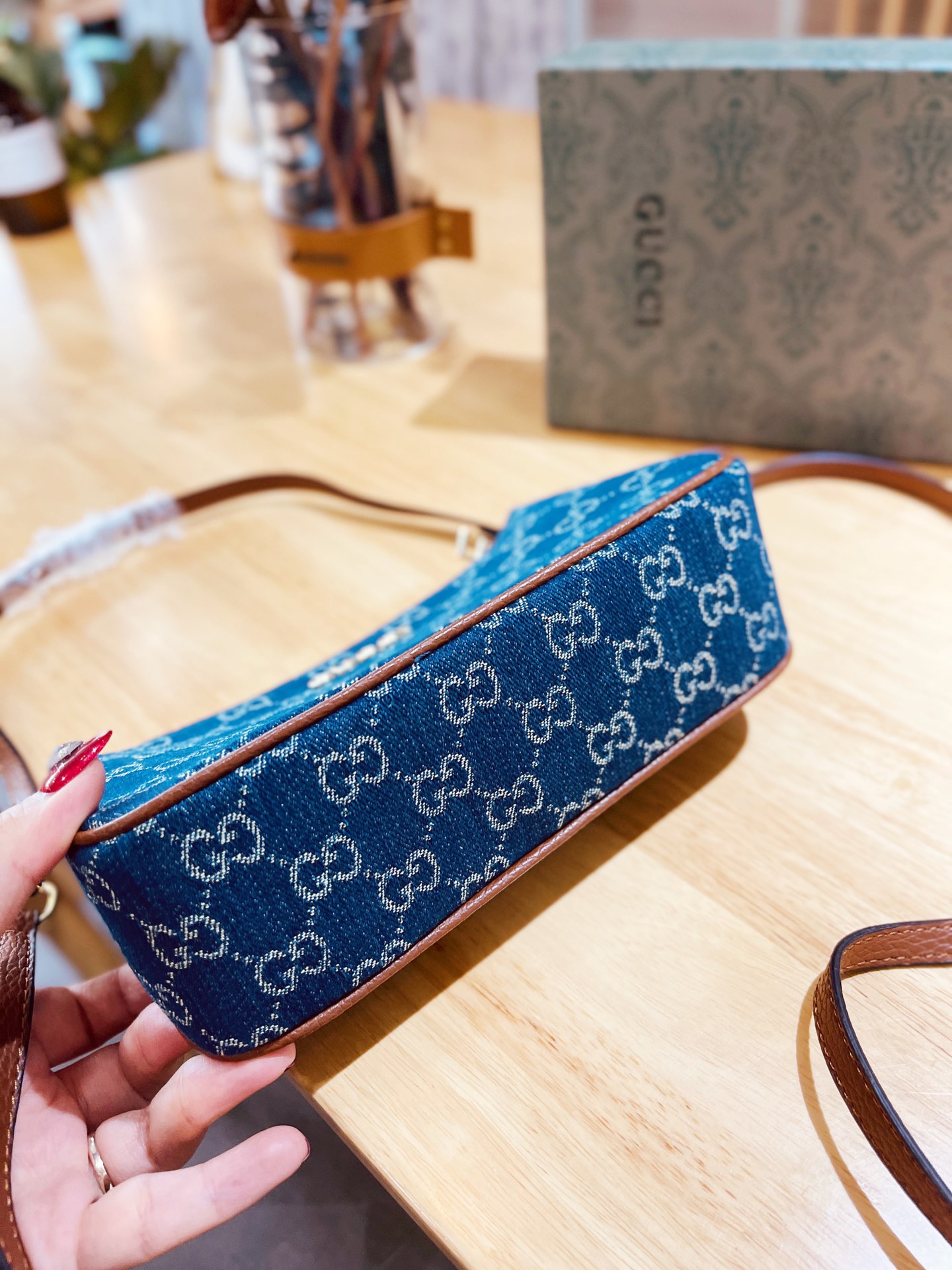 I5 酷奇/GUCCI 经典爆款 牛仔布 老花月牙包 精致皮革赶走沉闷,邂逅活力 重工肩带,可调节可手提 真的太太太 100遍 好看了~ 百变Style由你掌控 尺寸:23cm