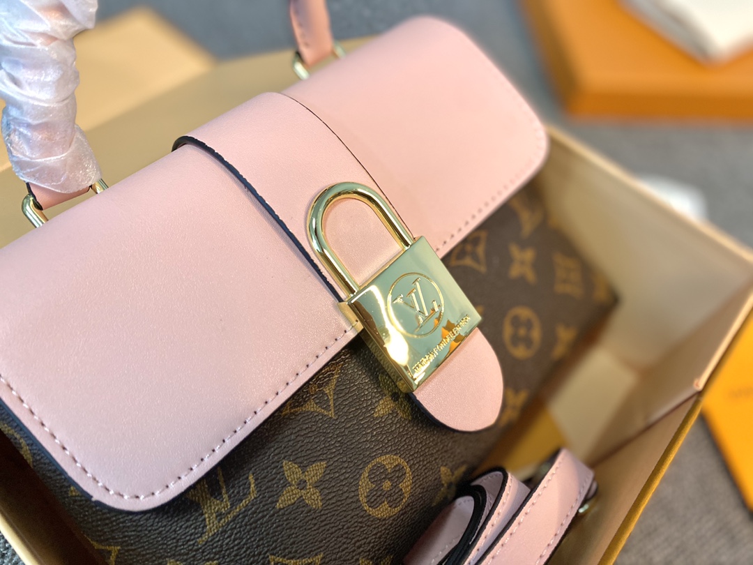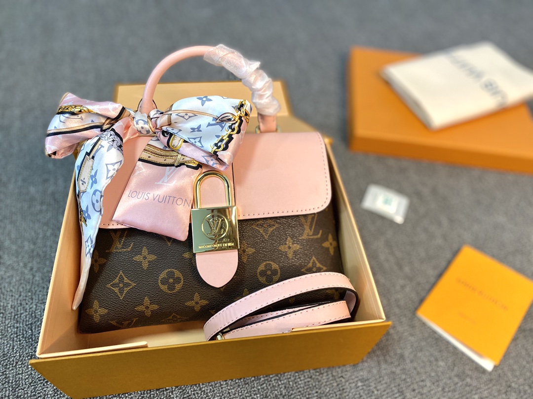 J0 款 185普通礼盒 Louis Vuitton 路易威登 LV LOCKY BB老花拼皮手提单肩斜跨包 Monogram涂层帆布与柔滑的材质 磨面牛皮饰边 织物内衬 金色金属饰件 顶部配有Toron手柄 适合手提或手挽 可脱卸 可调节肩带 方便肩背或斜挎 经典磁吸挂锁 内设贴袋 尺寸23cm