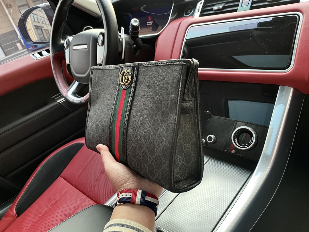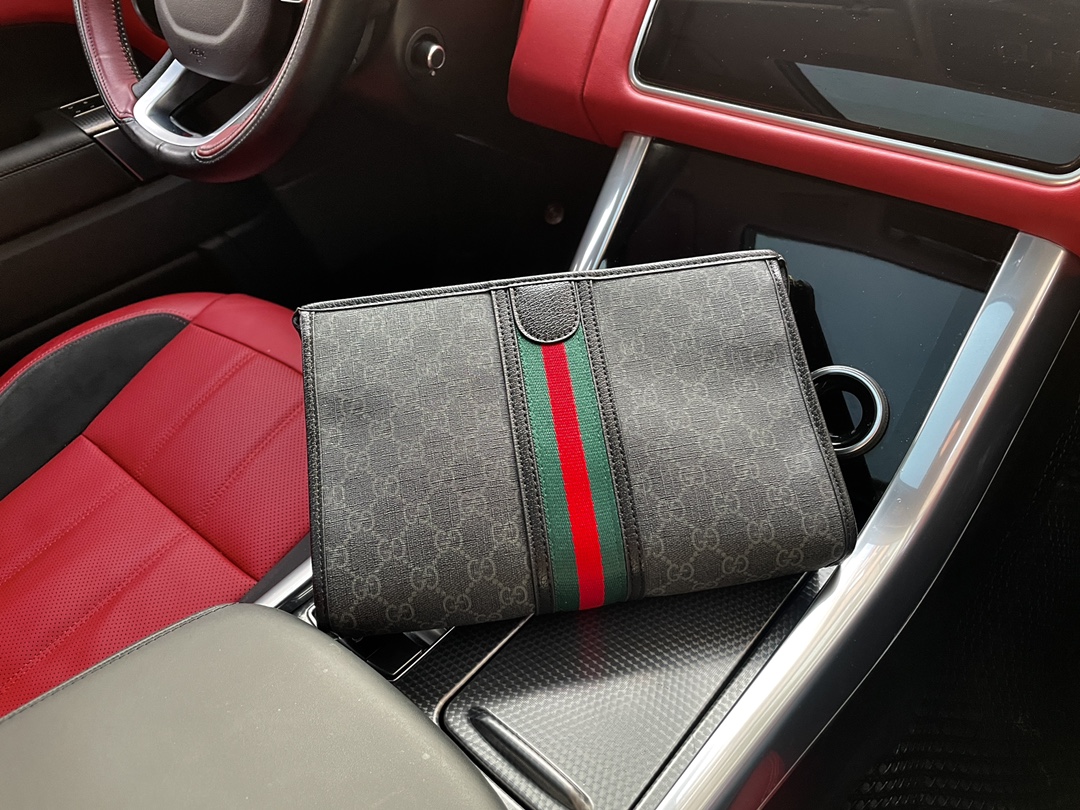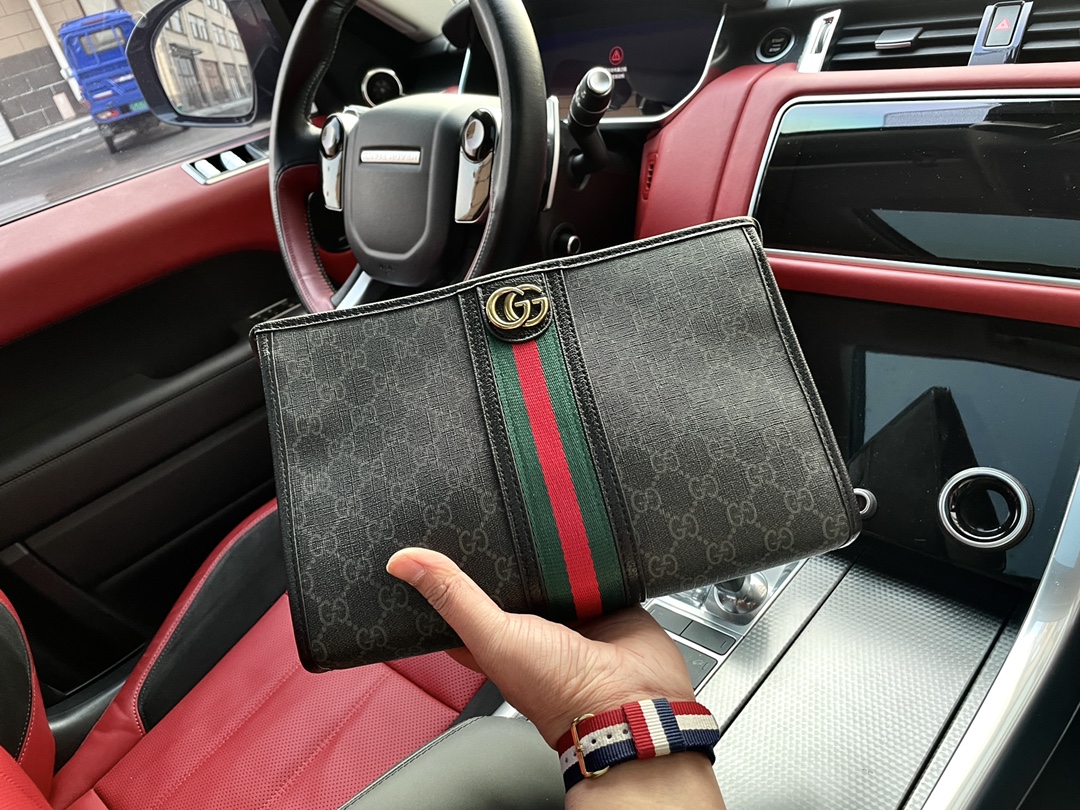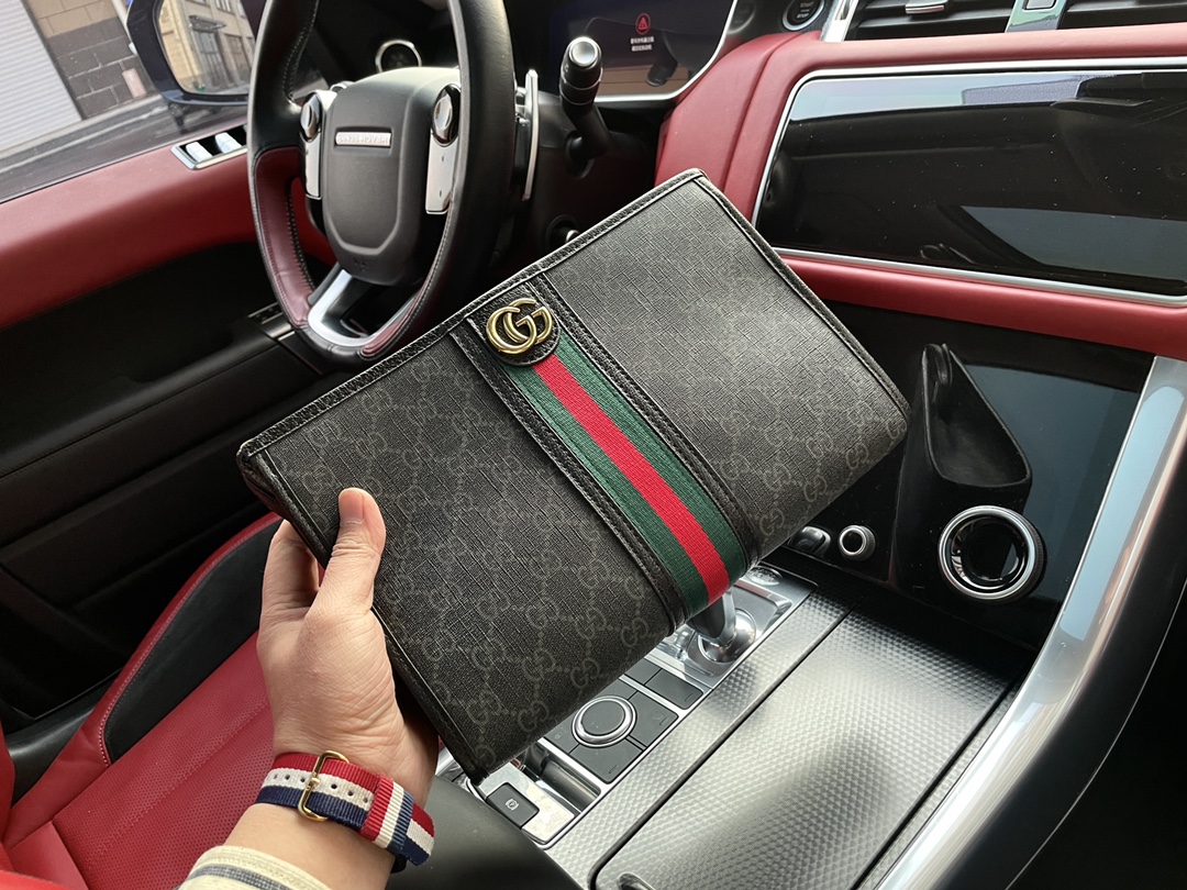 J0 高端货 “GUCCi/ 古奇 Gucci ” 手拿包 由Gucci最具辨识性的两种标志 — GG图案和织带精心搭配制作。这款手拿包由GG SuSu蓝色和红色织带 内侧开口棉麻衬里配:礼盒 598234规格29/18/9cm。p175