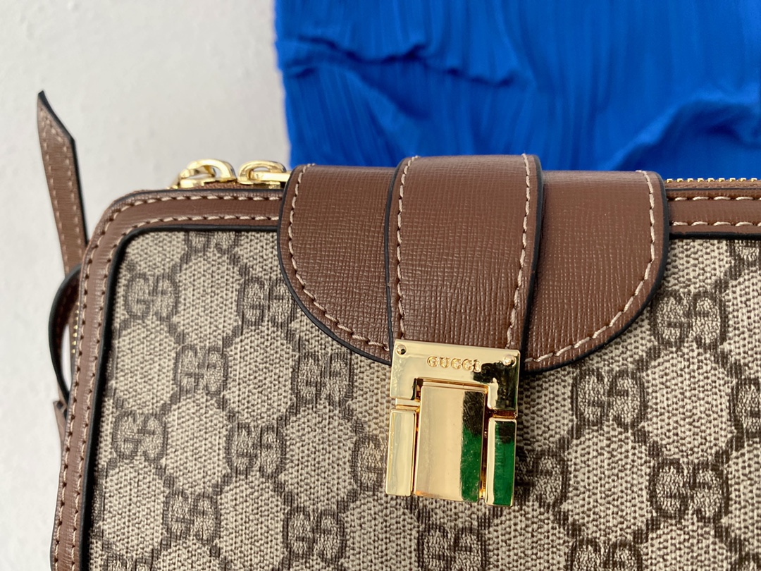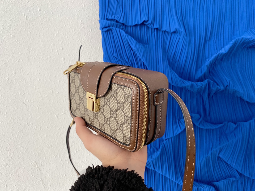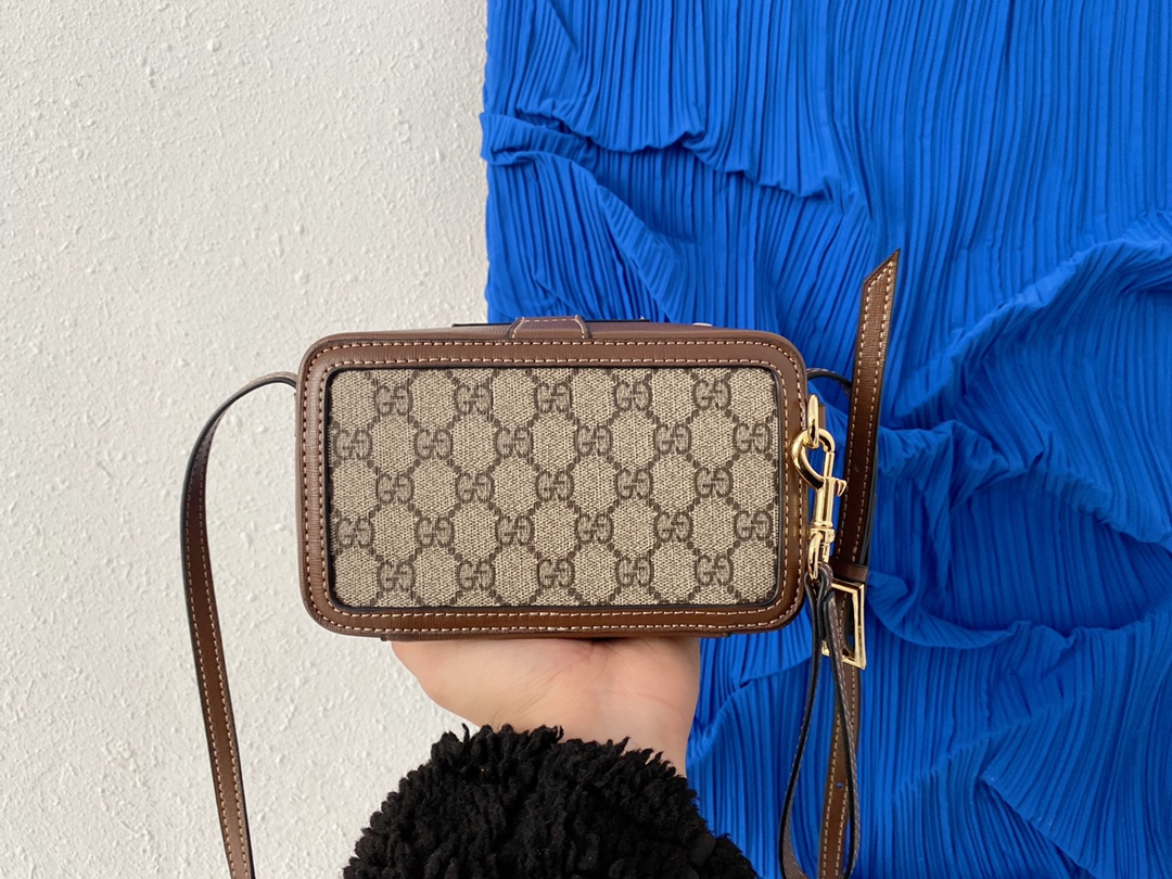 J0 Gucci 古奇 饰搭扣迷你手袋 GG相机包 卡包 单肩包男女同款手机包 经典Logo搭配原厂工艺材质 采用精湛镶嵌细工,实物拍摄 原厂原版面料 614368 配送小票防尘袋 礼盒 17 x 10 cm。