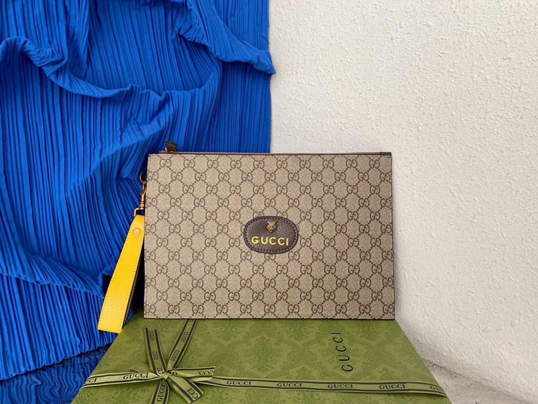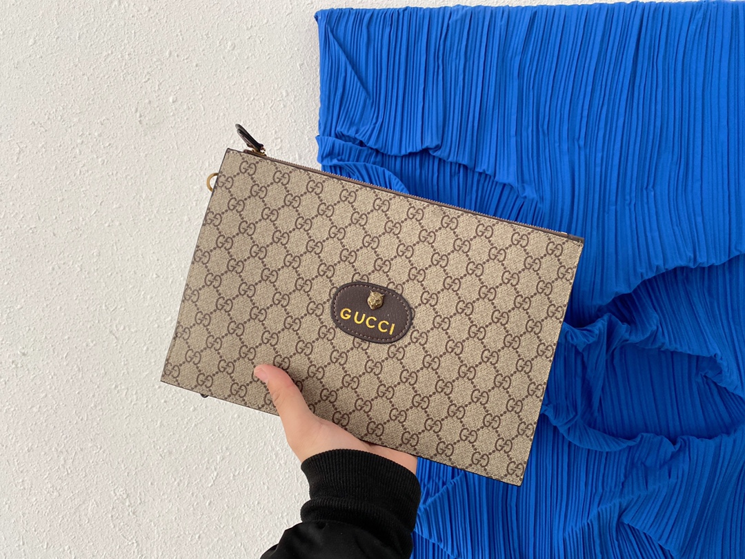 J0 Gucci 古奇 Neo Vintage 系列手拿包 GG印花手袋 手包 采用精湛镶嵌细工,实物拍摄 原厂原版面料 473956 配送小票原版礼盒 30 x 20cm。