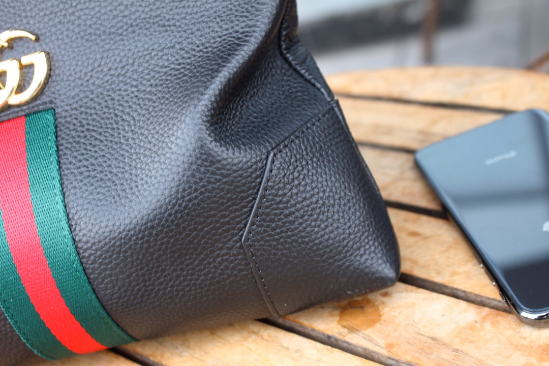 J5 。GUCCI 型号: 6017黑色。牛皮的毛孔放大镜可以见绝对的实实在在小牛皮修面进口。男女通用。官網同款再次來襲雙面頭層打造與正品0差距歡迎官網比對找全市場最高性價比的請看這裏规格:27x18x4cm