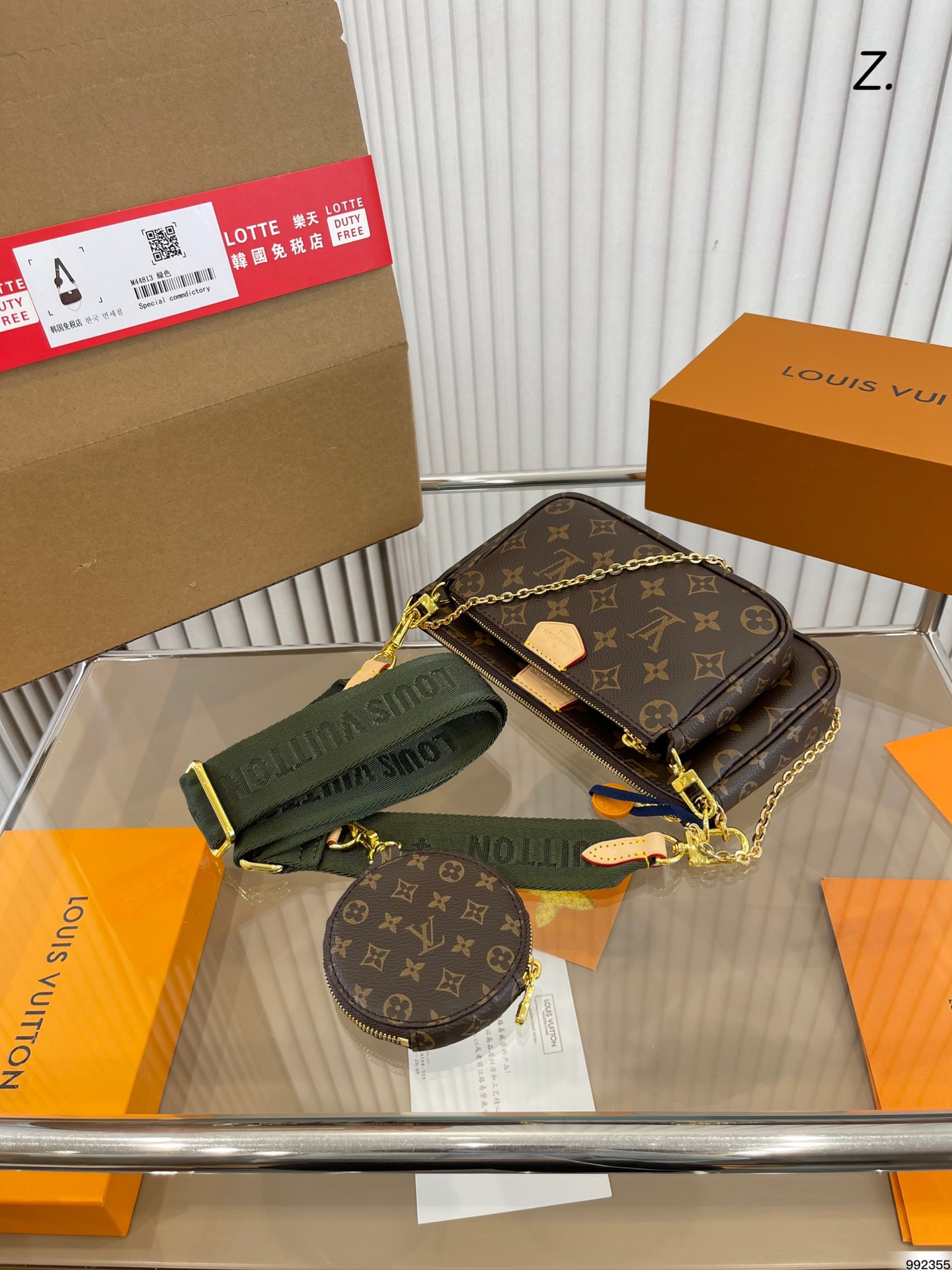 J5 乐天包装 Louis Vuitton 路易威登 LV 老花三合一 今年这个麻将包太牛了 不得不推酷毙了吧!! 完完全全把几个包整个成了一个包!! 不仅实用 颜值还高!! 尺寸:23.513cm
