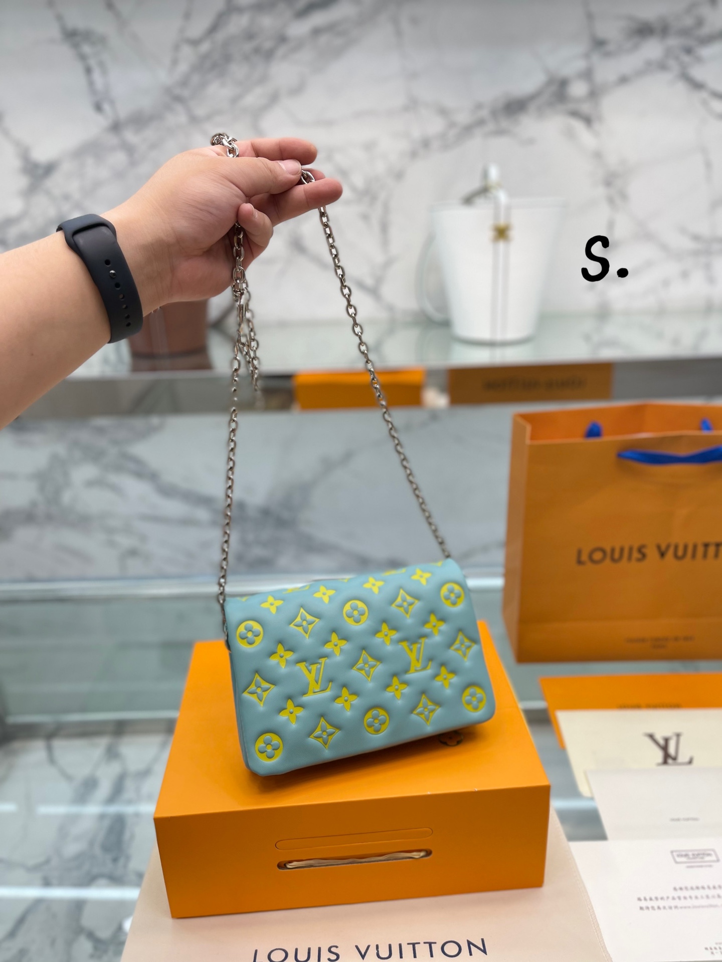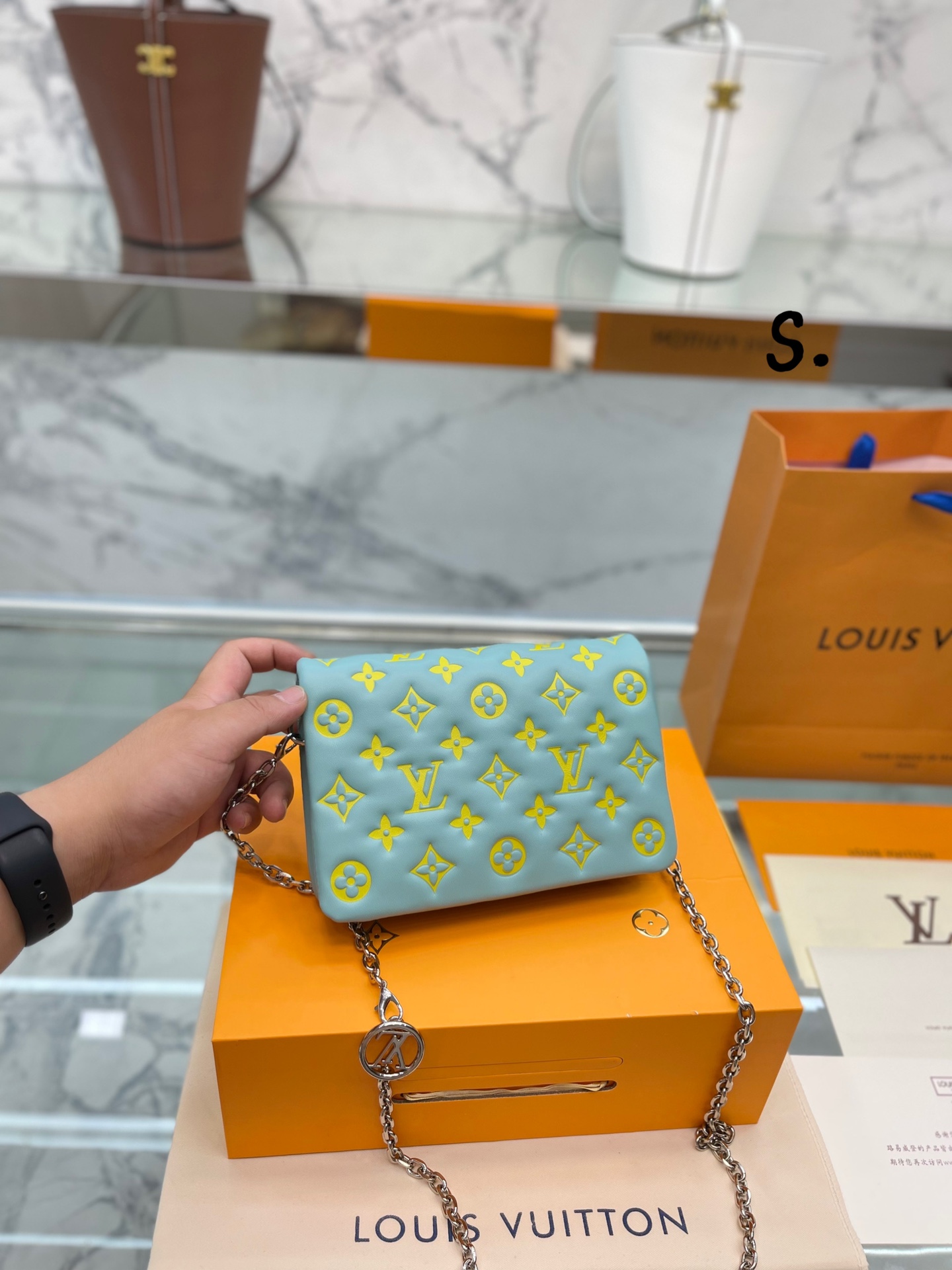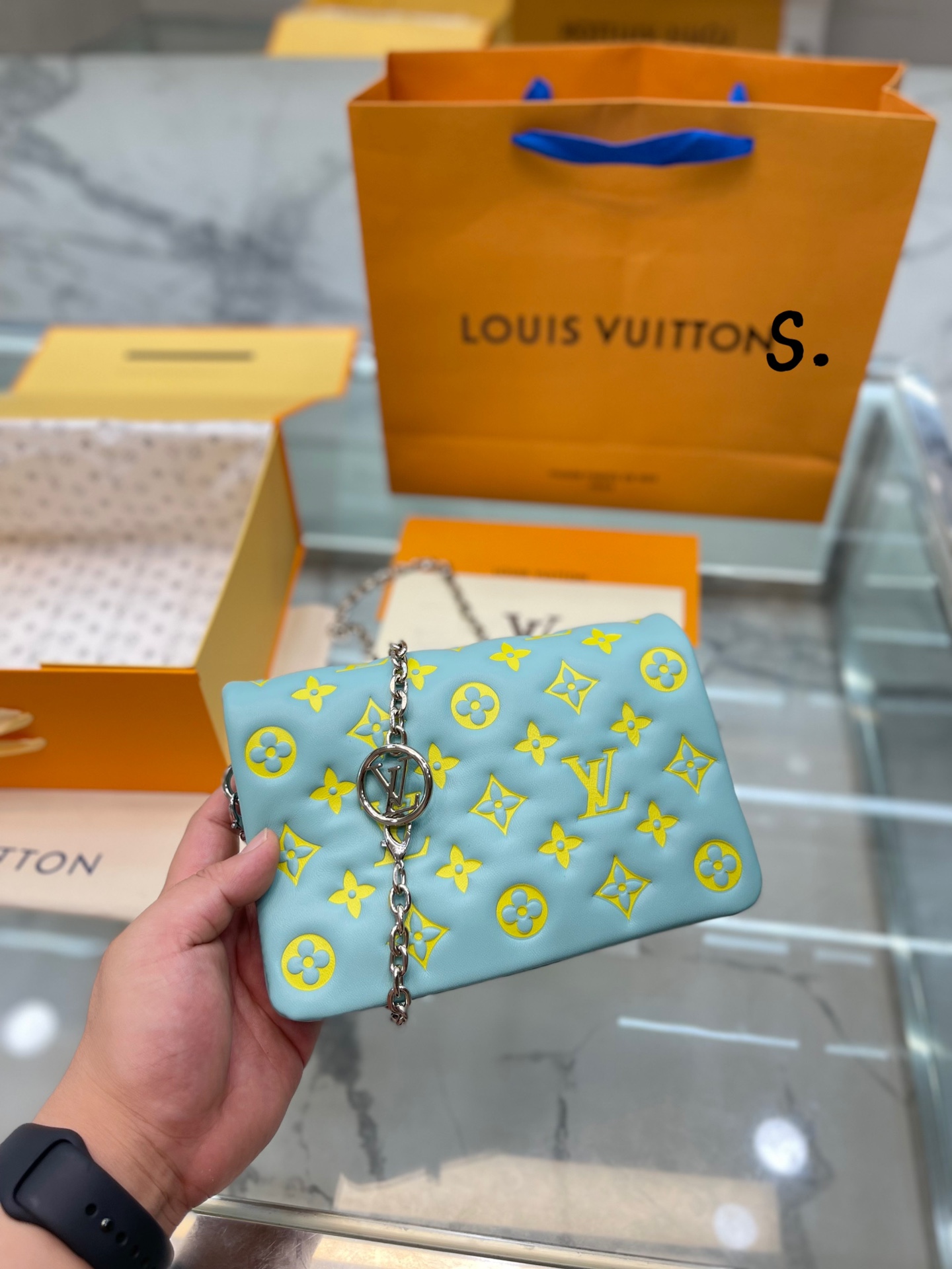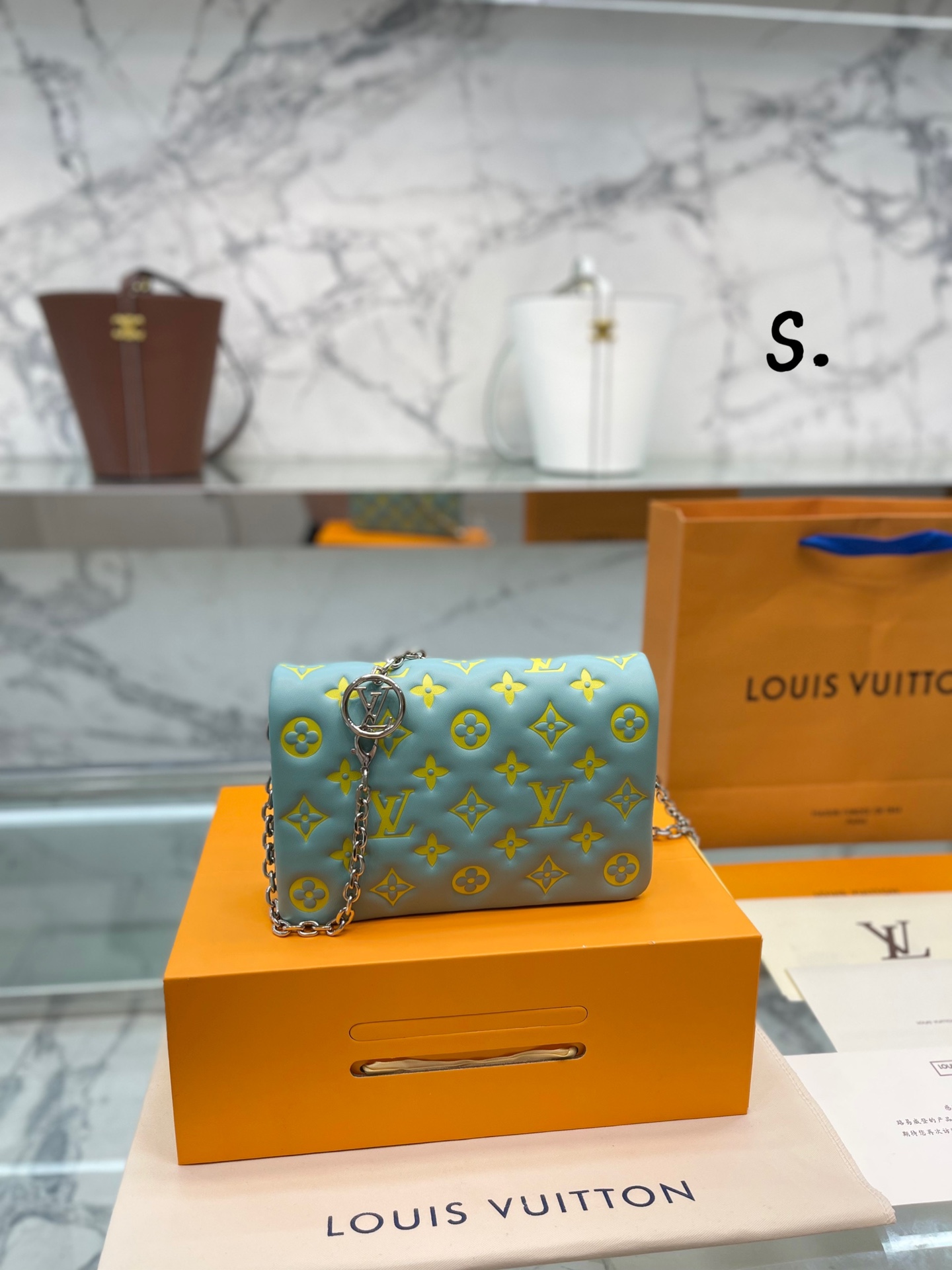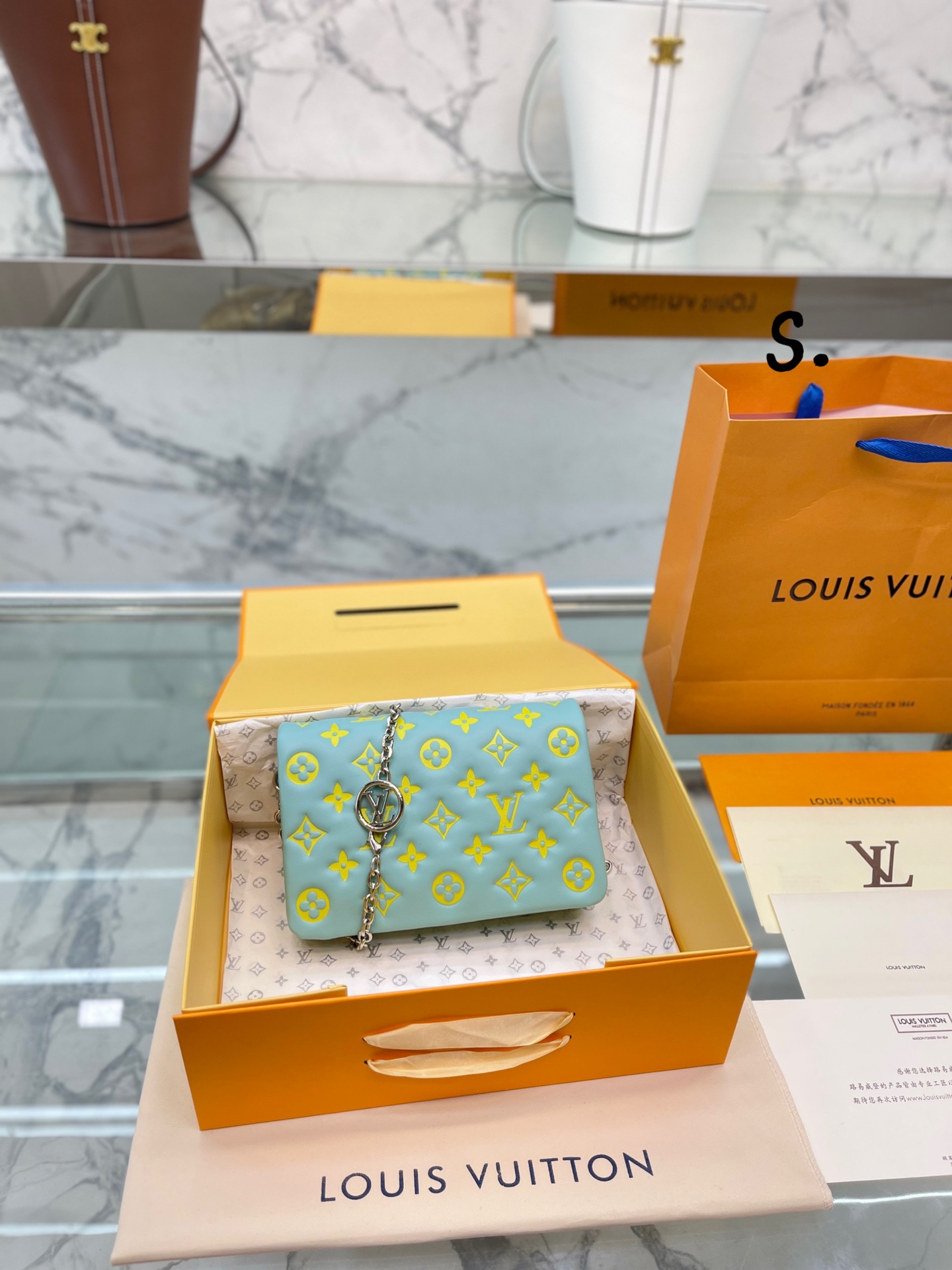 J5 原单品质 Louis Vuitton 路易威登 LV 2022 Coussin Woc 官网风琴包 超级美腻 Louis Vuitton 路易威登 LV 原单品质最新手拿包 洗漱包 可单肩斜挎 配宽肩带 戴帽链条 超高质量 原版五金打造的极富创意上身效果极佳,设计理念独特精匠之作 尺寸:20 14cm