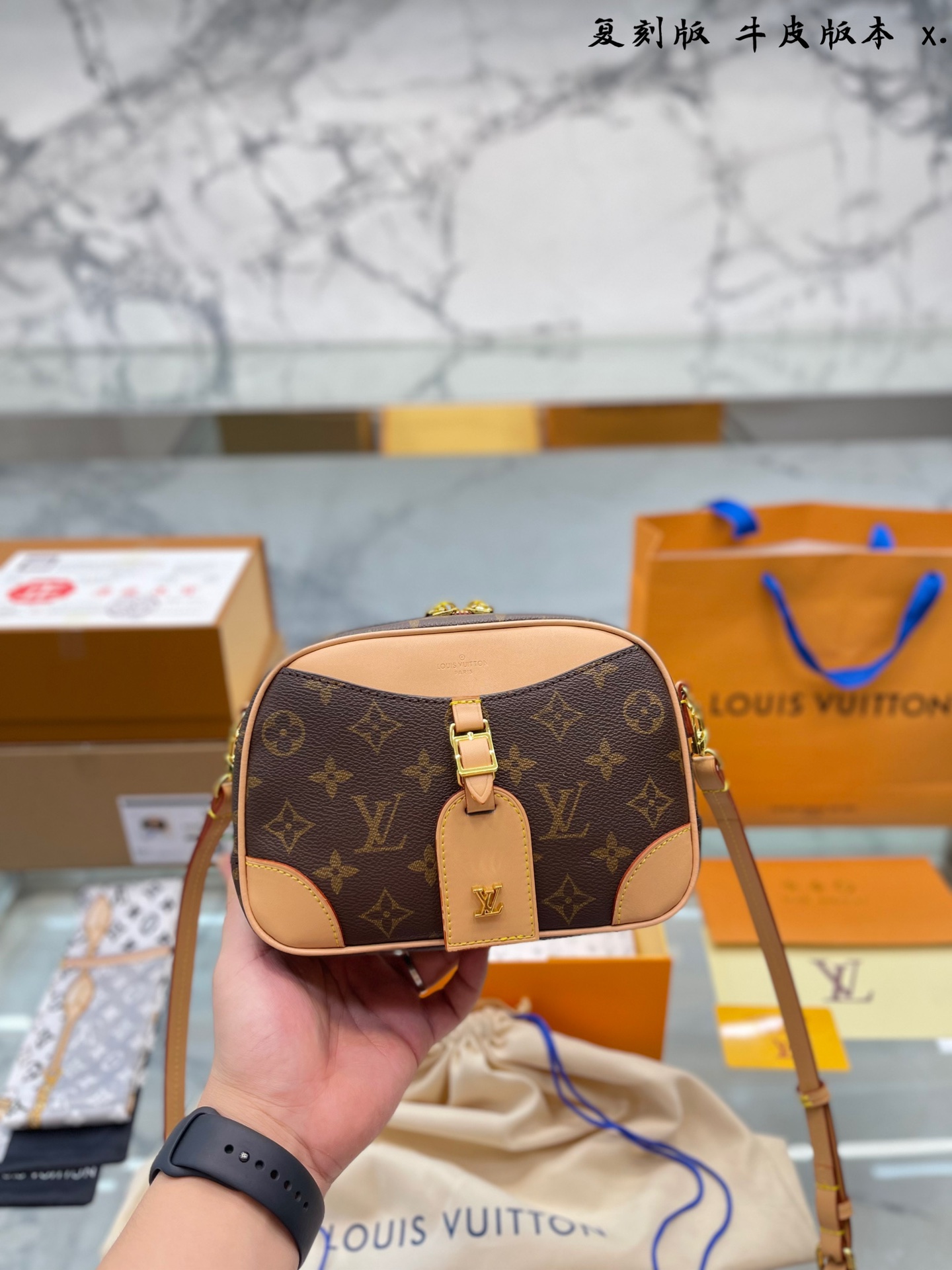 J5 原版牛皮 Louis Vuitton 路易威登 LV DEAUVILLE相机包 密封折叠礼盒 原单牛皮 FAVORITE 中号手袋这款Favorite 中号手袋以Monogram 帆布制成,可手拿,肩背两用。配有可拆卸式肩带和金属链条。平日携带,典雅高贵。尺寸24 15cm