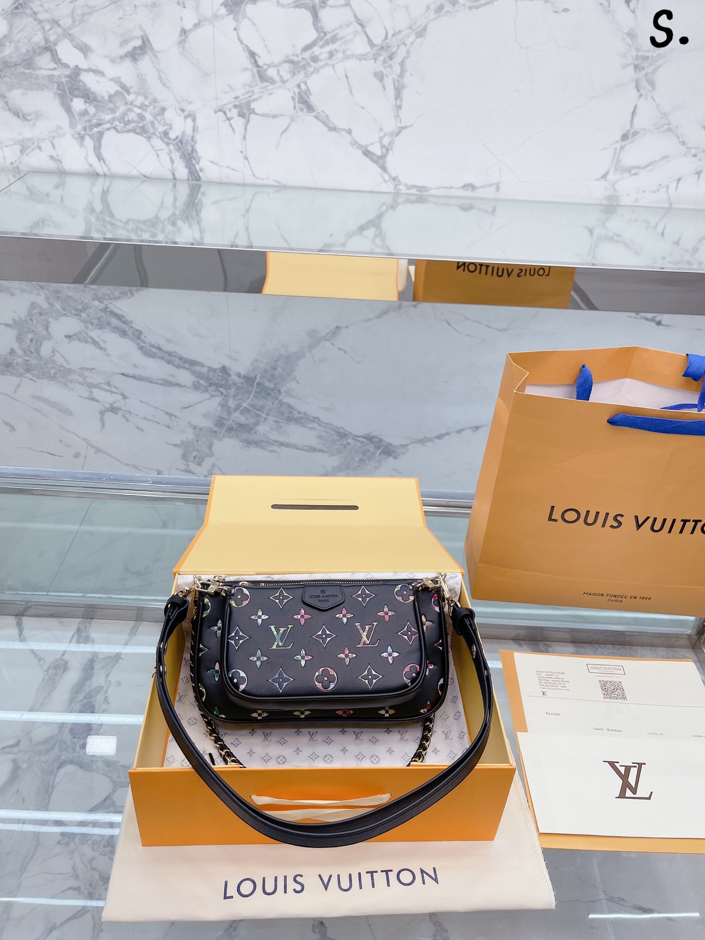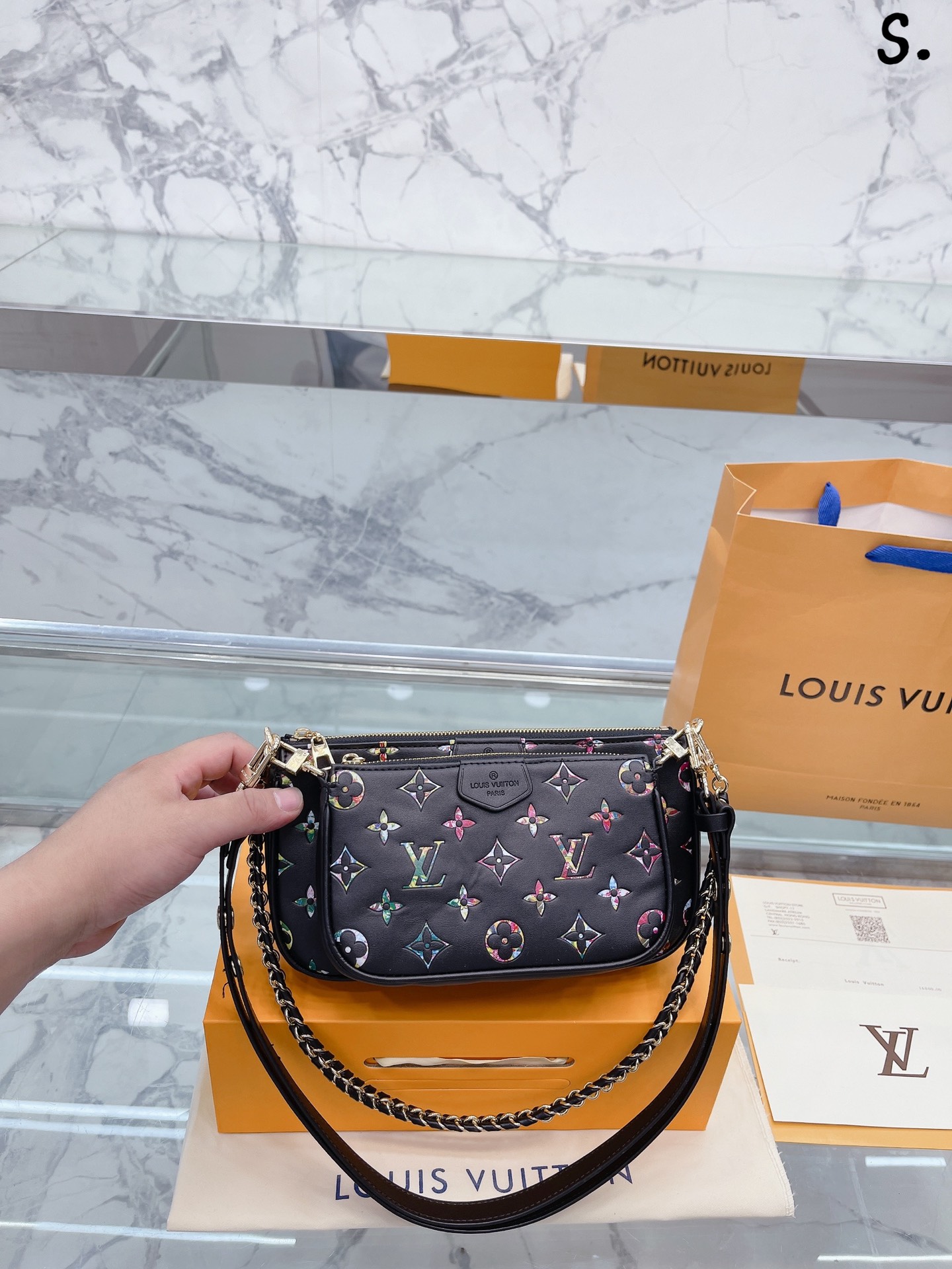 J5 喷绘 Louis Vuitton 路易威登 LV /路易威登2022女士FLICIE 可拆卸金属链条包 买一得三的好事再次发生了 这款三合一链条包的设计真是大惊喜,手机、证件、现金、钥匙口红等日常小物都通通能容纳,重点是内里的三个配色太讨喜了 价格也相当美丽 强力种草 配礼盒 尺寸24 13cm