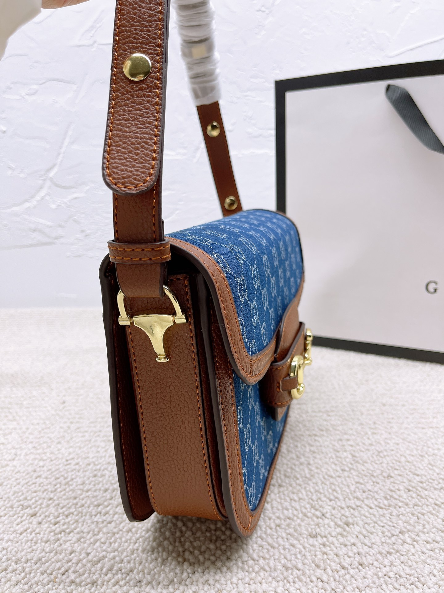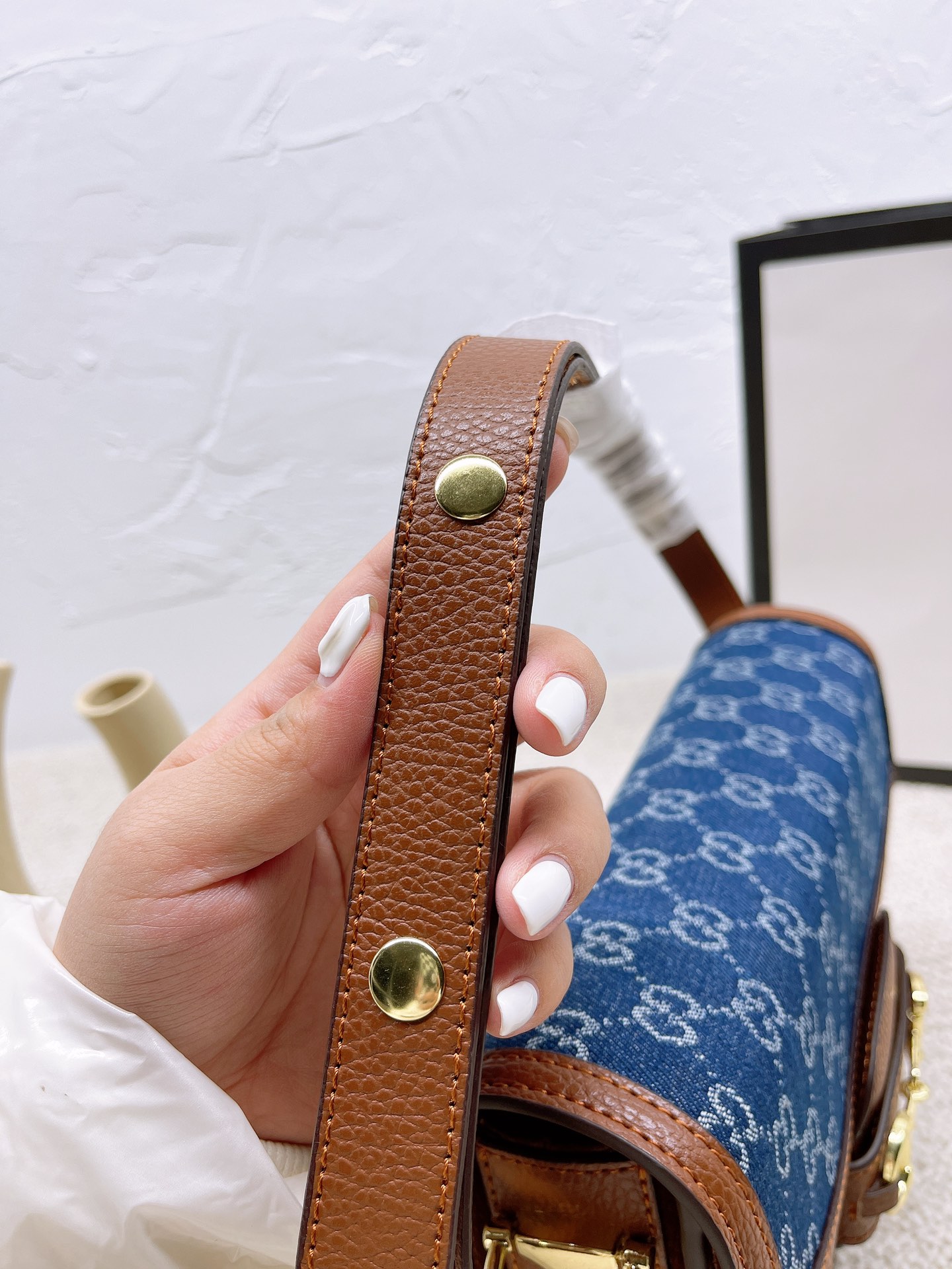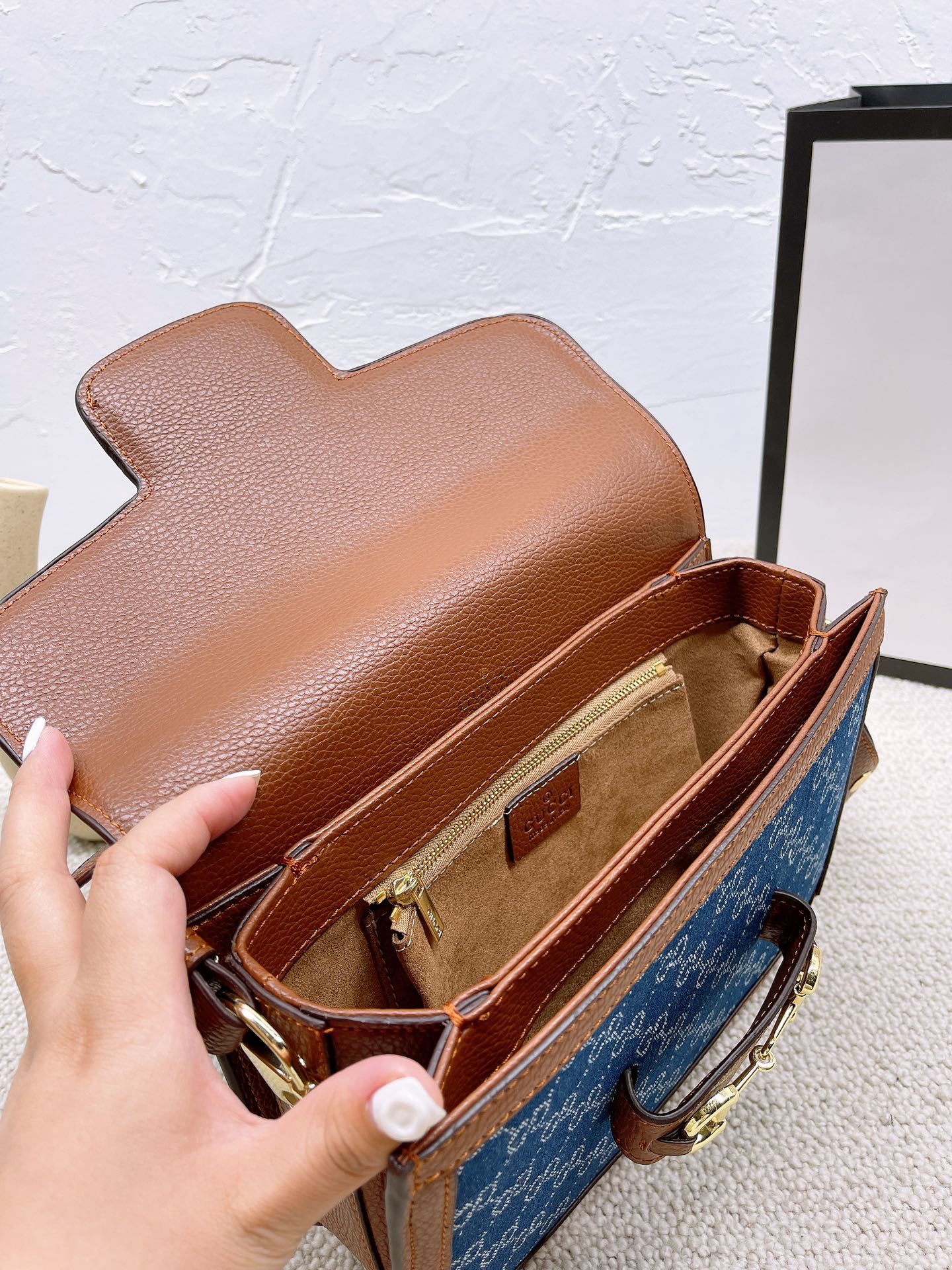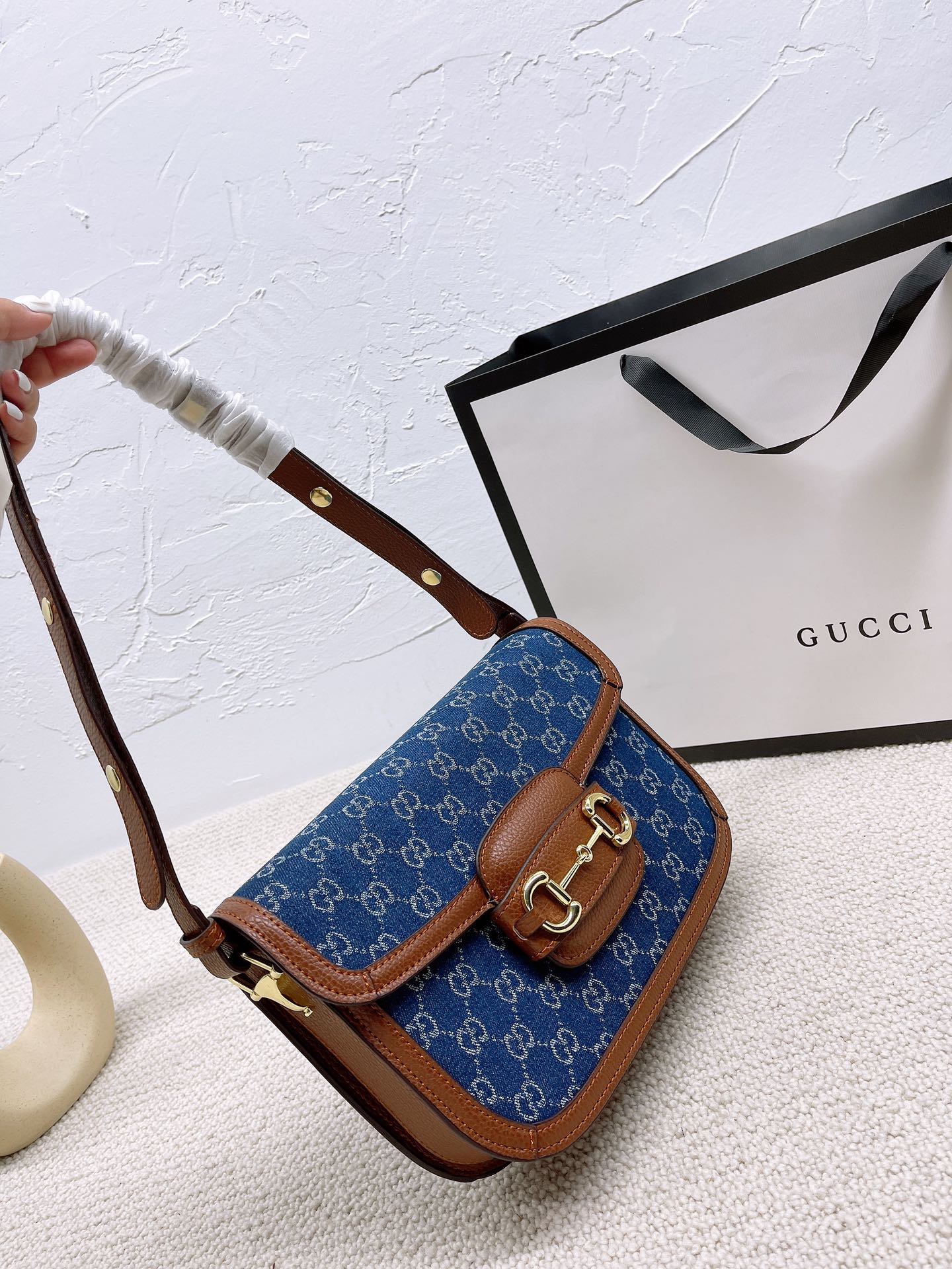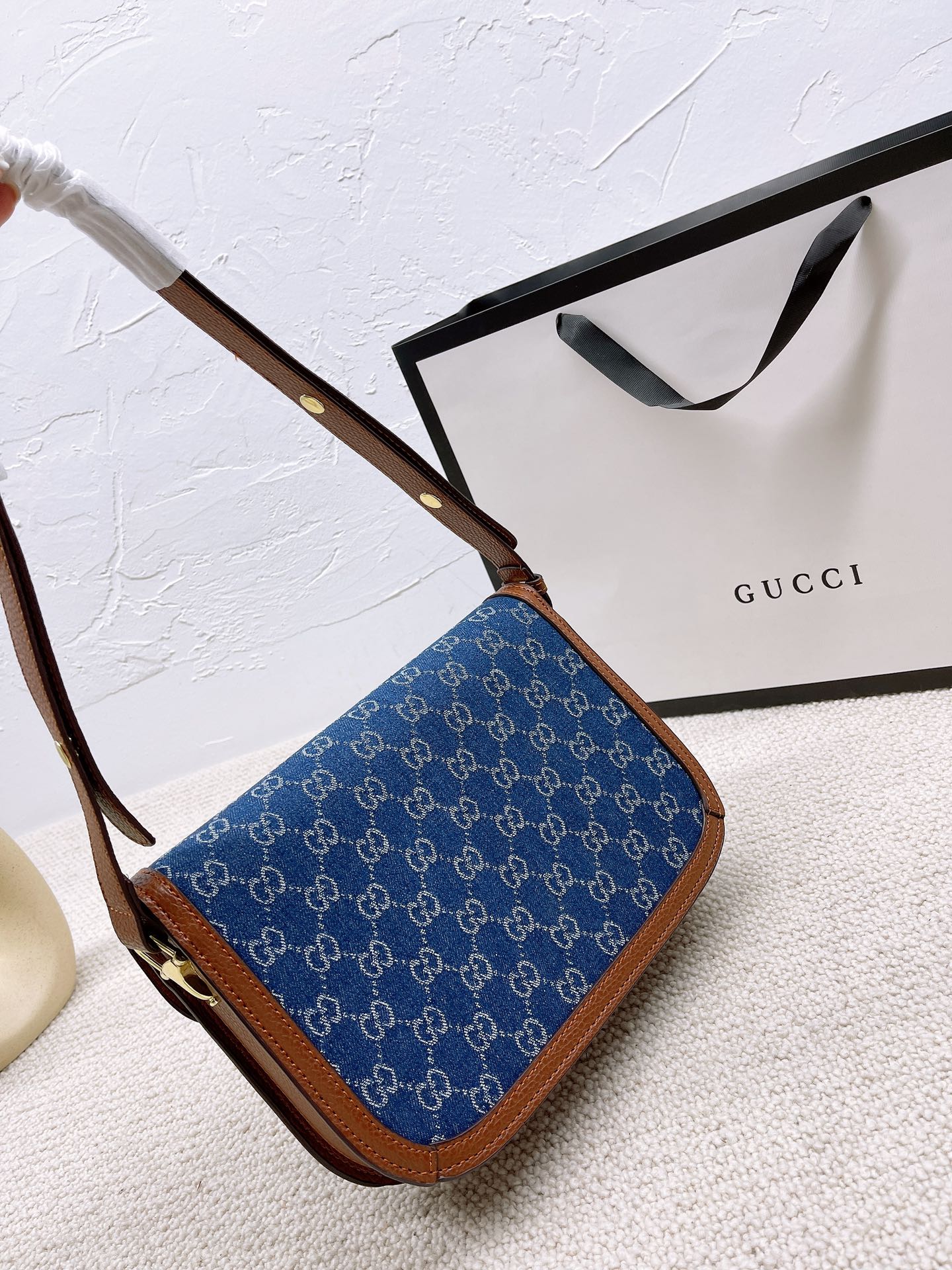 J5 配盒子 GUCCI1955马鞍包 单肩跨在腋下使整个look简约又文艺 喜欢复古风的我们其实不仅是对这些带有复古感单品的留恋 更多的是当看到复古元素和现代元素相融合时对经典的致敬 背上她秒变森系文艺少女,这款老花马鞍包美得不可言语! 1955时尚与实用兼备,包型硬挺,而且不容易变形,包括自重很轻,容量非常可观~尺寸: 26*20cm