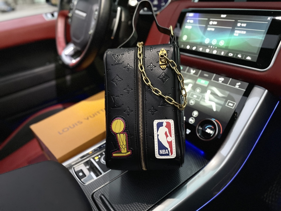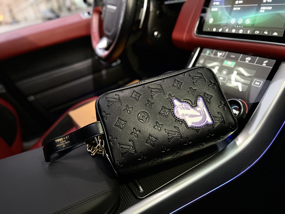 J5 高端货 “Louis Vuitton”洗漱袋 M58515。 Louis Vuitton 路易威登 LV XNBA CLOAKROOM DOKIT 手拿包 Cloakroom DoKit 手袋出自 Louis Vuitton 路易威登 LV xNBA SEASON 2 胶囊系列,以 Monogram 压纹皮革的印花和贴饰展现联赛总冠军夹克的灵感启发。可调节皮革腕带亦可悬挂于挂钩。15 x 24 x 15 厘米 配:礼盒。p205