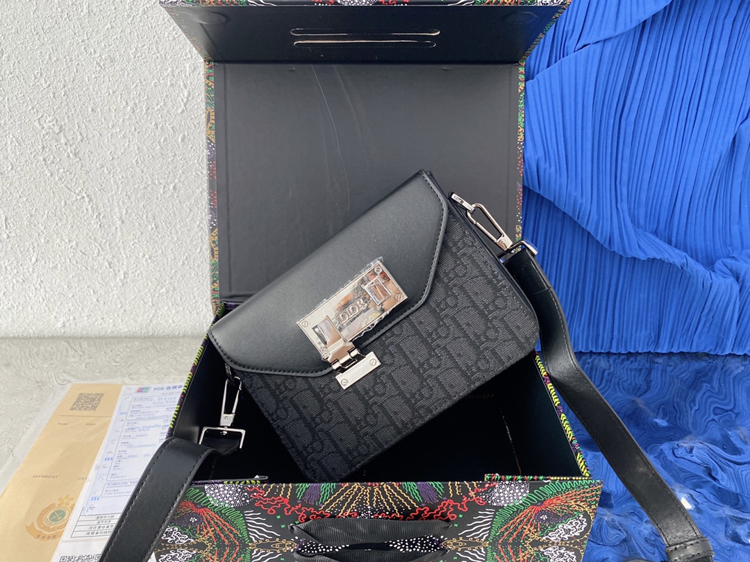 J5 Dior 迪奥 Lock 刺绣针织翻盖相机包 小方包 男女通用斜挎包 单肩包 采用精湛镶嵌细工,经典百搭 实物拍摄 原厂原版面料 1LX 配送小票防尘袋 礼盒 20 x 15 cm。