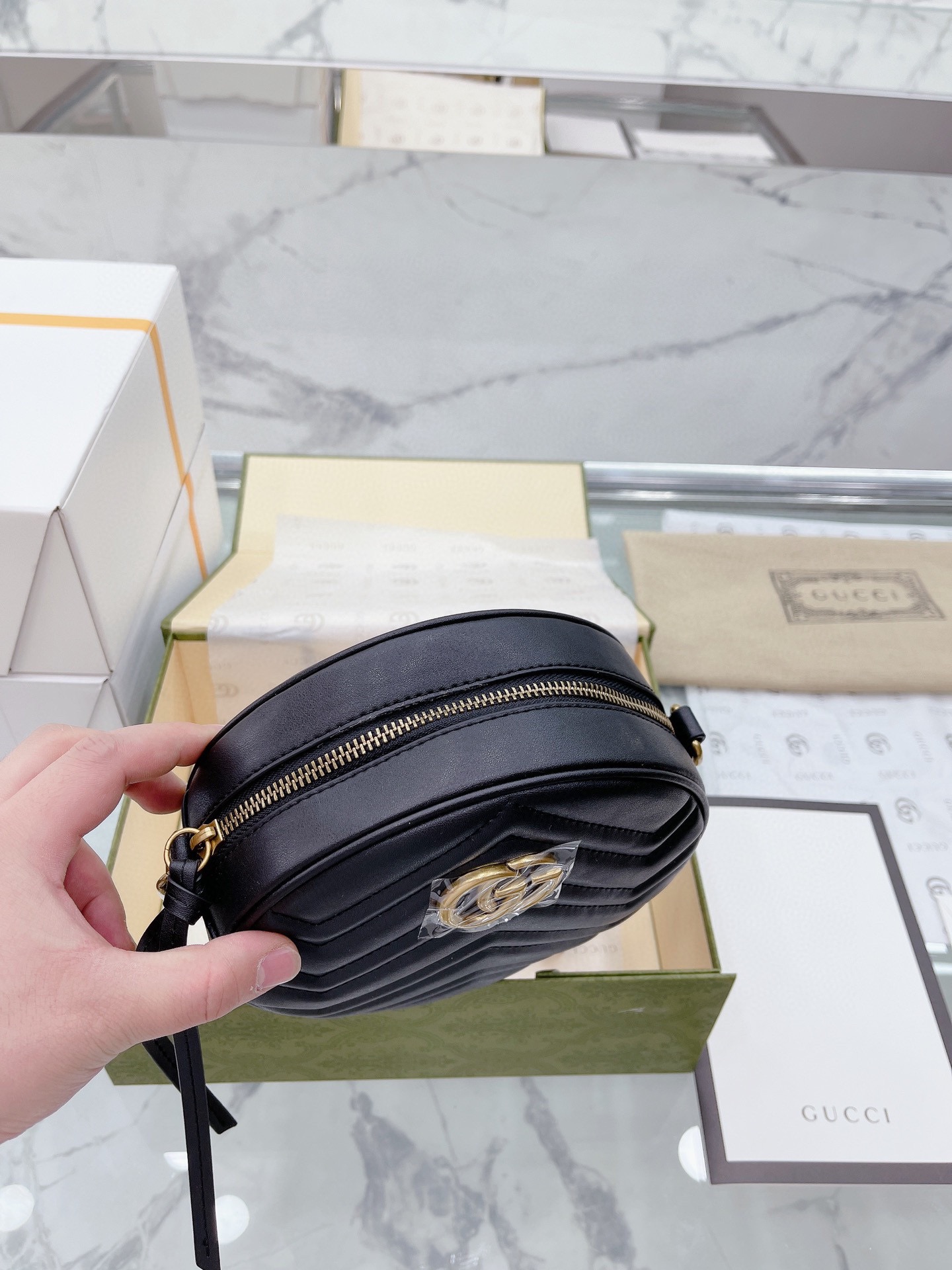 J5 Gucci圆饼包marmont系列小圆包 说实话我很喜欢这款包包,简约复古大气,很欣慰GUCCI经过了两年的大红大紫以后,最终又回归到最本真的设计中来。这样的包包最是经典,不会过时, 古奇 Gucci 圆饼包 尺寸:18cm
