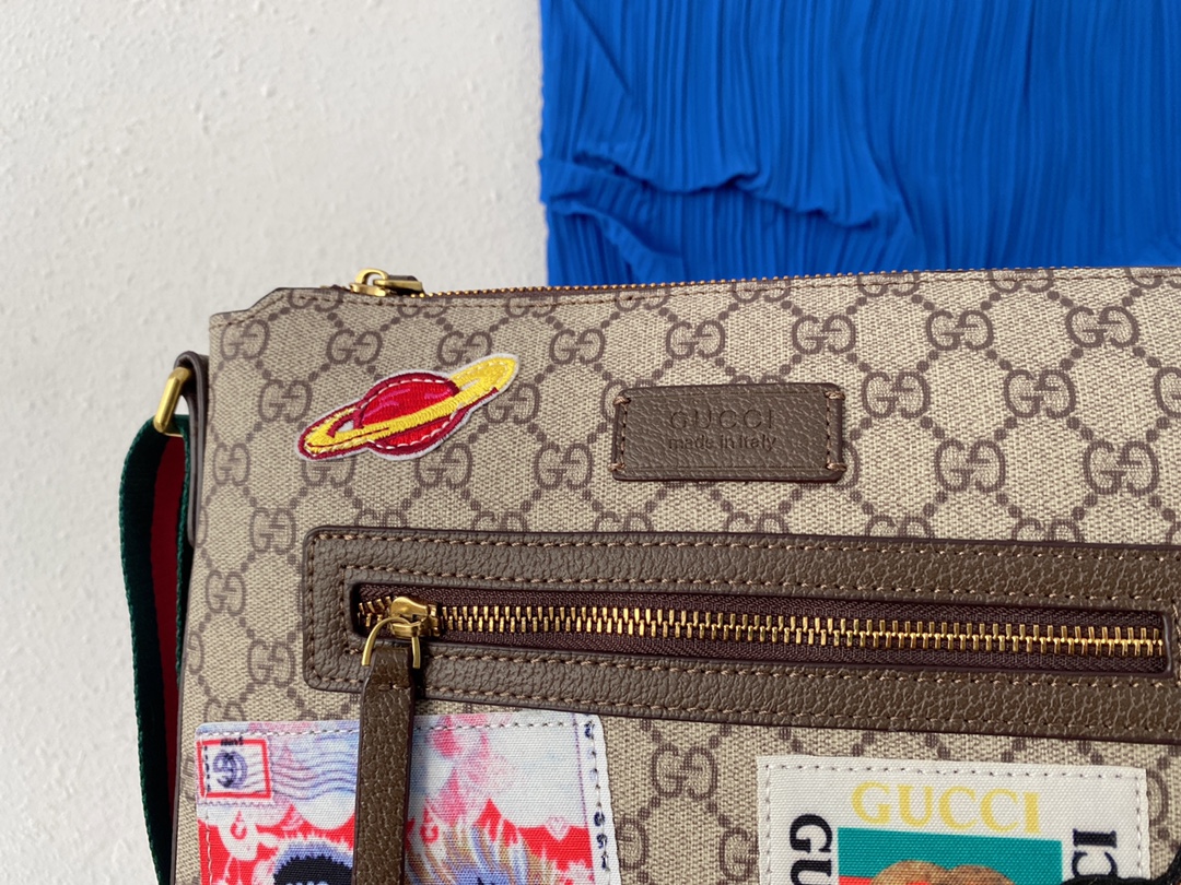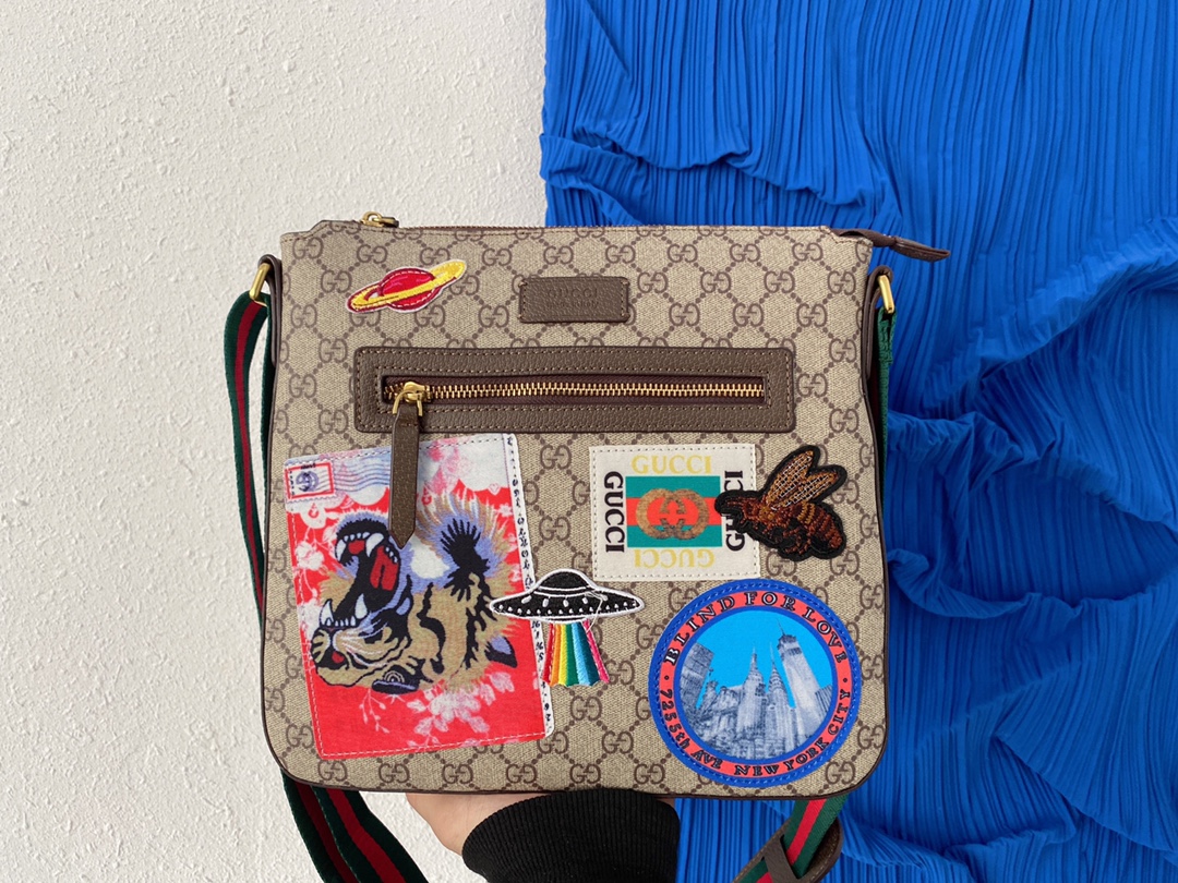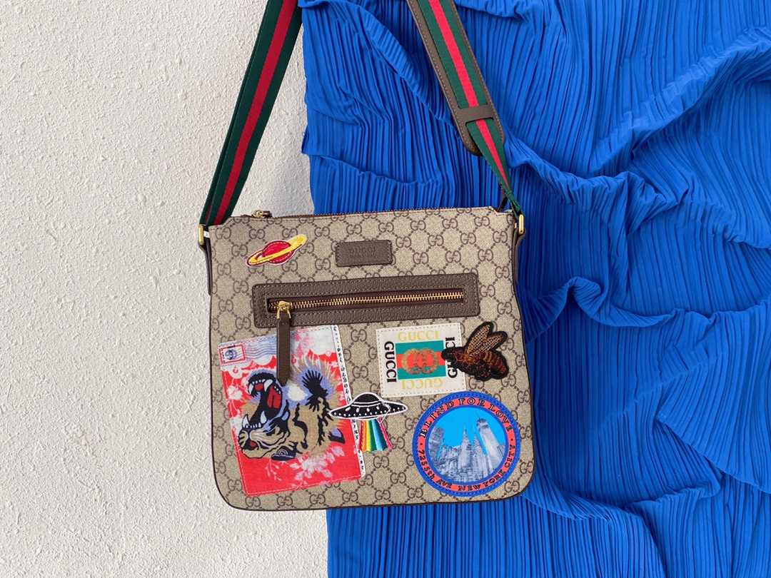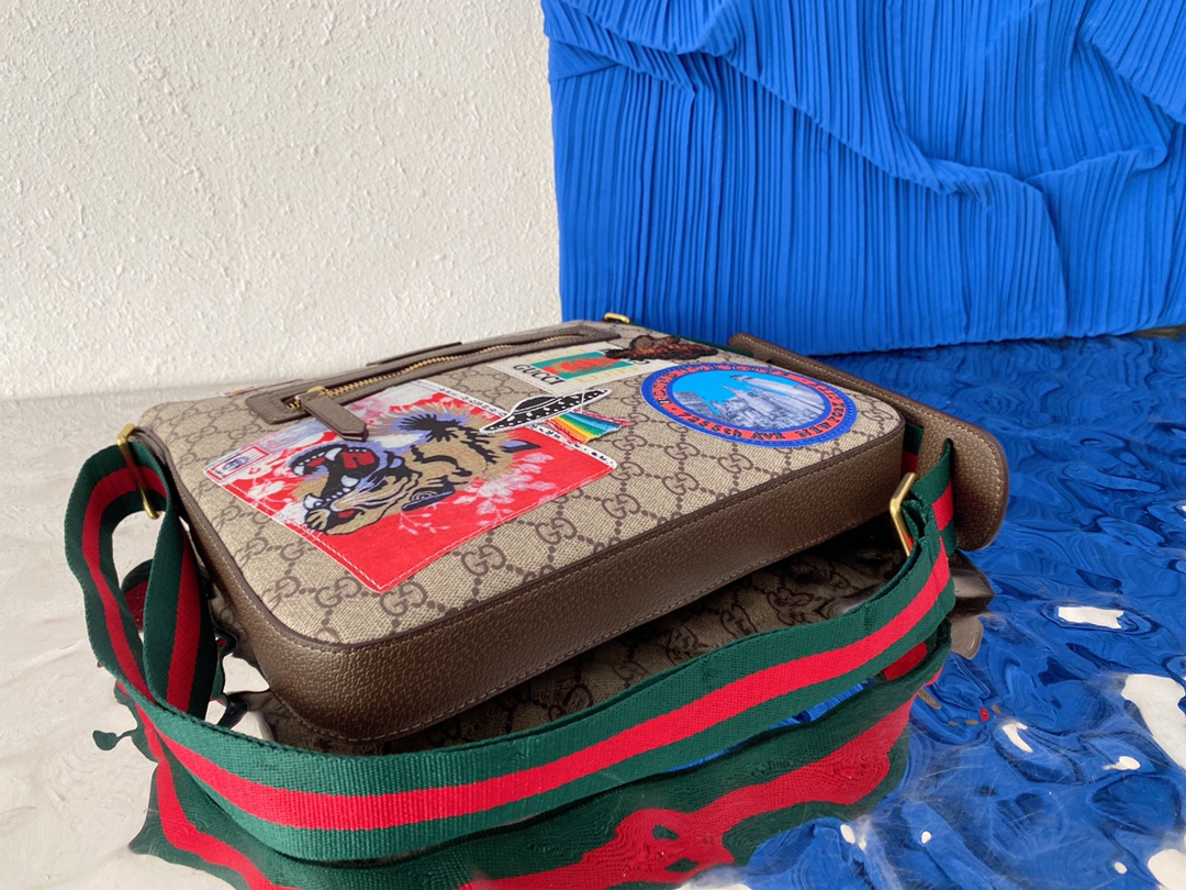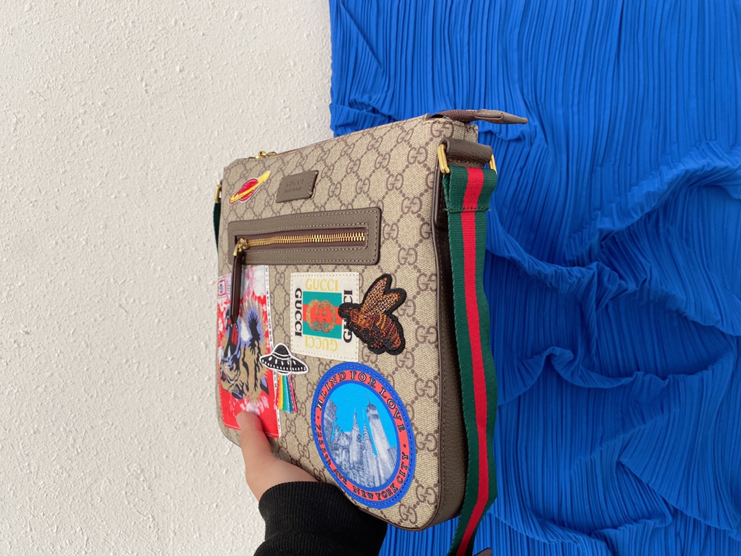J5 Gucci 古奇 GG Su刺绣邮差包 单肩斜挎包 男士背包 经典Logo搭配原厂工艺材质 休闲百搭 采用精湛镶嵌细工,实物拍摄 原厂原版面料 配送小票防尘袋 29 x 27 cm。
