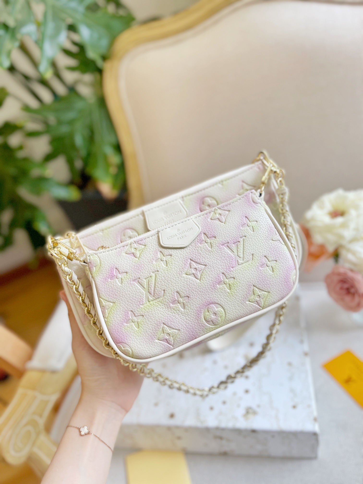 J5 Louis Vuitton 路易威登 LV 三件套Multi Accessoires,这两年一直流行的复古风潮,这回再度刮回了经典Monogram上面,丰富的配件赋予了包包无穷的背法,高级变色皮,高级感十足,冬天的话也比较百搭,强烈推荐 尺寸:大24*13cm 中18*11cm 小9*9cm