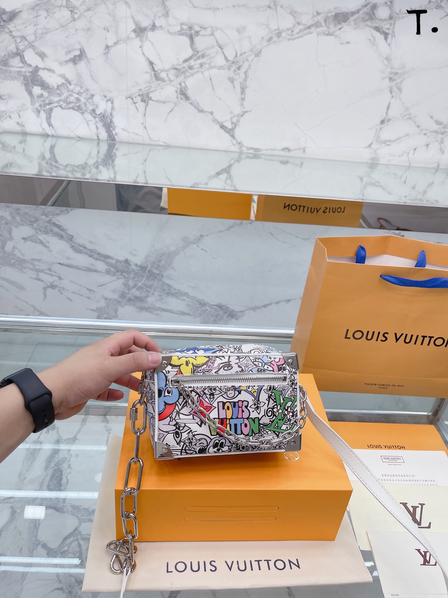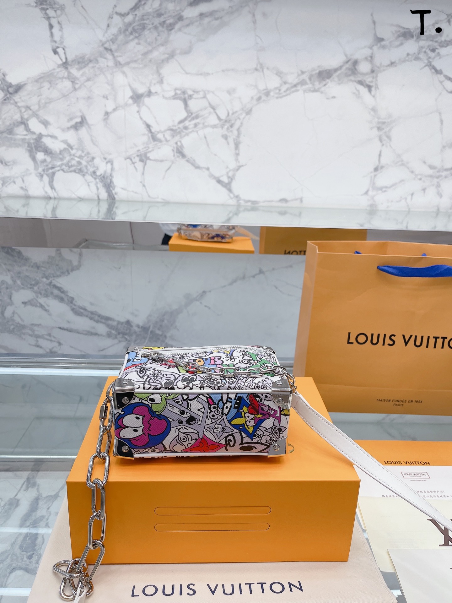 J5 Louis Vuitton 路易威登 LV 小箱子 近几年 Louis Vuitton 路易威登 LV 的脑洞真的是越开越大,20ss 设计独特而经典 方正小巧的独特造型,搭配各种复古的颜色和装饰,绝对是这几年 Louis Vuitton 路易威登 LV 最出彩的设计之一。高端定制版 横晃专柜无压力~配折叠盒 尺寸 20 13cm