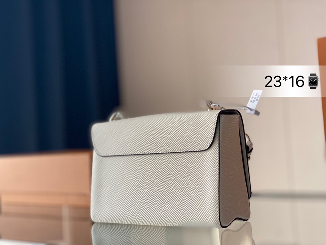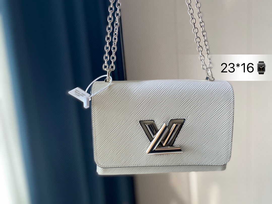 J5 Louis Vuitton 路易威登 LV 最新最火款Twist Denim出货了 Nicolas Ghesquire 为 2022年春夏季别出新意,呈现新古典 Twist 手袋。手工喷绘造就聚焦设计:翻盖的超值 明快活泼,与包身的波普艺术黑白条纹对比鲜明。长链条自由滑动,无论肩背斜挎或日夜场合,随心而变。 外型小巧,别致的弧形底座增加了手袋容量可调节链条适合斜跨或优雅的肩背 尺寸:23*16cm 专柜限量款