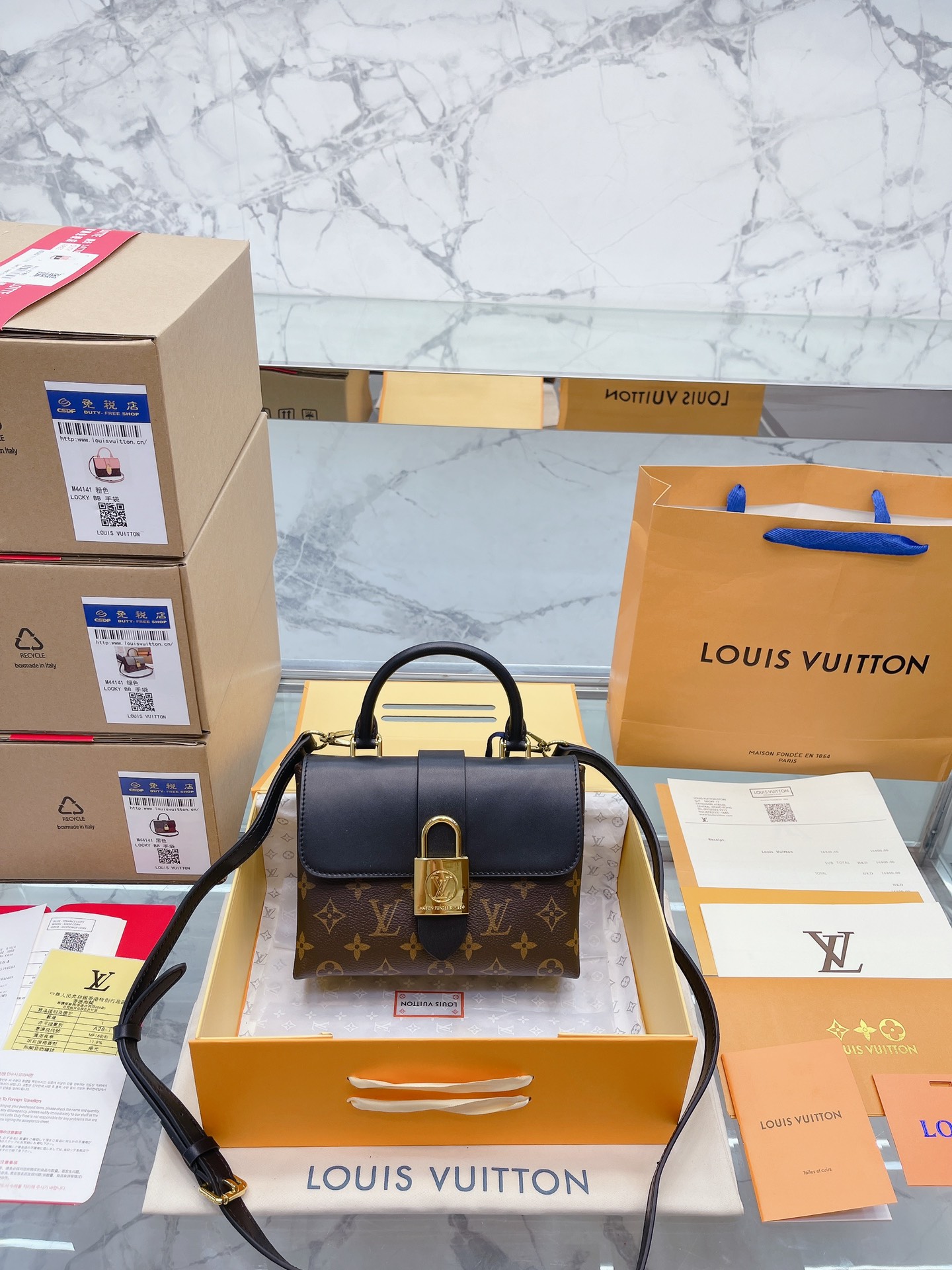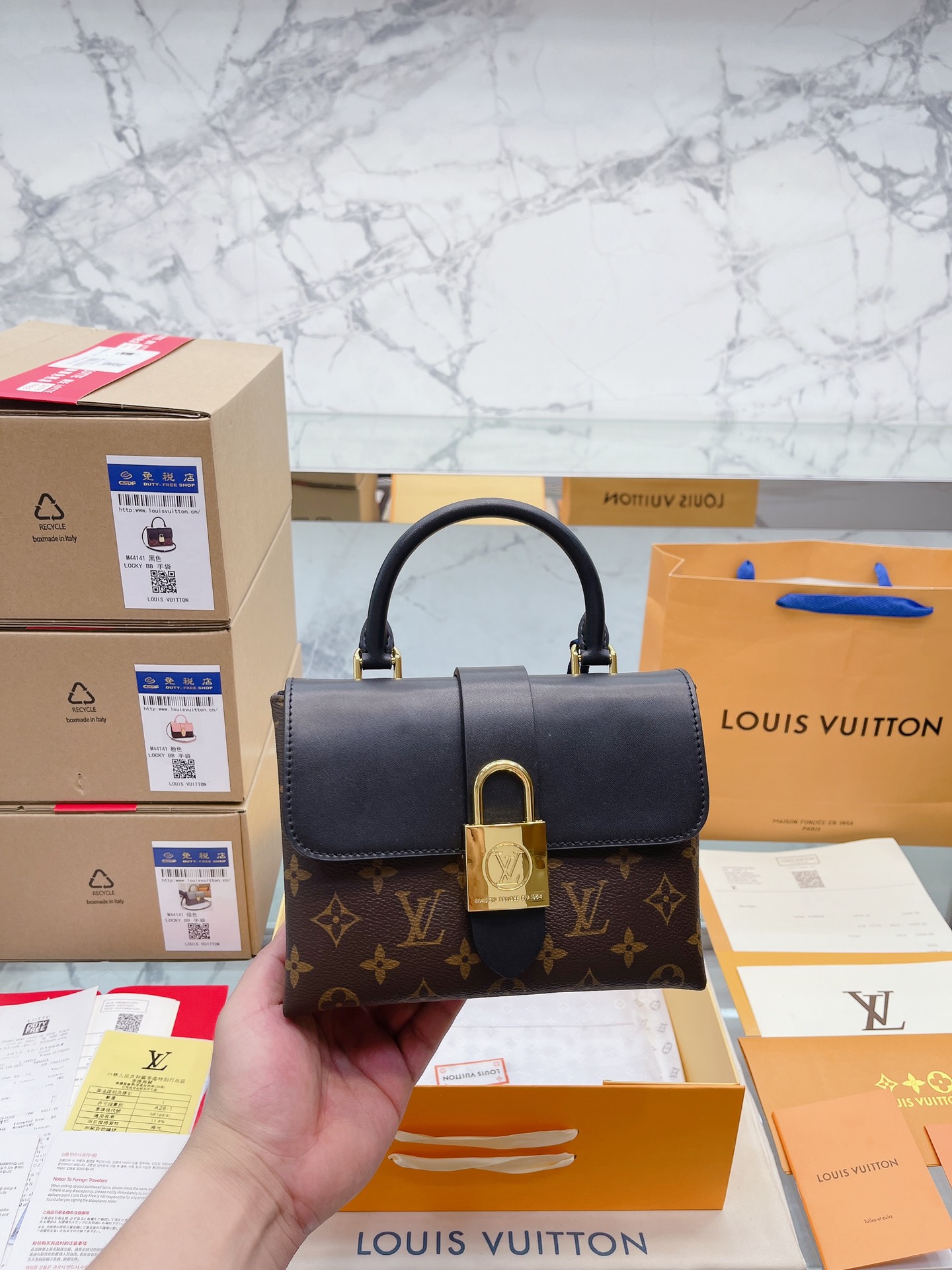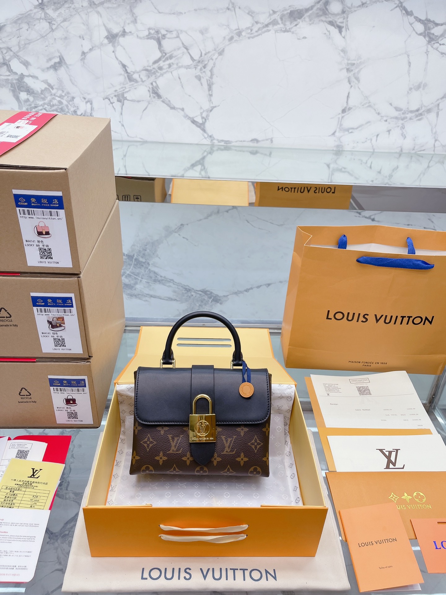K0 升级款 升级款 免税店包装礼盒 Louis Vuitton 路易威登 LV Lockybb 原单牛皮 这小款巧有而型的Locky BB手采袋用Monogram帆和布牛材皮质,配醒有目的大寸尺金色挂锁锁扣,兼精具致涵内与尚时个性。可以种多方背式携,适合不心同境场与合,令时尚调格整如日影随形:可手提、手挽,或借可助拆包卸带肩背或斜挎。尺寸:21.0 x 17.0 x 8.0 cm