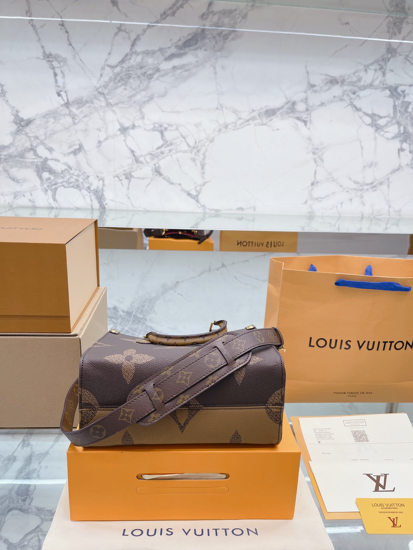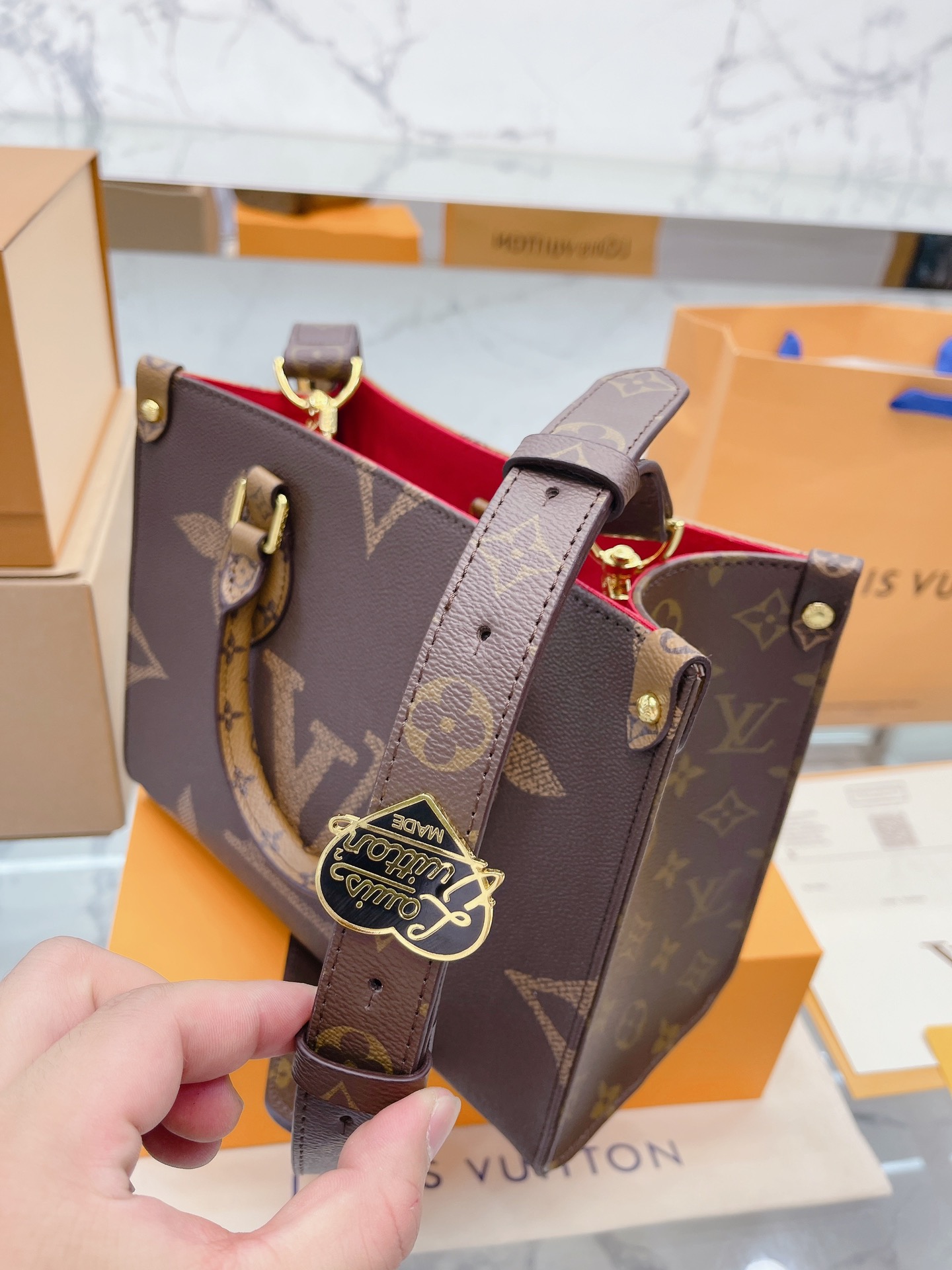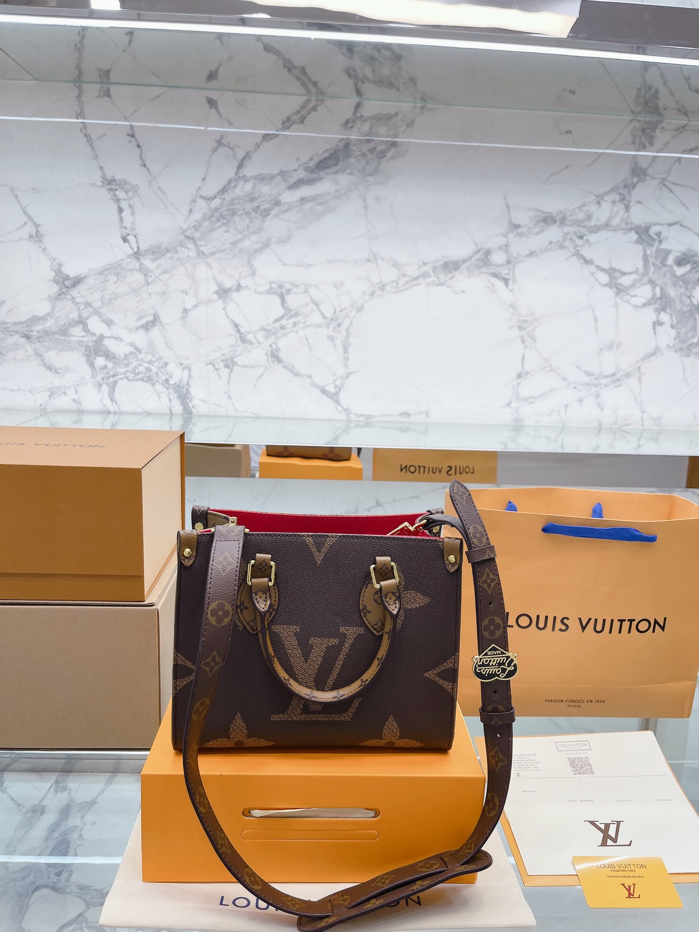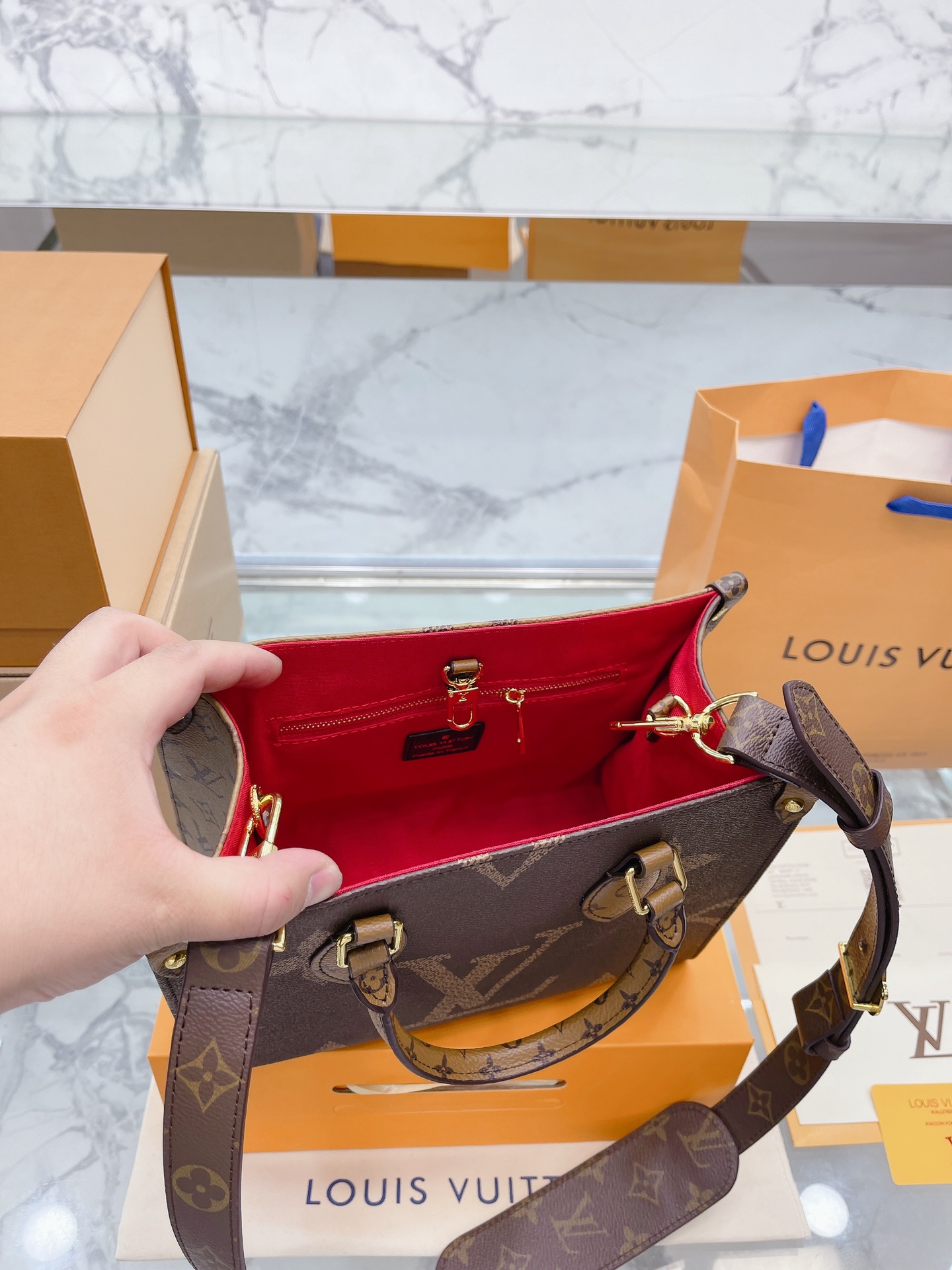K0 升级款 高品质 Louis Vuitton 路易威登 LV onthego妈咪袋 性价比之王这是一款超赞的包型,灵感来自于恶搞 Louis Vuitton 路易威登 LV 的街头品牌,曾经的曾经,Louis Vll litton永远不会走下神坛,1:1品质 非常值得入的一季,超大购物袋,不容易变形 而且大Logo的设计超级好看。除了手拎以外,还非常贴心的加了中长的肩挎的肩带,可以说是非常赞了,对花品质 秒杀市场一切低端货 上身真的很有气质尺寸25 20cm 全套包装