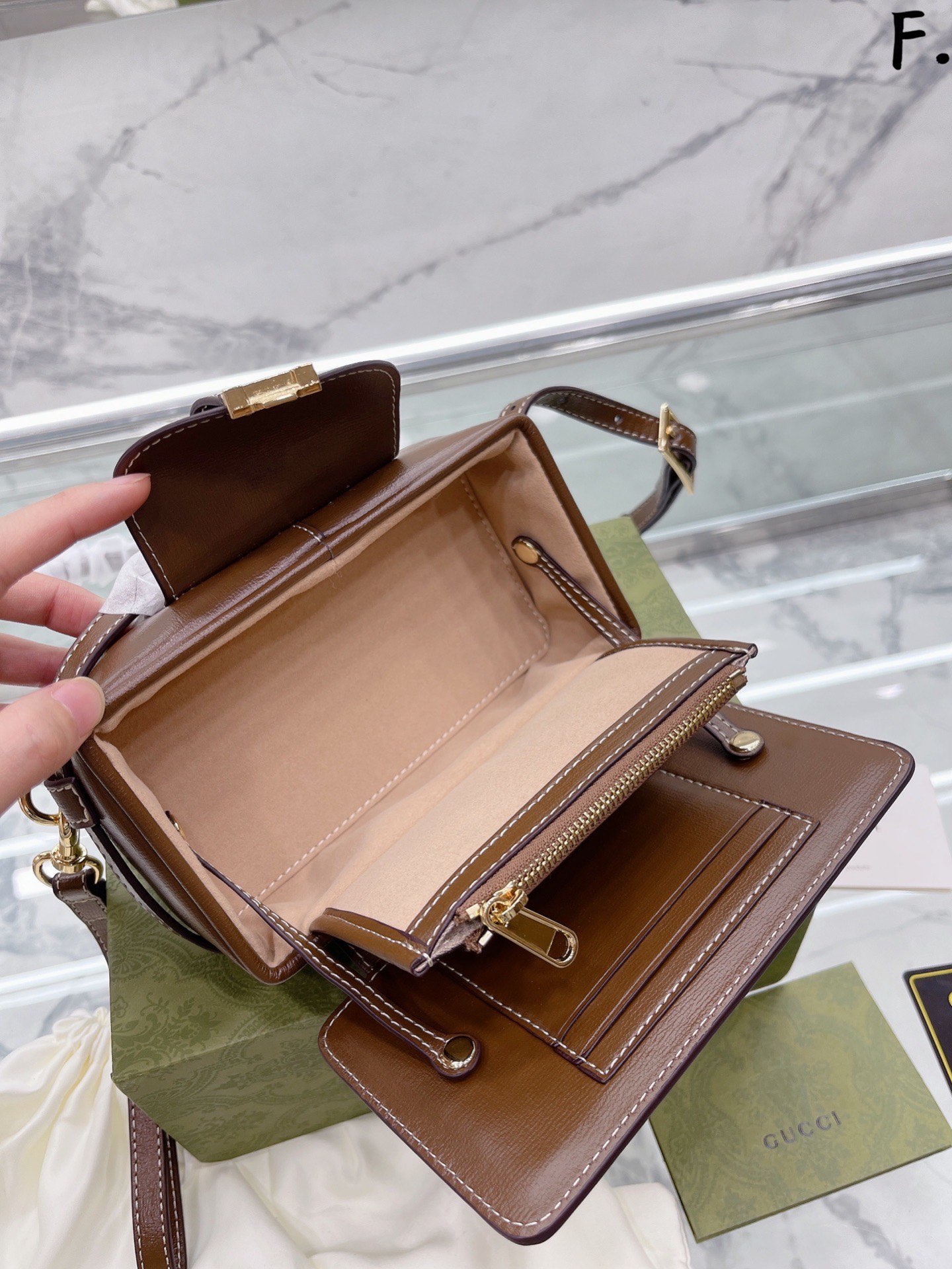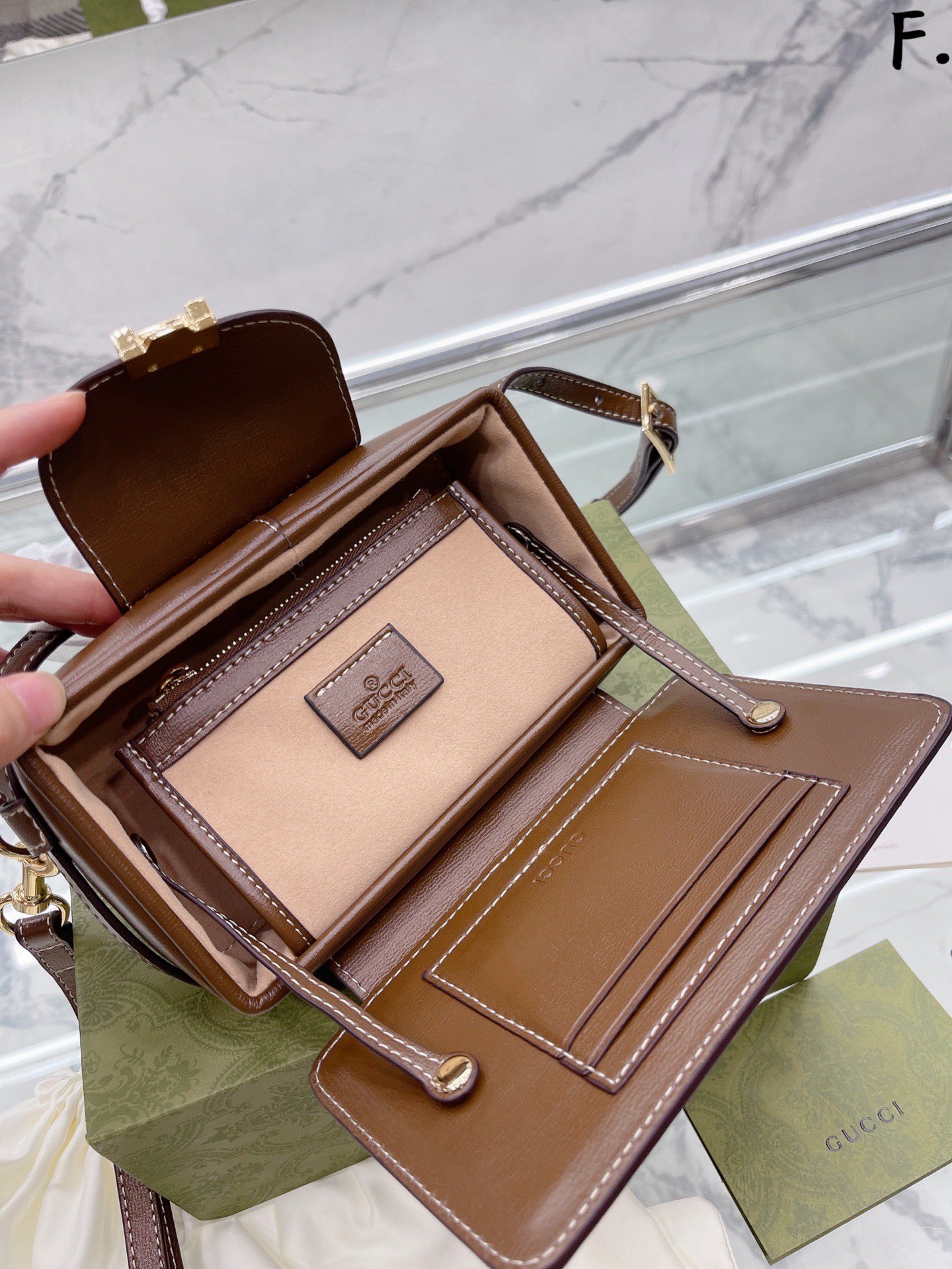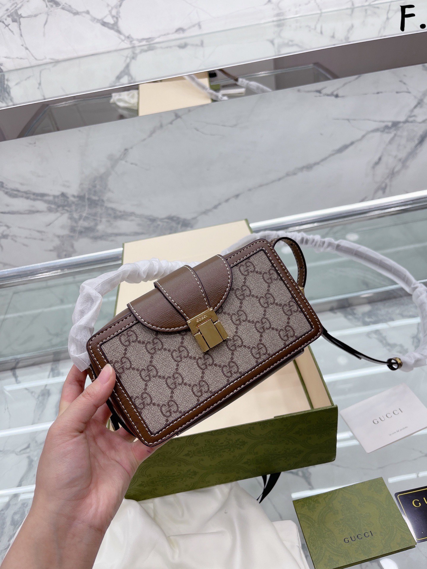 K0 原单牛皮 古驰 GG SuGucci小盒子。 来了,你们要的迷你盒子来了 1955系列的延伸,这个盒子,从里到外每一处都写着细 节二字 看着以为只是一个简单的盒子 打开后,它有两个卡位,一个零钱袋 接着就是一个非常精致的mini空间 牵引着盒子盖的是两条皮带 尺寸20 13cm