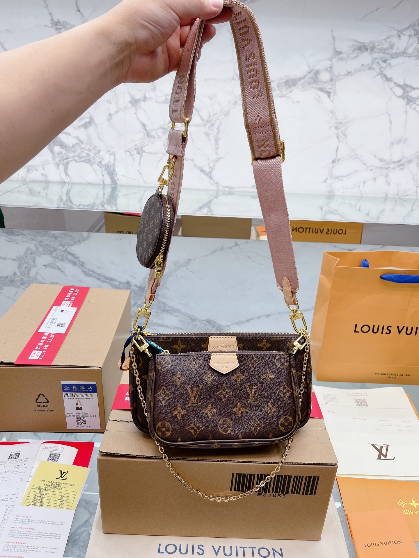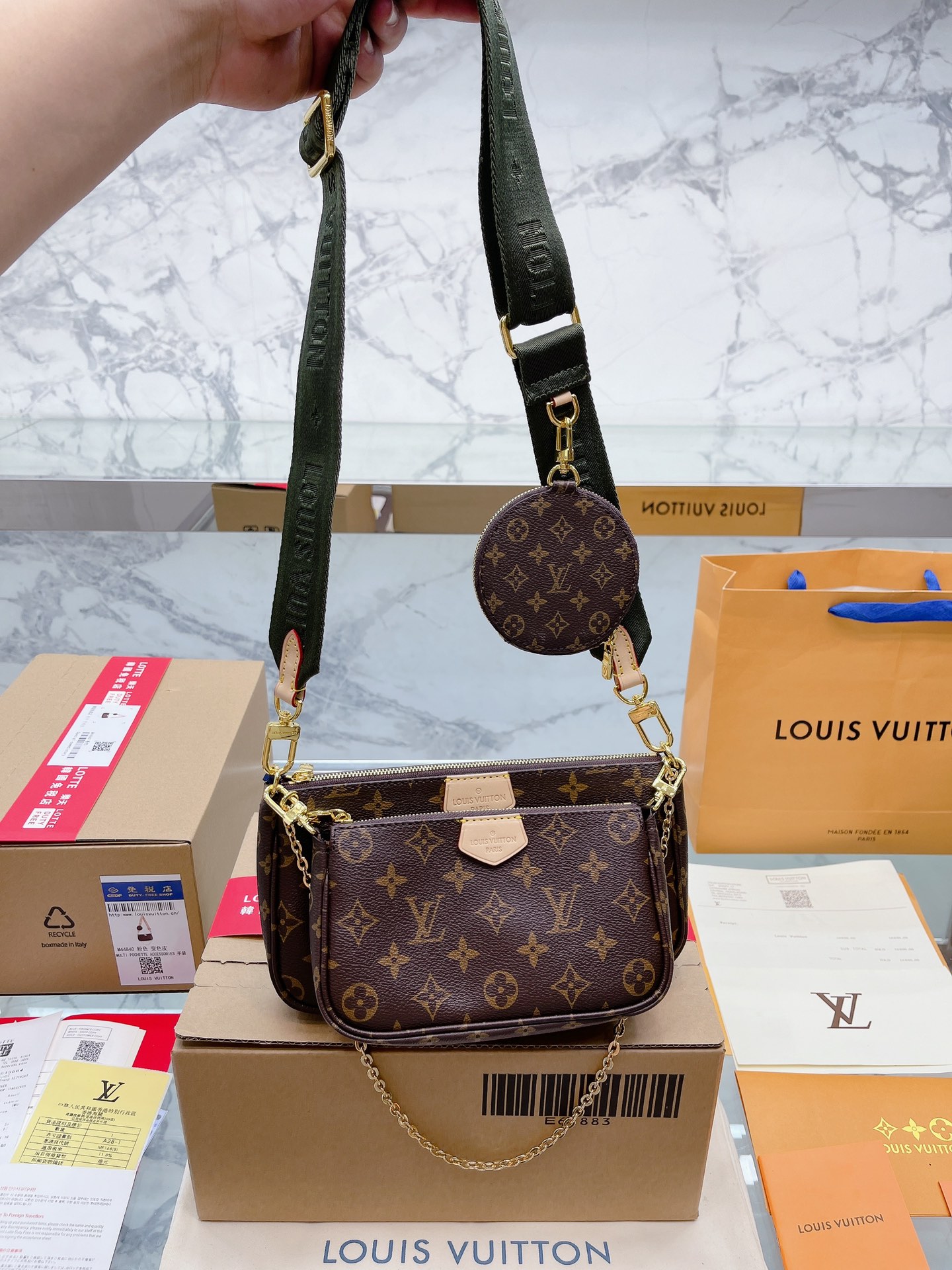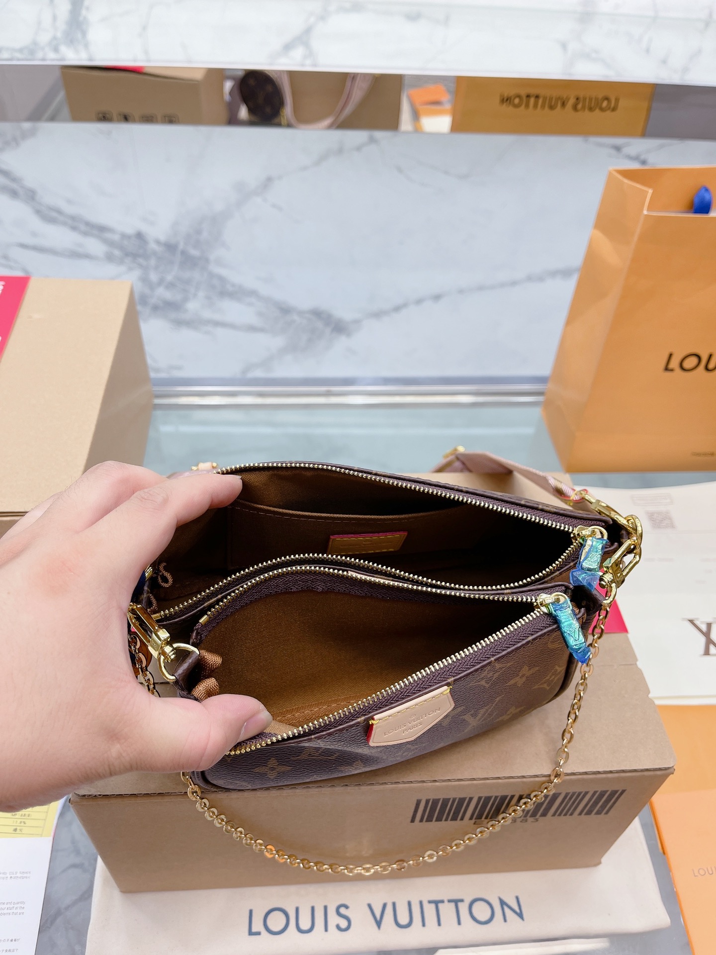 K0 复刻版 原单升级款 免税店包装礼盒 Louis Vuitton 路易威登 LV multi 专柜免税店飞机盒包装 原版高品质 Louis Vuitton 路易威登 LV 三件套麻将包 柔软的Monogram面料+纯钢五金一包四用。可当钥匙包。小容量零钱包、大容量麻将包,编织肩带还可以与其他包包搭配使用。钥匙包可以用来当配饰。秀气的链条小包可单肩可斜挎。超级实用。新颖别致尺寸:大包23*13cm 、小包18*11cm 、圆饼包10cm 配盒子