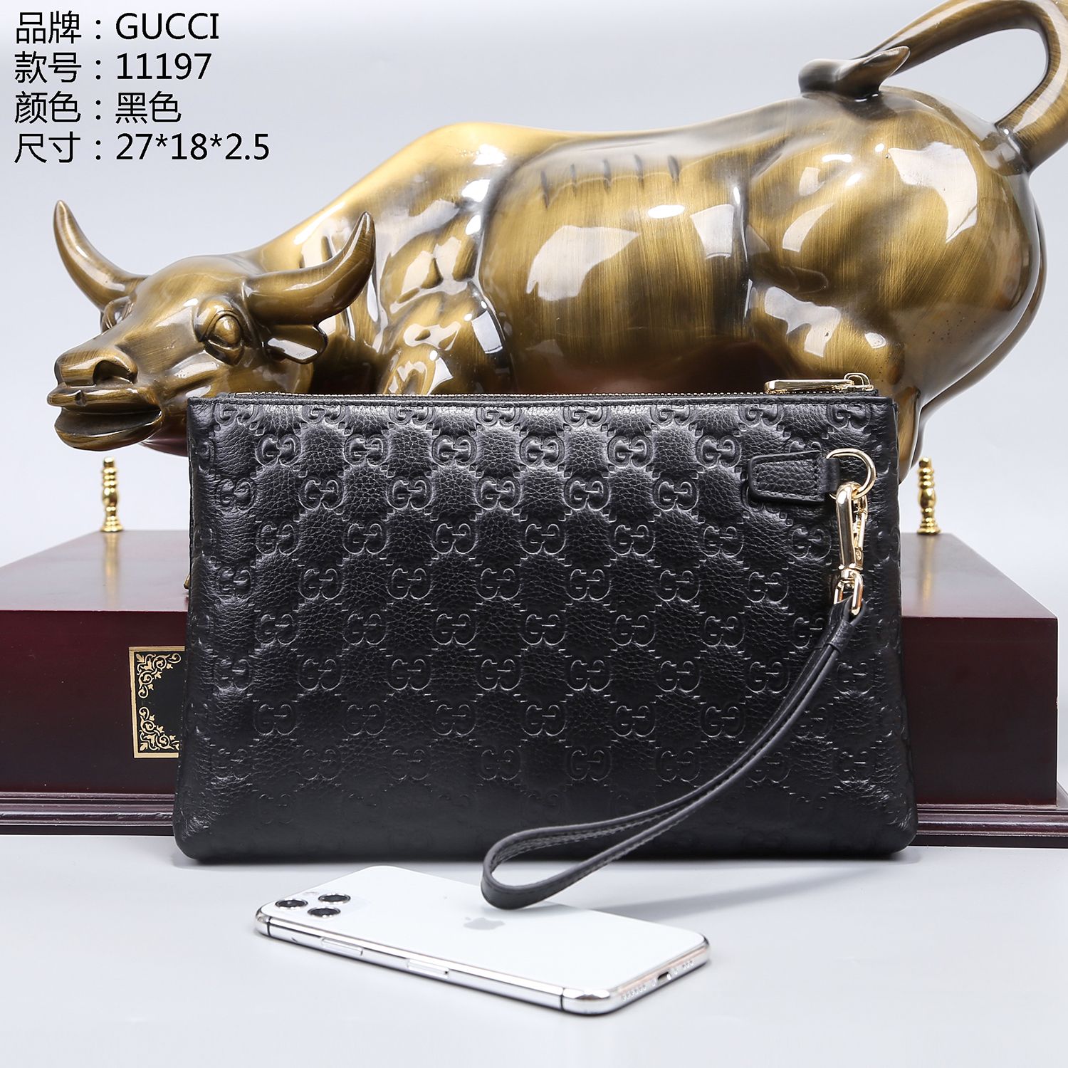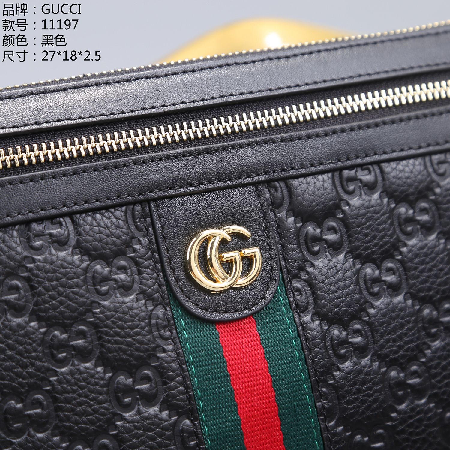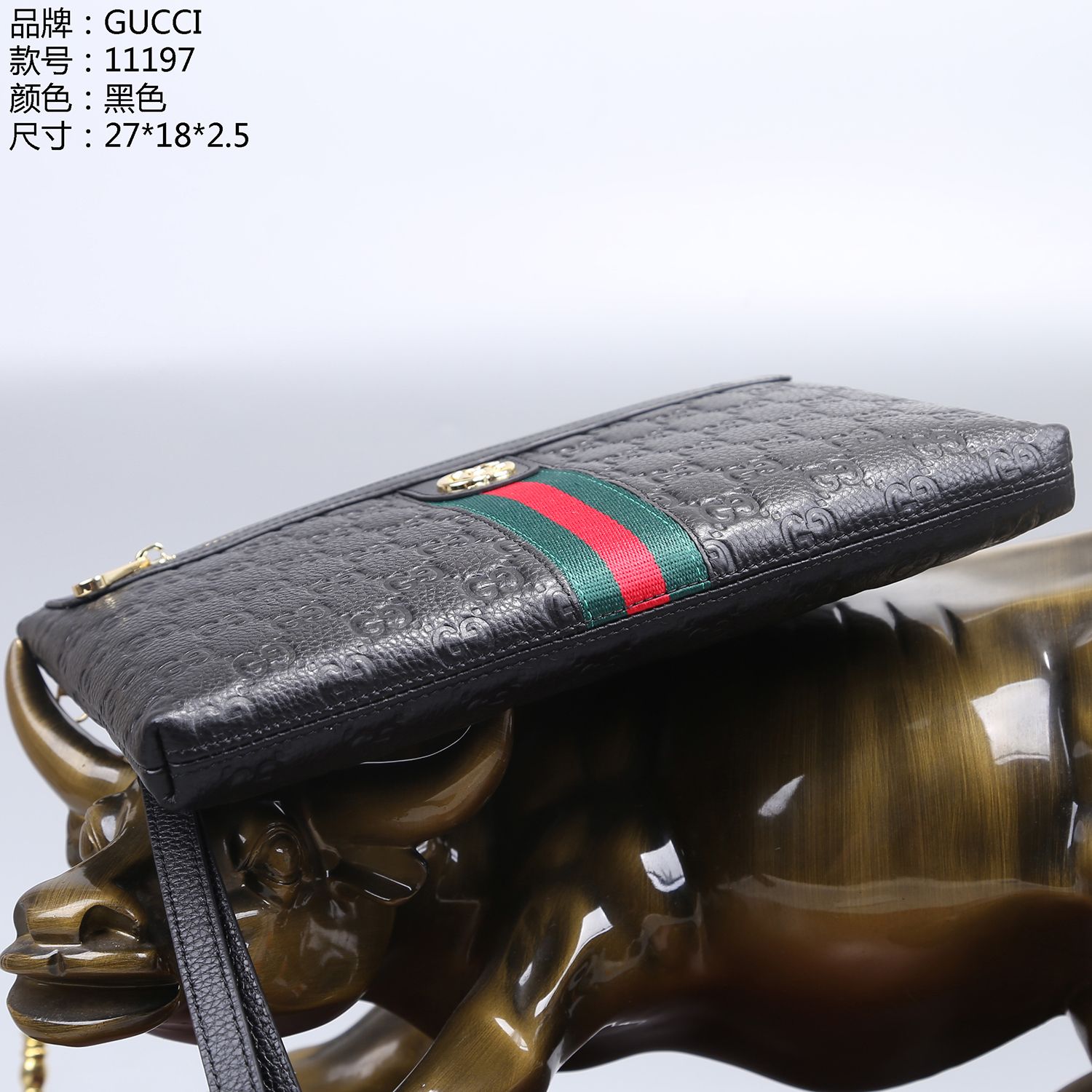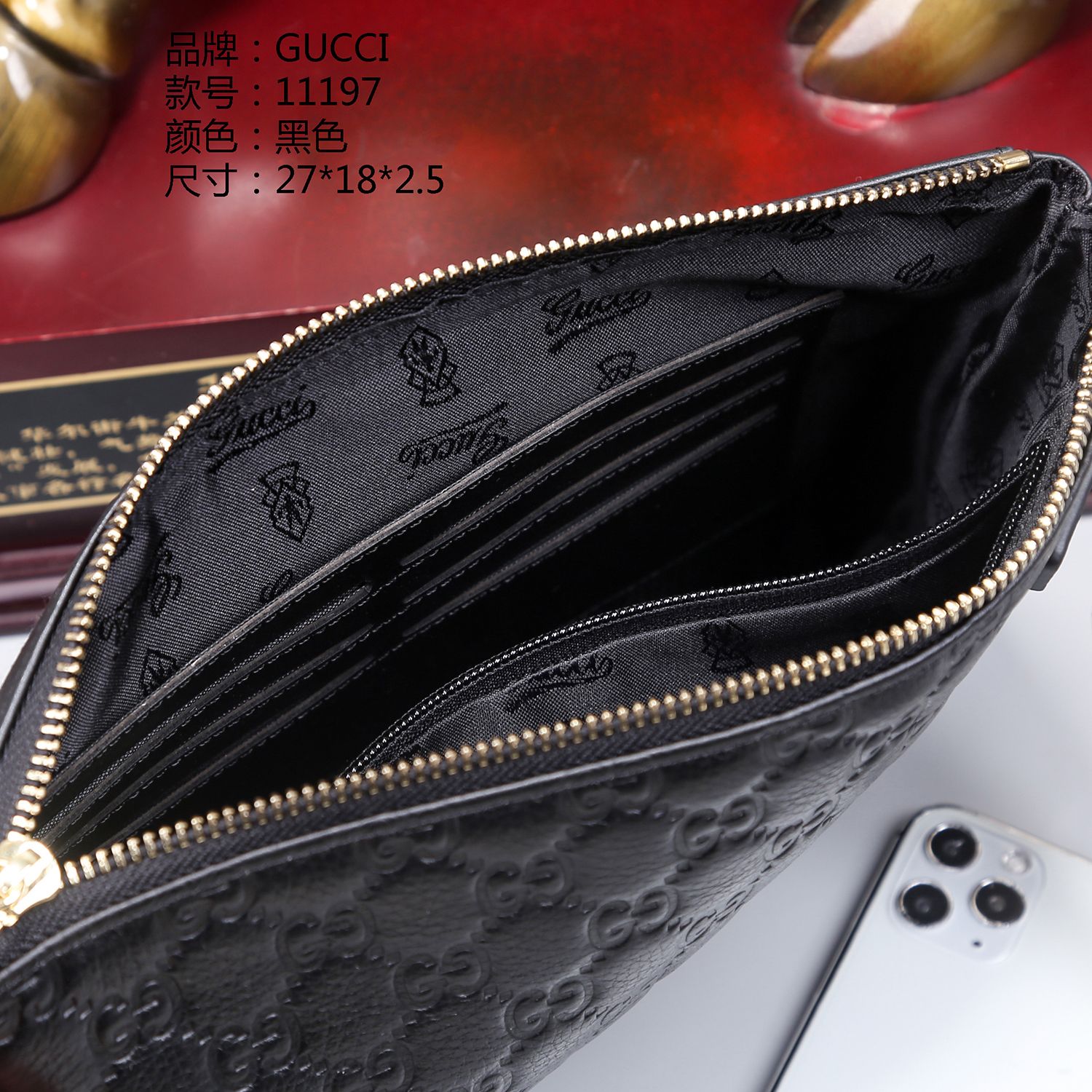 K0 首发原单配盒 品牌:GUCCI手拿包 型号:11197 颜色:黑色 尺寸:27x18x3 材质:原单专柜复制.釆用原版材质材料配原单皮手工+工艺制作严格执行,追逐时尚领域。精致的五金搭配。车工走线整齐均匀。出差.社交. 赴宴. 必备神器。官网同款,纯头层牛皮,手工精细,专用五金配件,性价比高,尺寸29X19