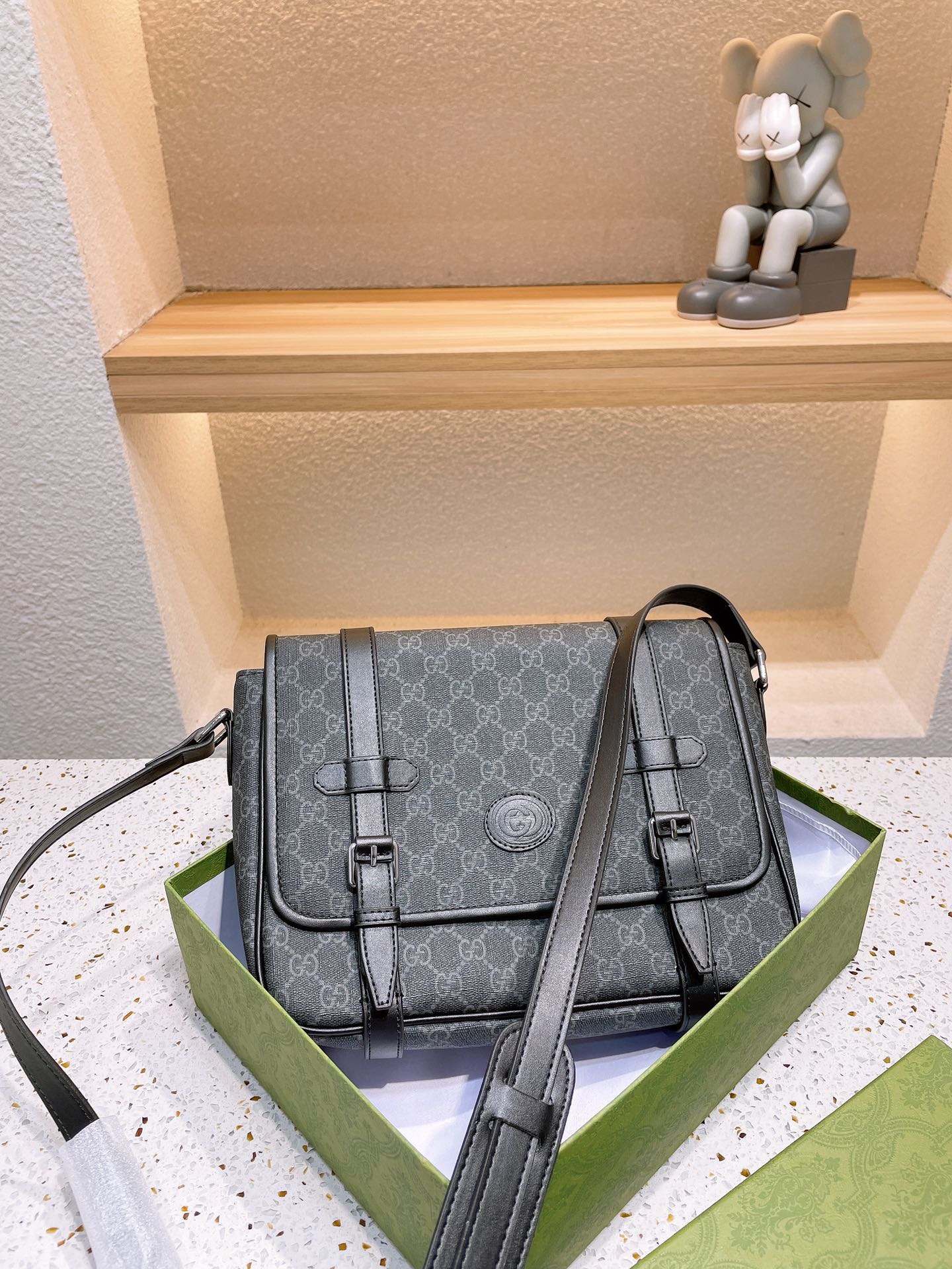 K0 高端货 “GUCCI 古奇 Gucci ”带盖单肩包 进口原厂头层纳帕小牛皮面料 超高清五金logo标志、专用里内里。 超顺滑拉链、油边超平滑、 做工精致每个细节到位男人必备款。 i83901规格30.8.20