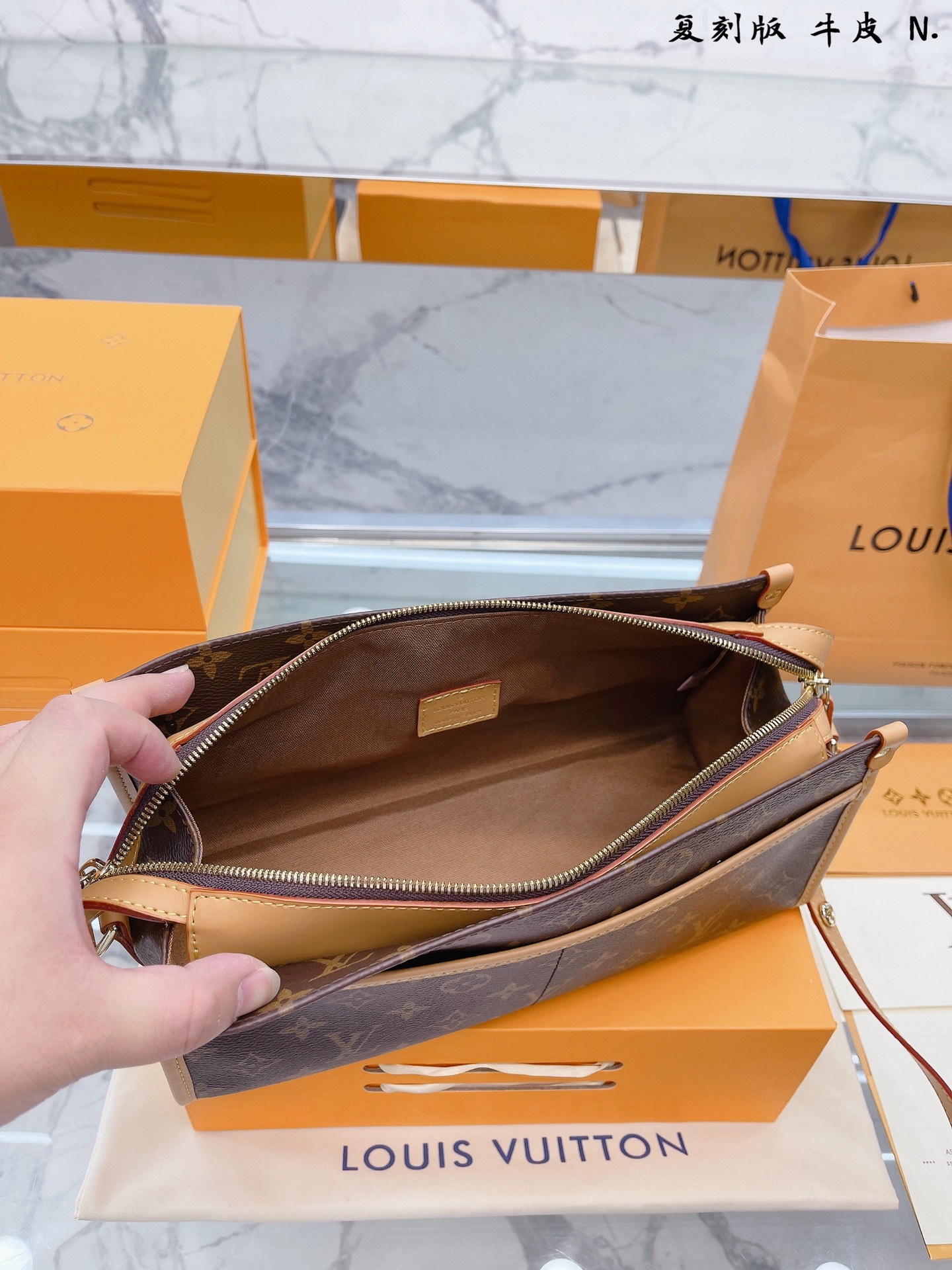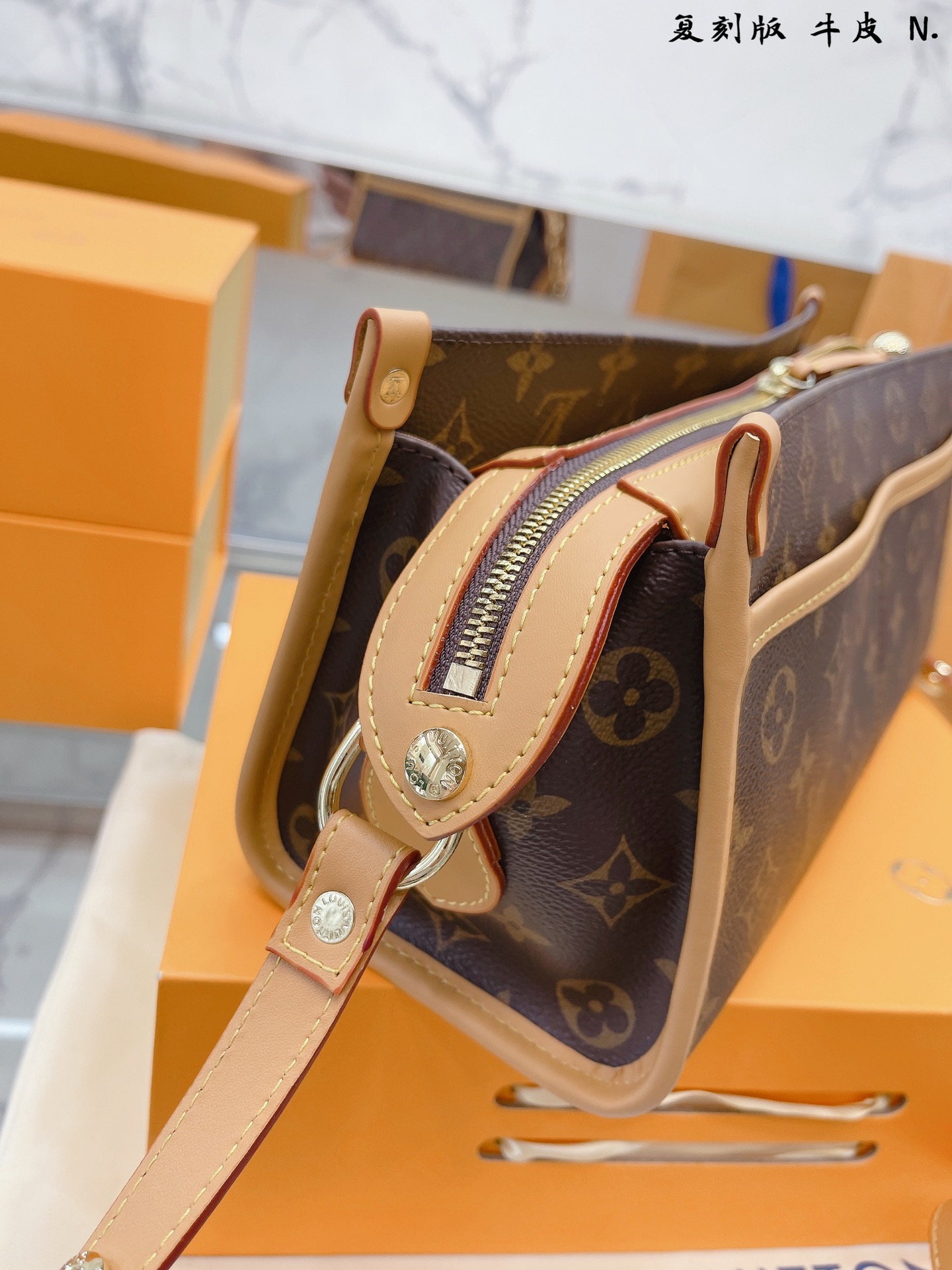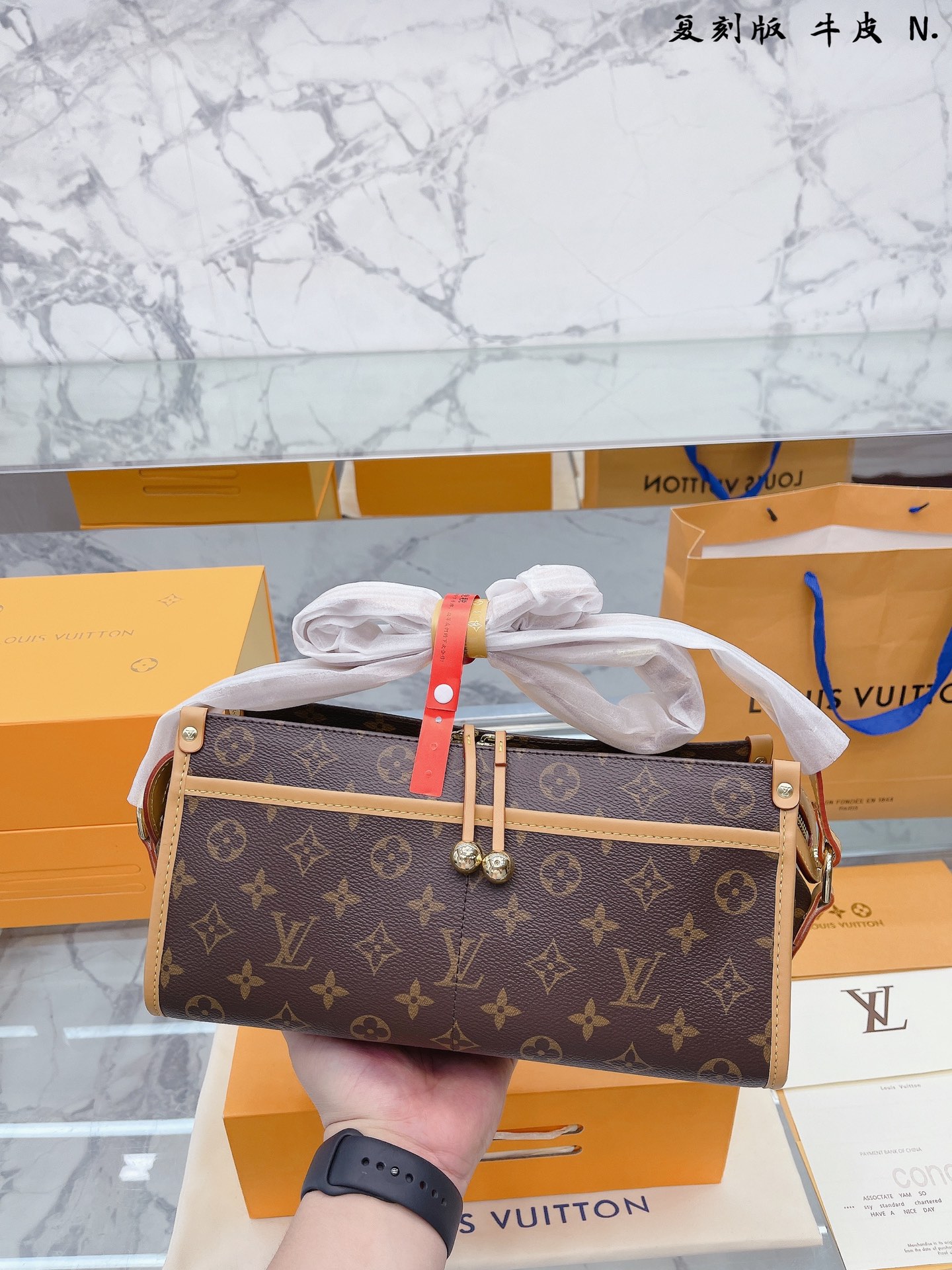 K5 复刻版 牛皮 原版高品质 原单牛皮中古 金球三角包 男女通用的一款 这款Retiro 手袋以标志性的 Louis Vuitton 路易威登 LV 老花面料制成,搭配奢华的黄皮饰边,经典永恒。优雅低调的外形设计和宽敞的包身更加入了实用性。使用说明:- Louis Vuitton 路易威登 LV 变色牛皮饰边,闪亮的纯钢金色五金配件- 可调节肩带,配有树糕皮的肩垫,拉链闭合。- 超细纤维内衬,包包尺寸3016cm