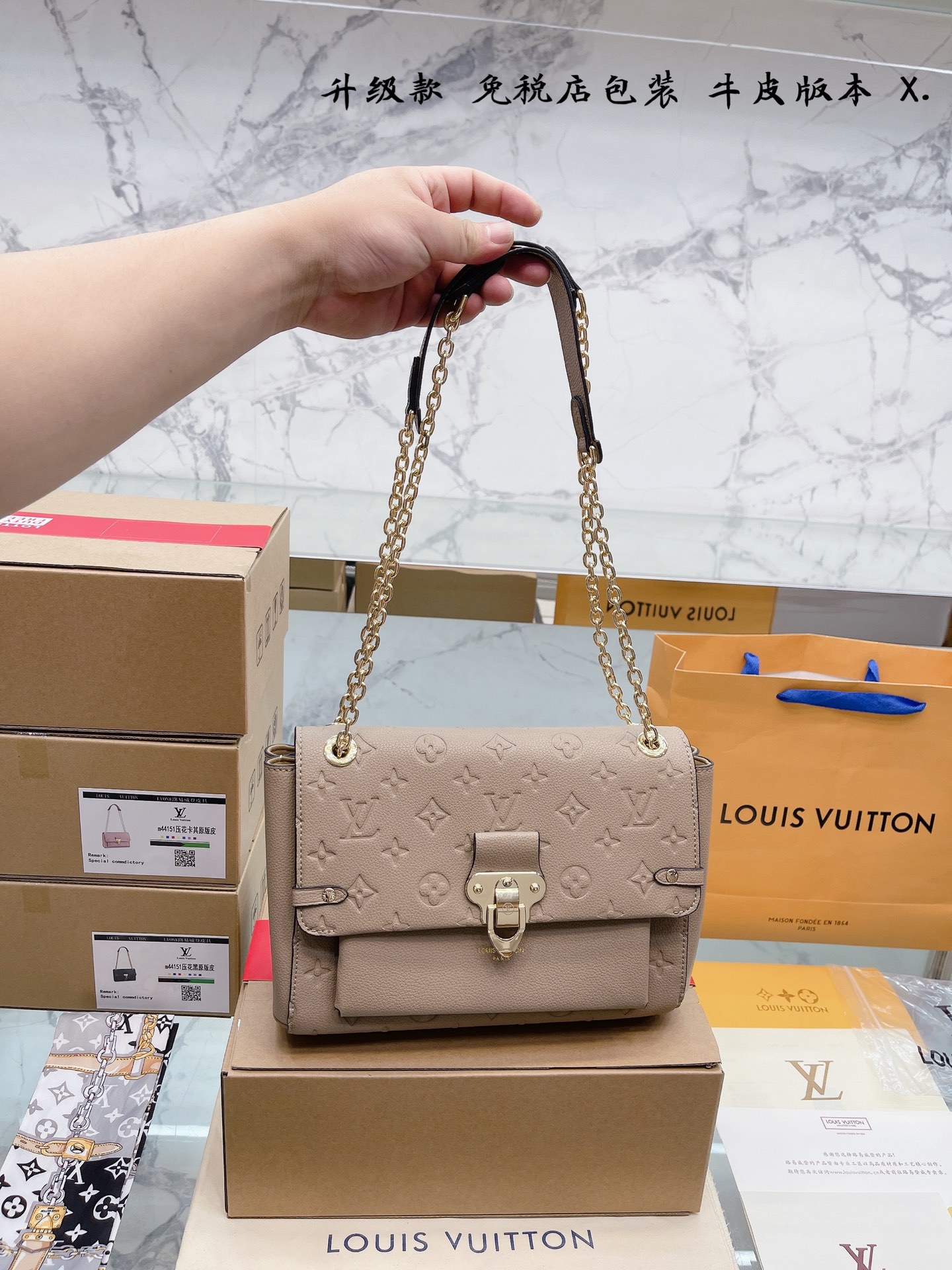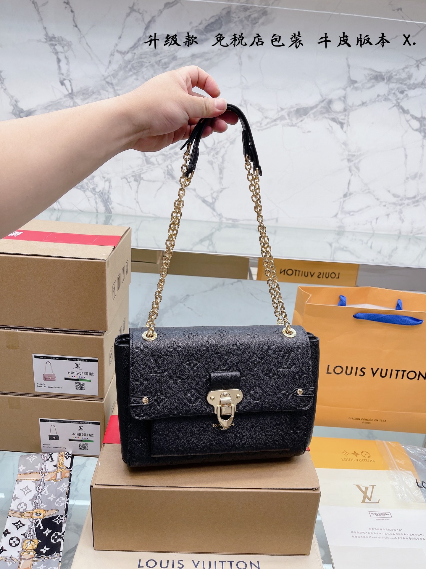 K5 牛皮版本 升级款 免税店包装 Louis Vuitton 路易威登 LV Vavin BB 牛皮链条包 高级浮雕压纹 整包对花 logo吸扣单肩斜挎包.好多网红潮人都在背 单肩斜挎背这款包看着简单,搭配起来特别有范被外观真的迷倒 产品说明: Monogram Em升级款 免税店包装 Louis Vuitton 路易威登 LV Vavin BB 牛皮链条包 高级浮雕压纹 整包对花 logo吸扣单肩斜挎包.好多网红潮人都在背 单肩斜挎背这款包看着简单,搭配起来特别有范被外观真的迷倒 产品说明: Monogram Em软粒面牛皮饰边 超细纤维内衬 滑链肩带 内贴袋 大号尺寸:25 18cm