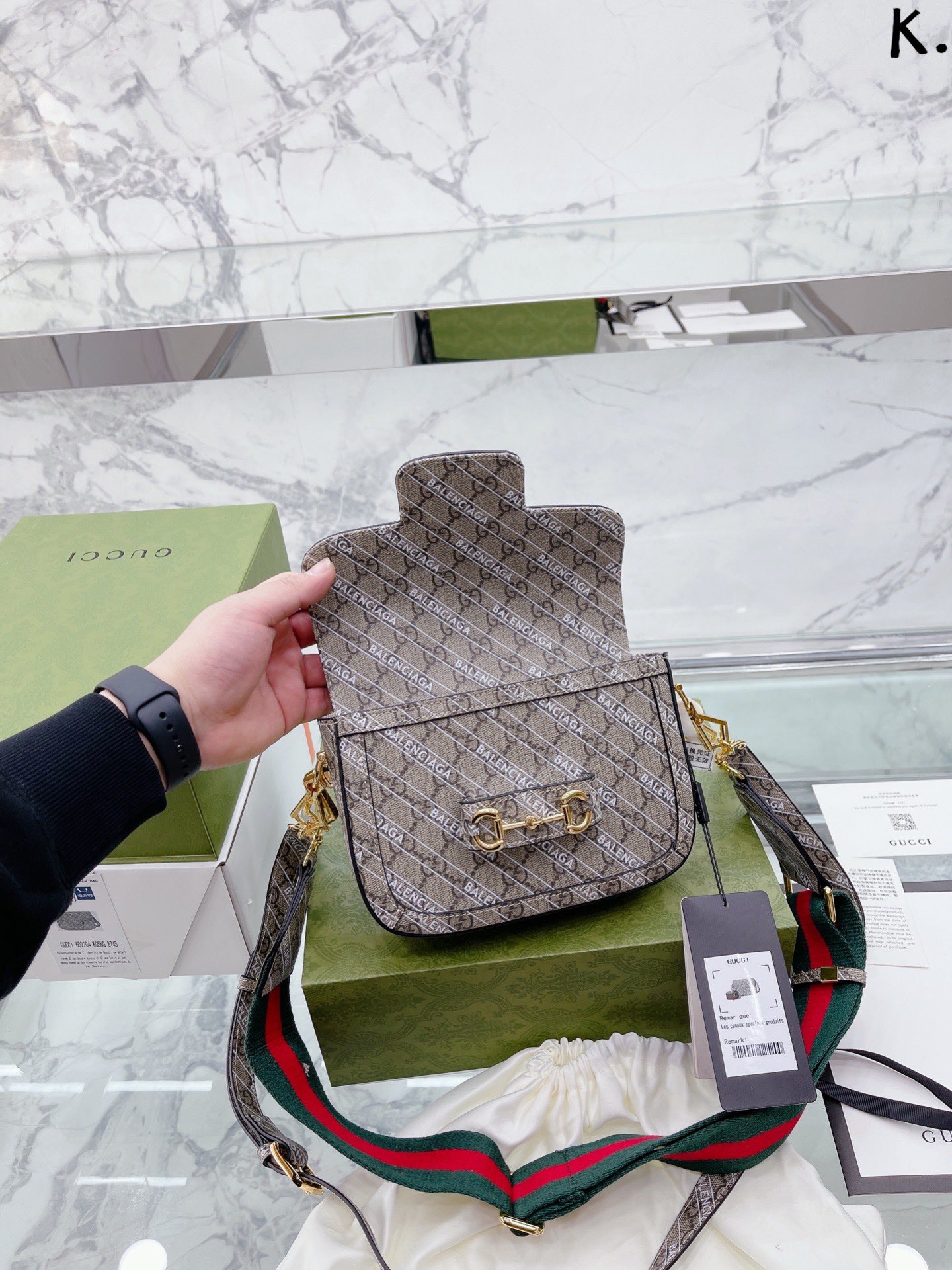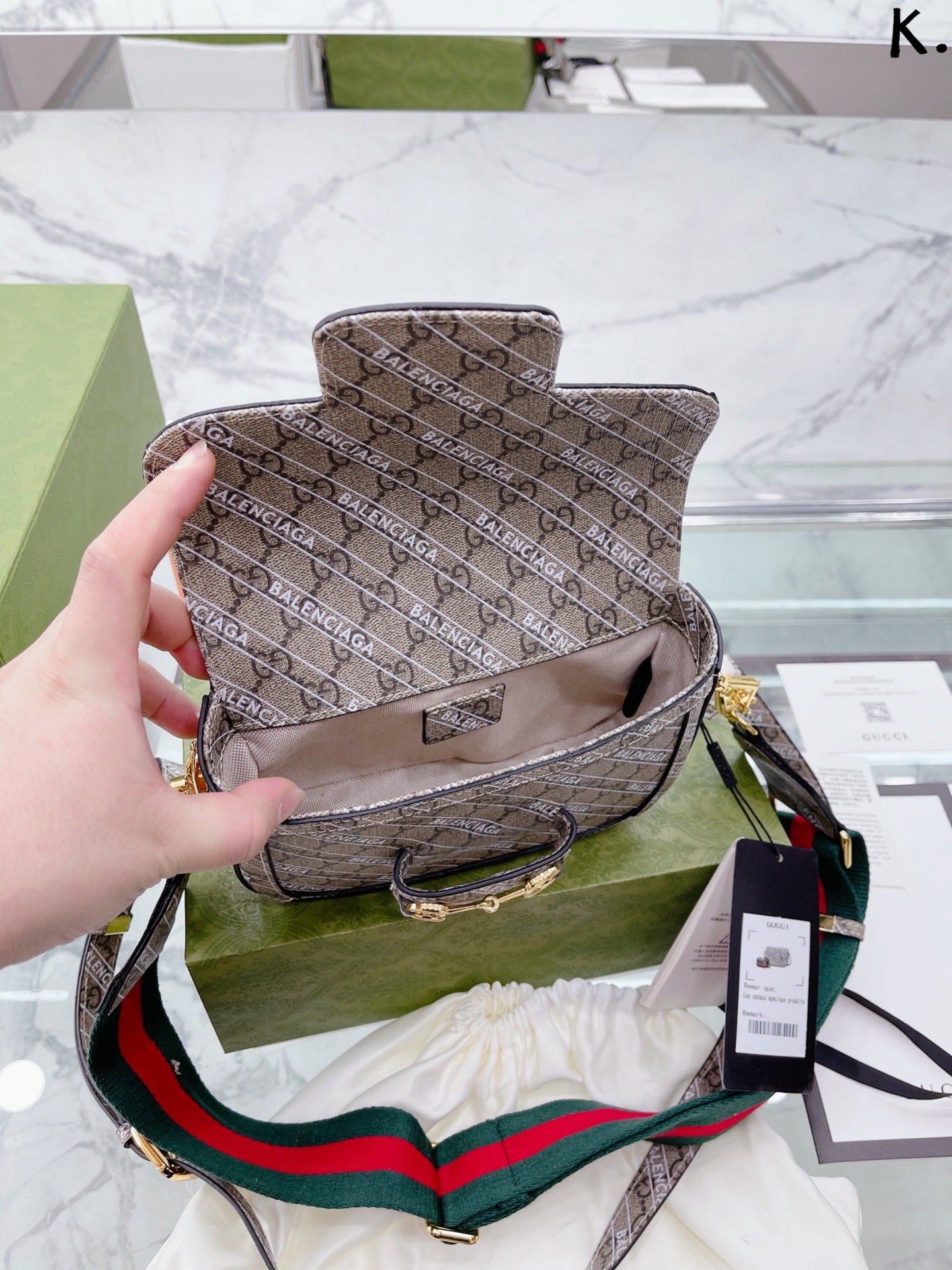 K5 牛皮 肖战同款 GUCCI HACKER Gucc巴黎世家合作款 GUCCI HACKER系列以黑客入侵方式,将古驰经典元素 与巴黎世家经典Logo结合。创造全新的摩登单品!肖 战最爱的1955也在此系列中展现。 尺寸 迷你 21 15cm