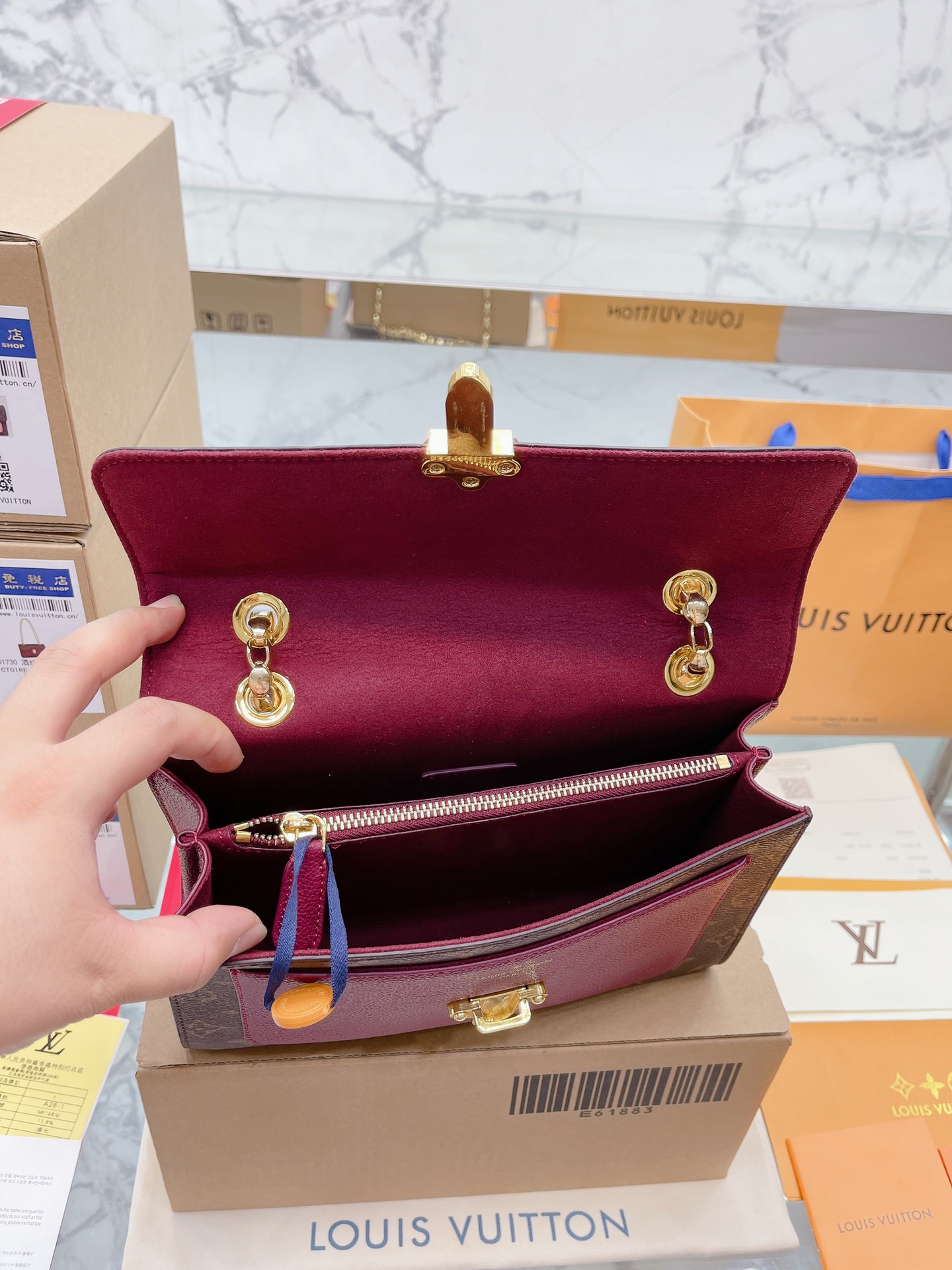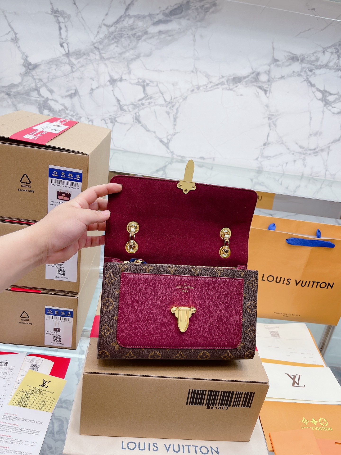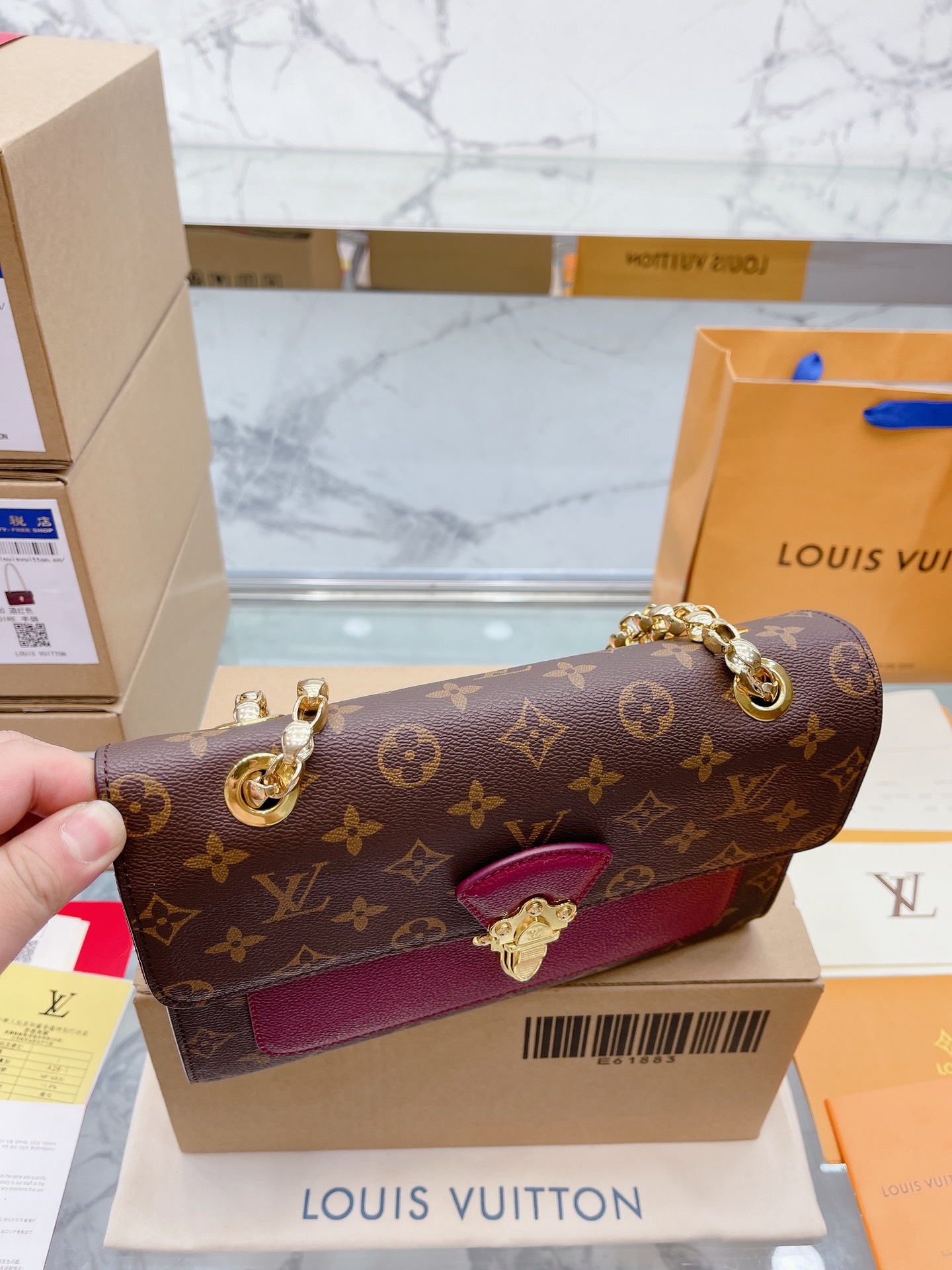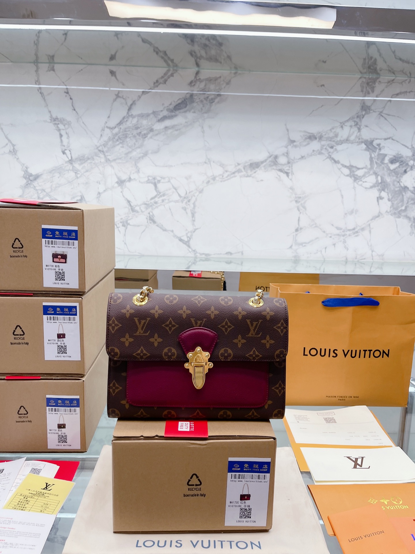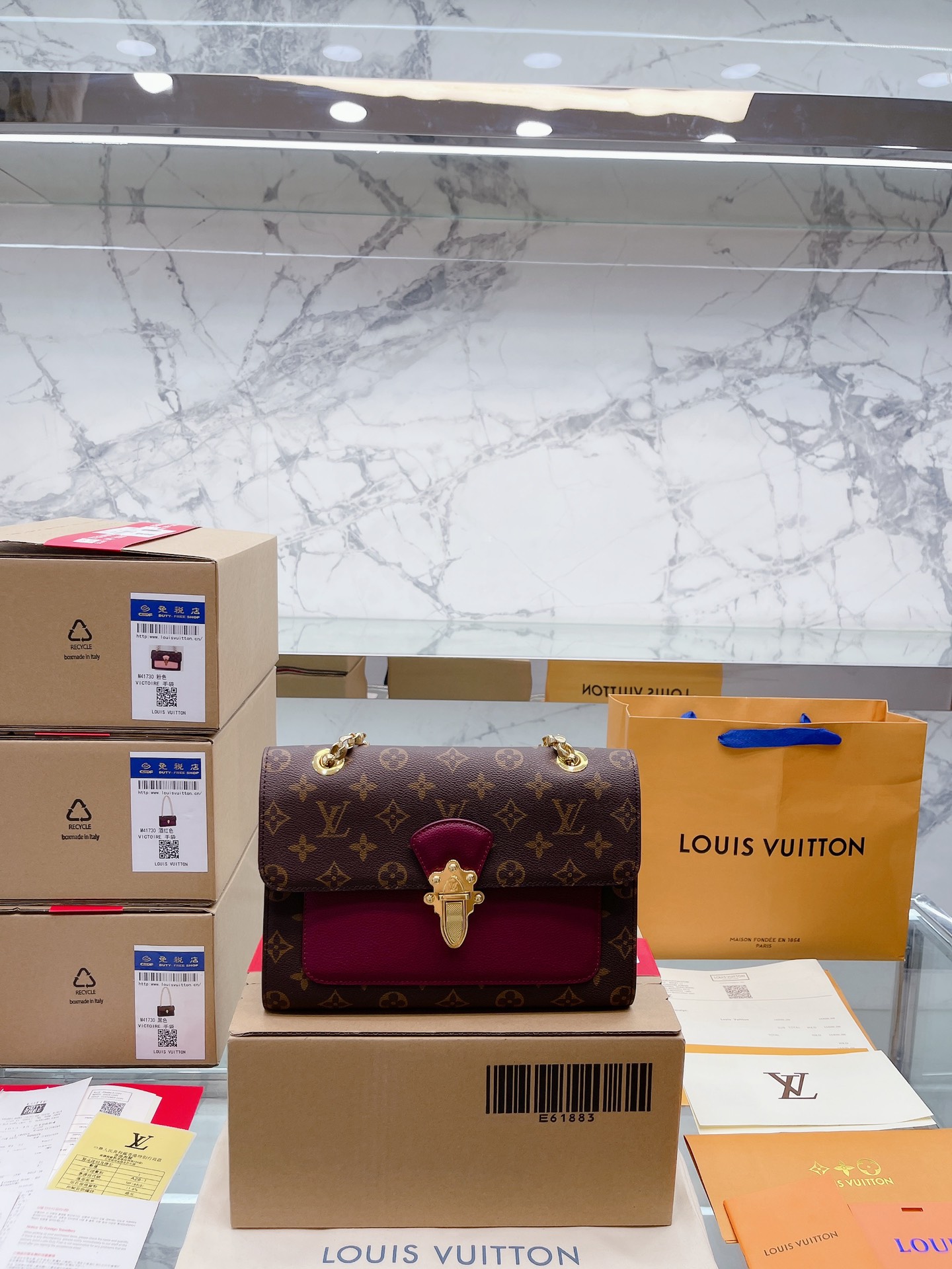 L0 升级款 牛皮 升级款 免税店包装礼盒 “ Louis Vuitton 路易威登 LV victoire 维多利亚 邮差包 ” 免税店包装飞机盒 L家 路易威登老花链条单肩拼色VICTOIRE邮差包 Nono选用柔软的Monogram帆布面料,并搭配缤纷多彩的小牛皮装饰 完美尺寸 27 18cm