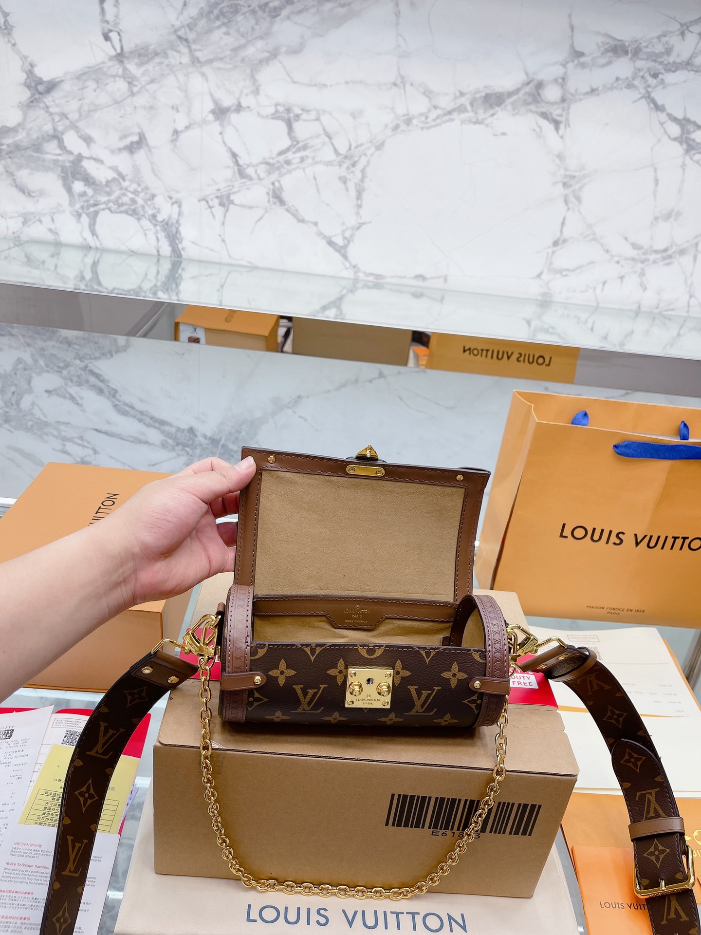L0 原单复刻 升级款 免税店包装礼盒 Louis Vuitton 路易威登 LV 2022巴比龙| Iv Iv Vuitton设计推出,几经复刻,一直都是时尚宠儿! 6和Vintage 款相比,还是有变化的。走线精细,上面还有 钉珠和logo,锁扣代替了拉链, 更时尚了。 搭配了一条老花粗肩带, 是可以调节长度的。还有一条金属链条英昌可以手拎,可以斜背。多种背法,经典老花,复古百搭。男女可背。国包包看起来小巧容量非常大。自重很轻。简直太好看了。 和老款的巴比龙你更喜欢哪一款 尺寸20 10cm
