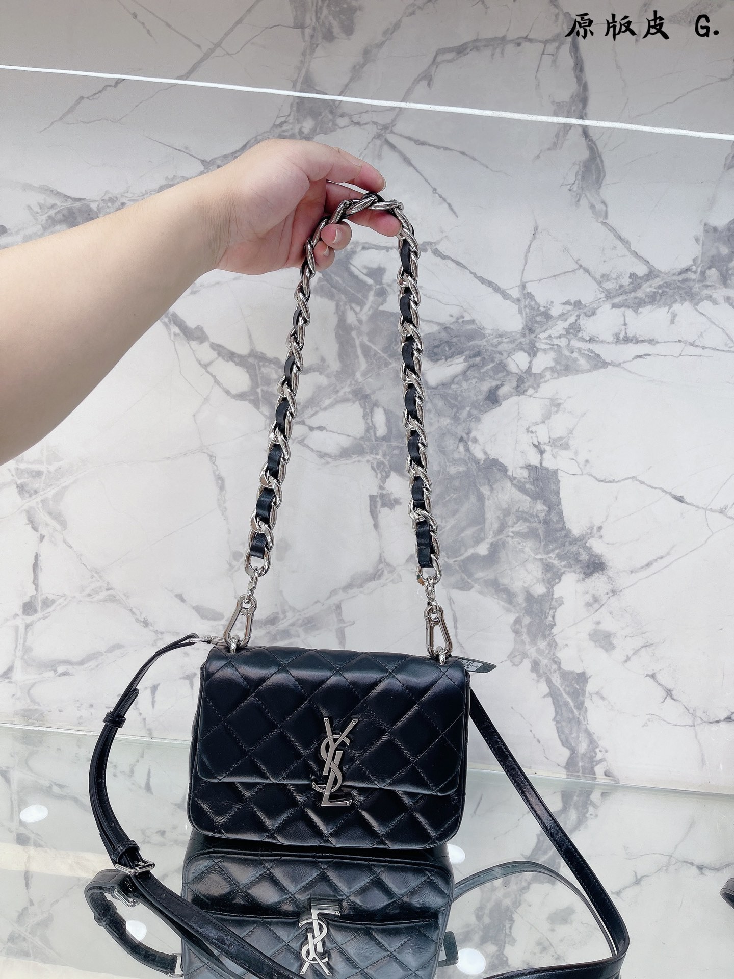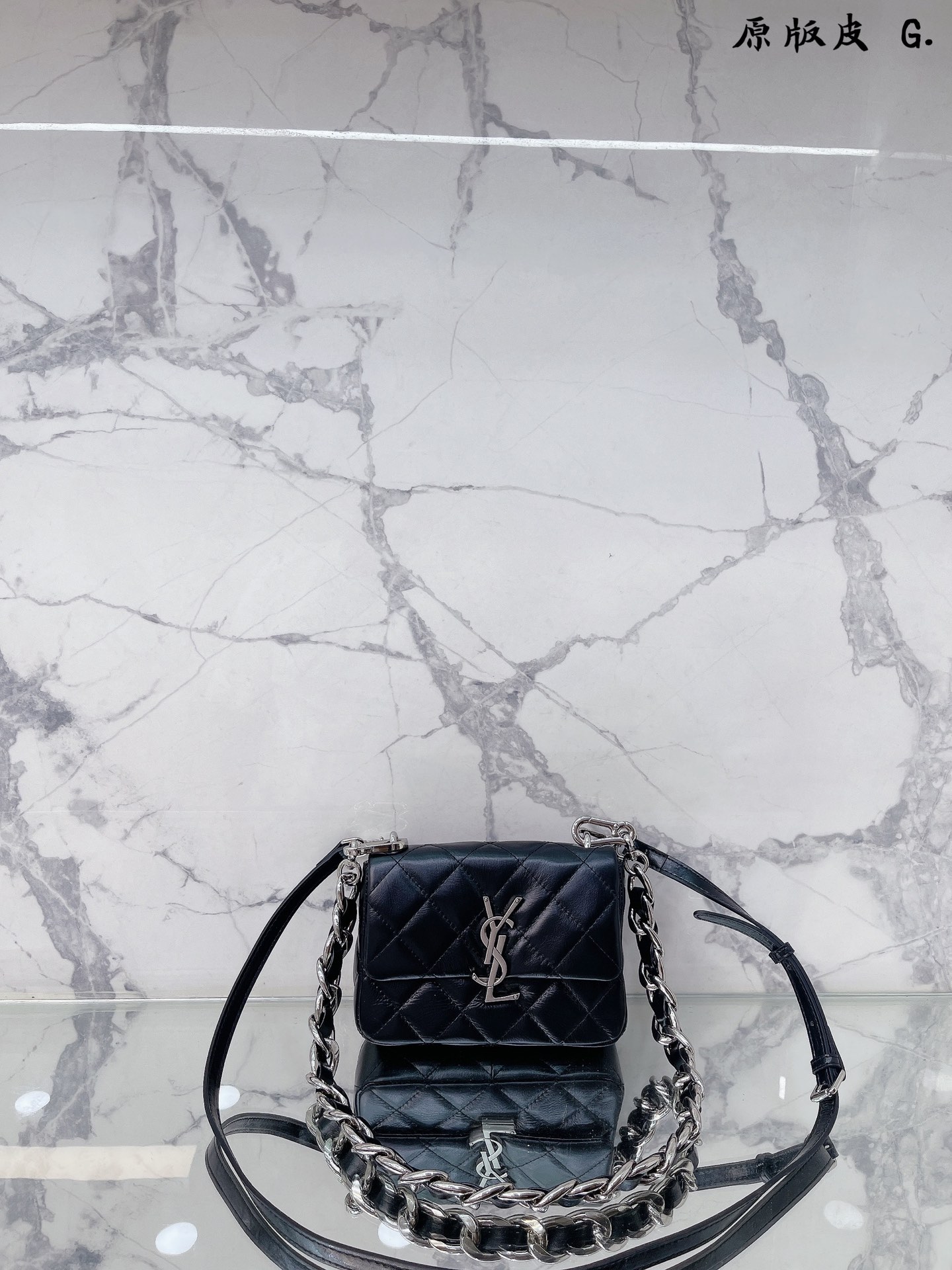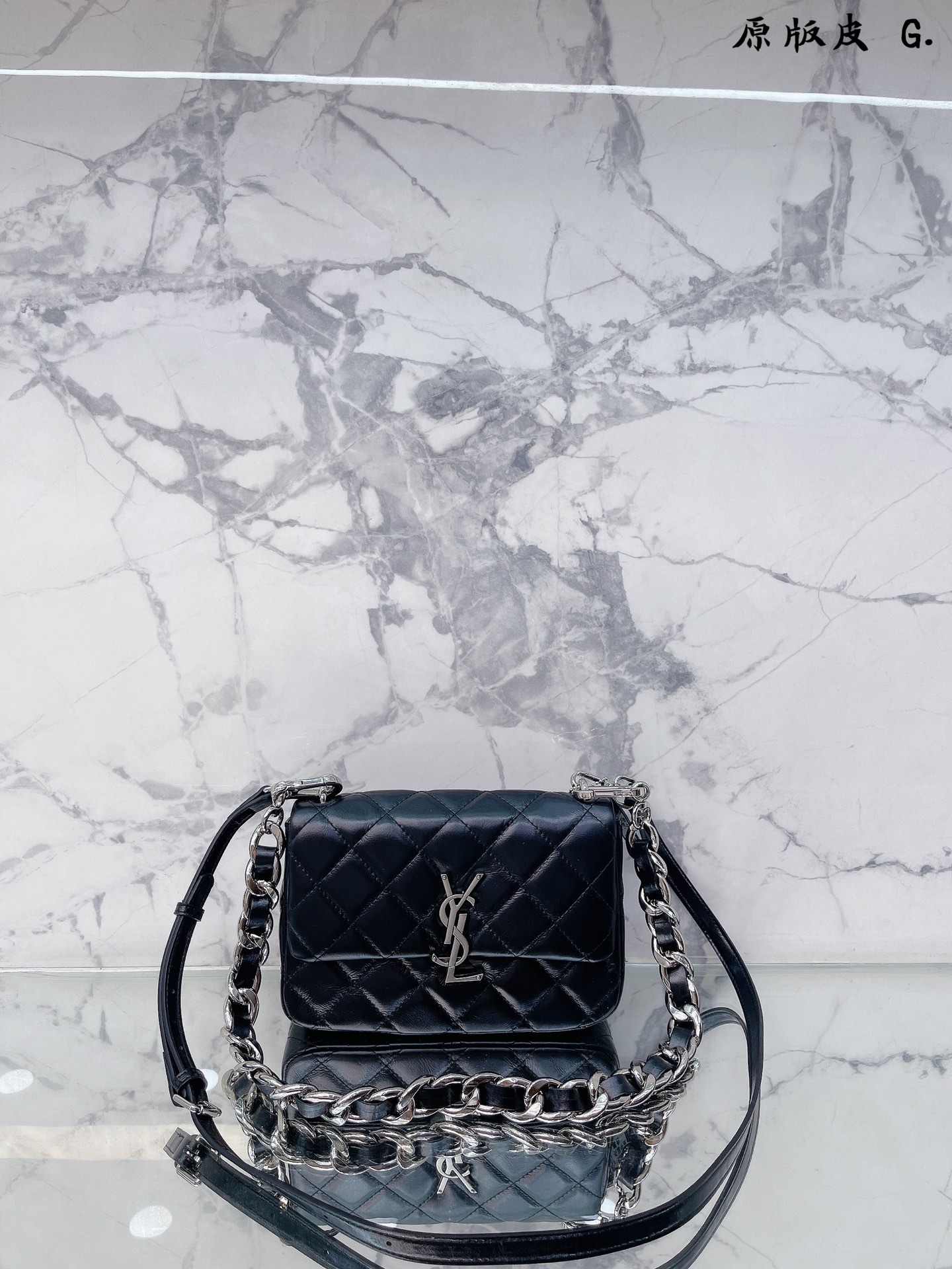 头层皮/320 Saint Laurent 圣罗兰 YSL 粗链条单肩包 这款上身一定是好看的那种 超级精致 容量不错。有点复古时髦感。 尺寸 22 14/14 12cm