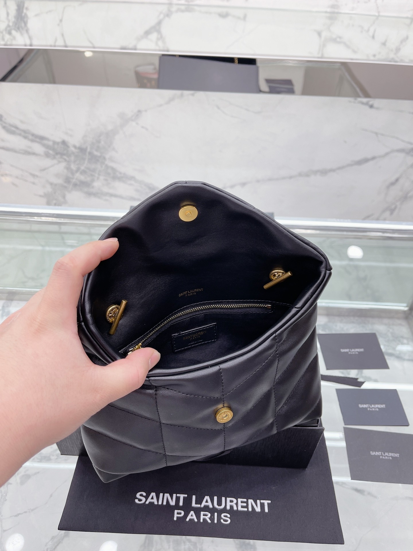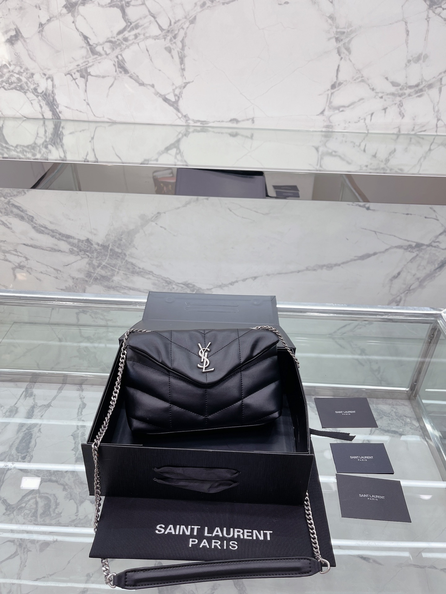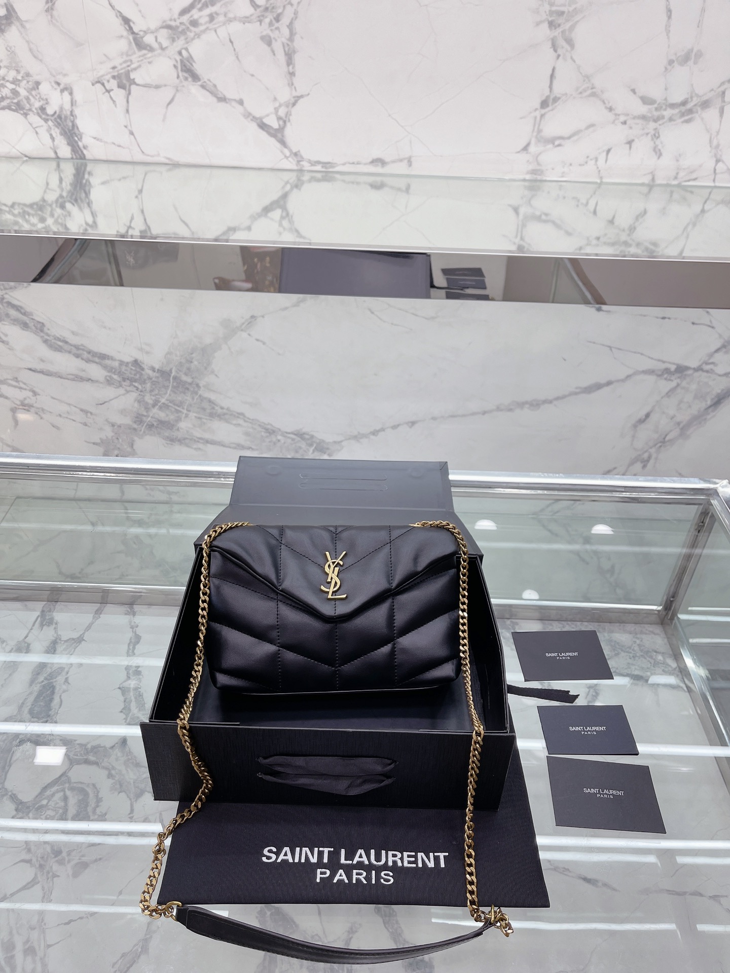 小号 Saint Laurent 圣罗兰 YSL 女士 款 Saint Laurent 圣罗兰 YSL 软糯的云朵包| loulou 包评测这款包我买来我这款金链啦~首先它是小羊皮材质的所以不耐磨大家要小心使用一不小心就会磨破向面但是手感非常非常好都可以当枕头了比香奈儿19软很多摸到真的会惊艳的那种感觉哈哈哈就和棉花糖一样包的本身也很轻完全不用担心会重!后面有上身图可以手拿侧背手提还可以交叉背!打开是信封形的所以容量也非常大可以装下日常出 门要带的所有东西! ! ! black18cm