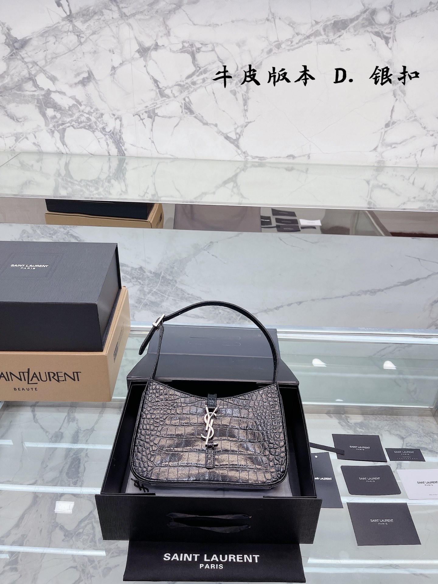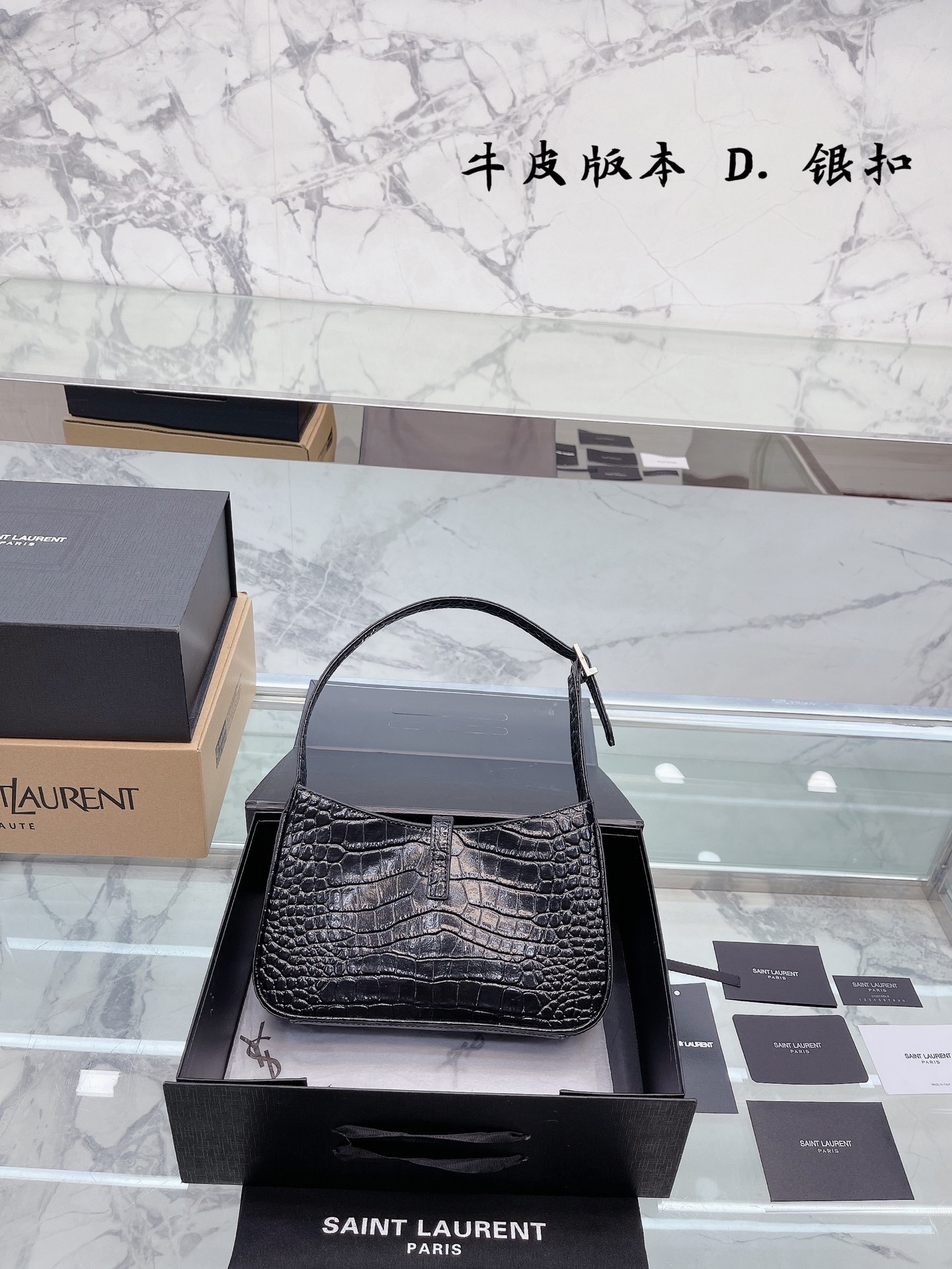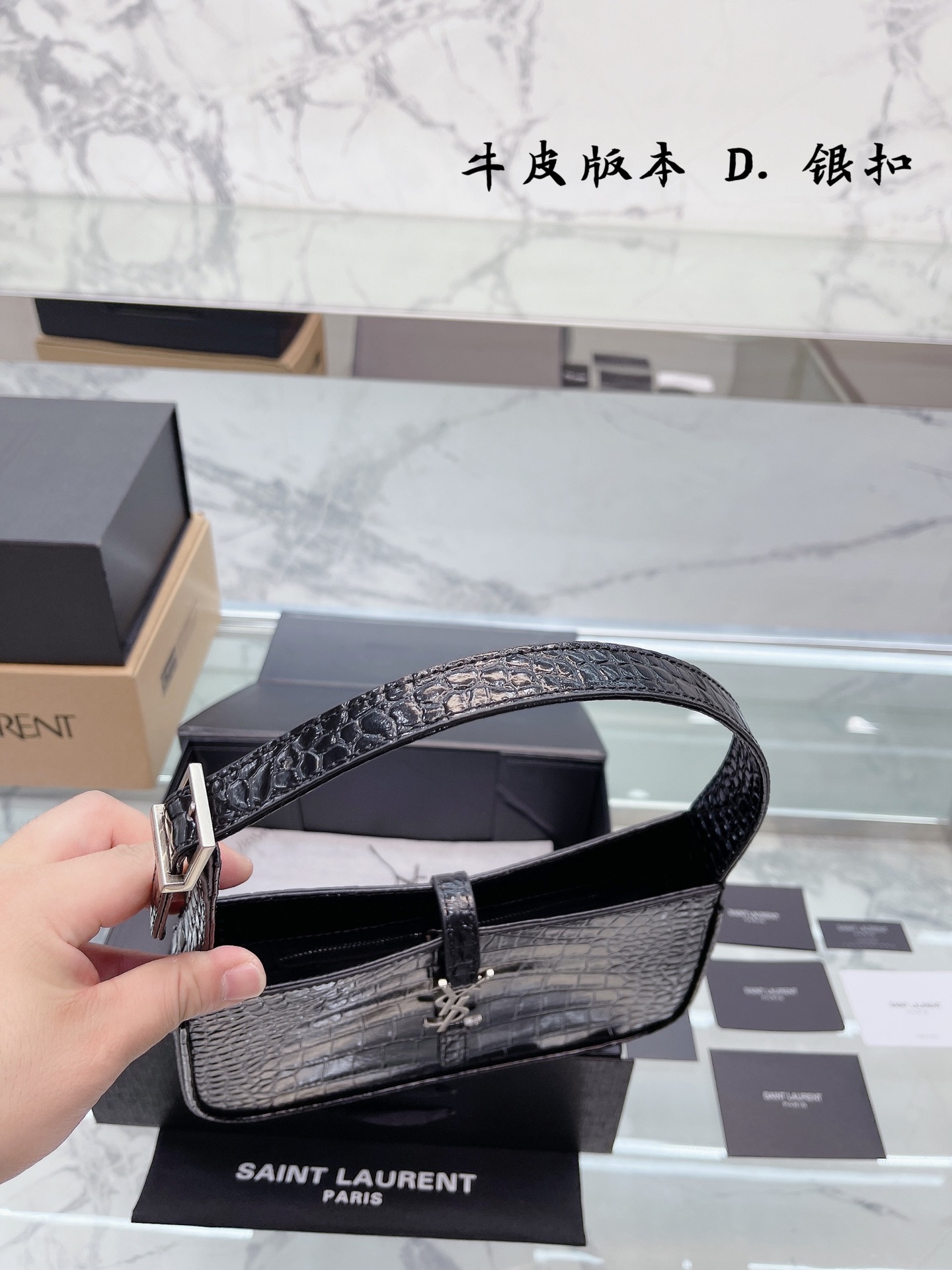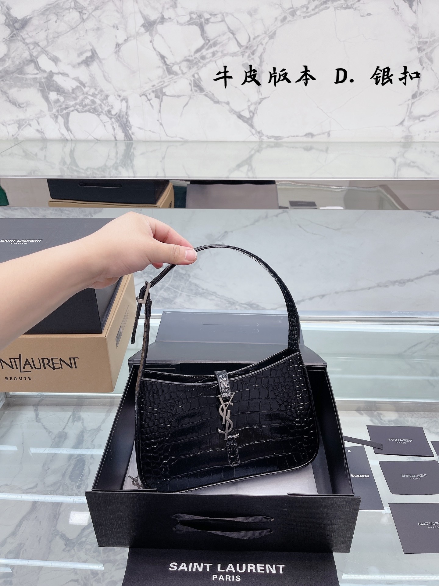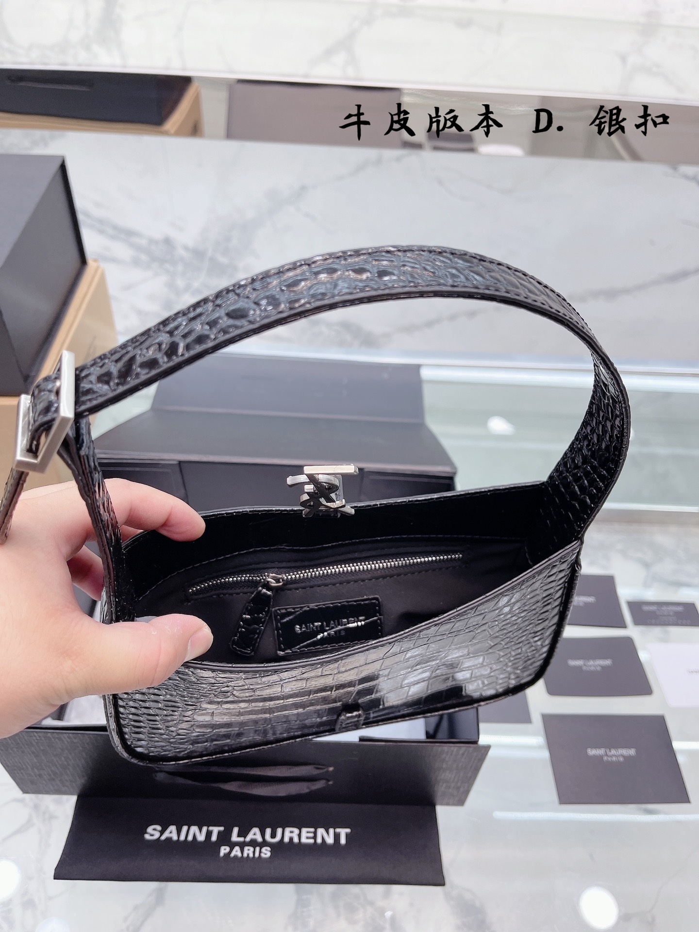 小牛皮 银标 鳄鱼纹 Saint Laurent 圣罗兰 YSL 圣罗兰牛皮专柜品质、小牛皮打造 腋下背单肩背 上身效果非常好 百搭款 尺寸24 15cm 折叠礼盒包装