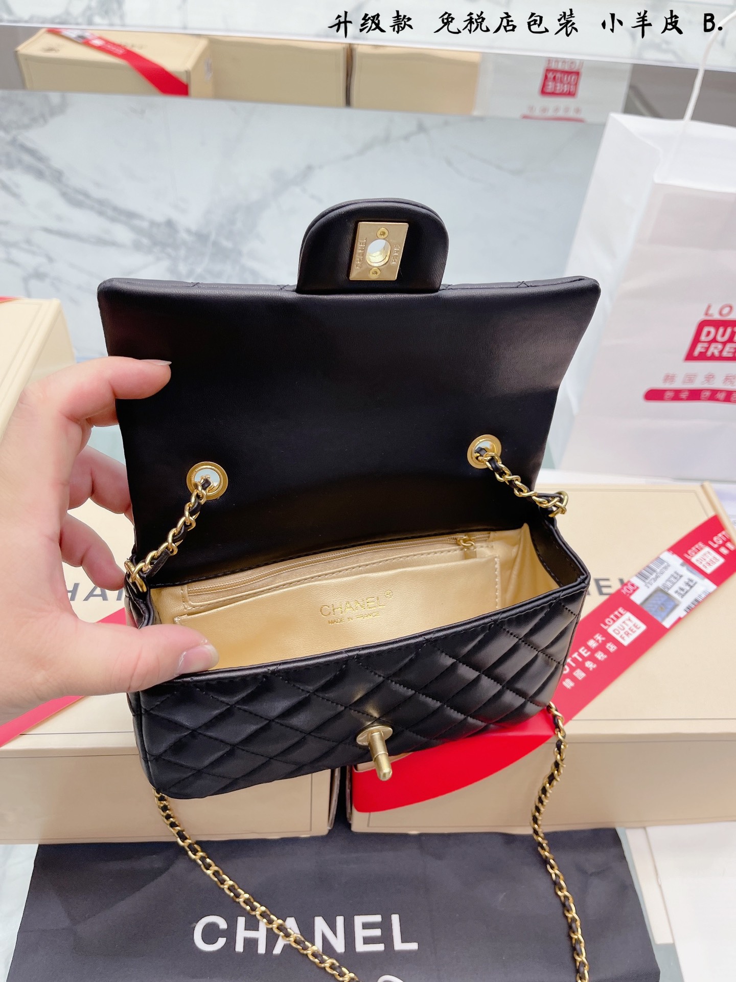 小羊皮 升级款 免税店包装 小羊皮香奶奶 金球方胖子 “New Arrival” 最美金球方胖子人间香奈儿 白富美小姐姐必备款 单独夸最让人挪不开眼 就是小金球了太高级~ 今年的小香包链条可以调节 这一点太人性化了不管是高个子还是小个子圈都可以驾驭 Chanel小金球 20/18cm